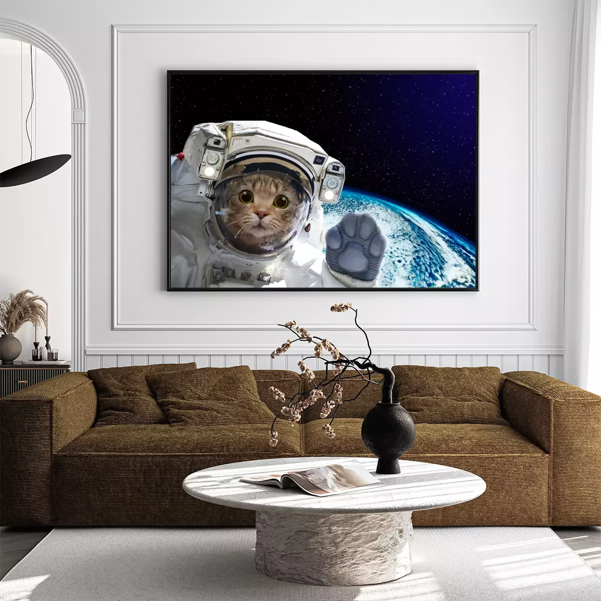 Poster Kat astronaut in de ruimte op de achtergrond van de wereldbol. Elementen van deze afbeelding ingericht door NASA.