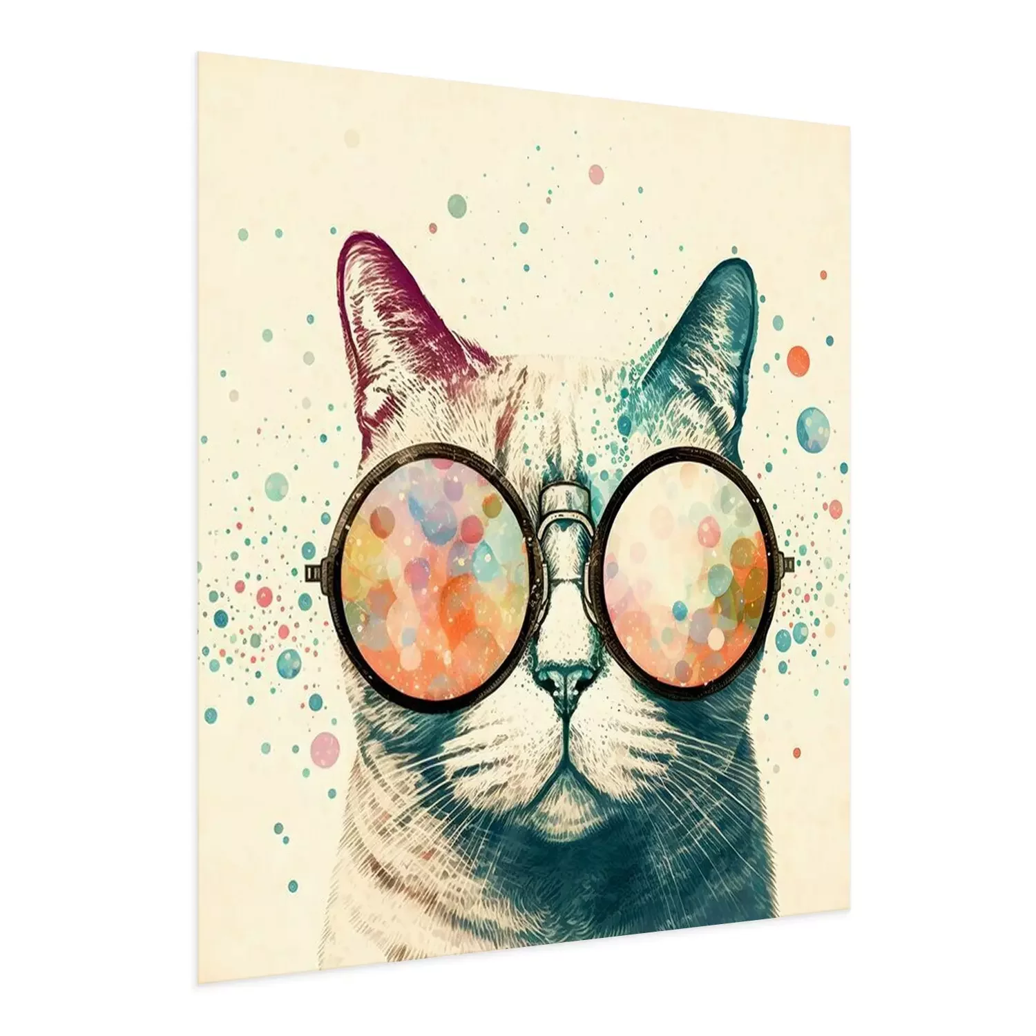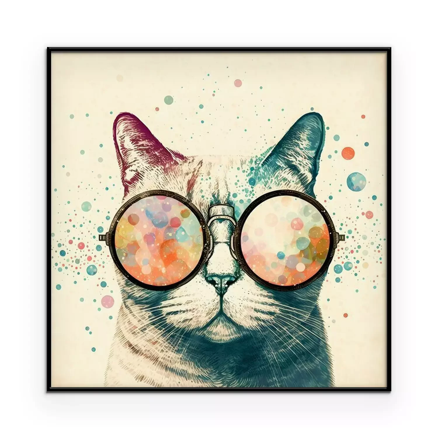 Wij presenteren jou een unieke poster met een kat! Als je dol bent op spinnende vriendjes, dan zou zo'n muurdecoratie perfect passen bij jouw inrichting. Voor velen van ons zijn dieren volwaardige gezinsleden, daarom vinden wij het belangrijk om hun aanwezigheid te benadrukken in het interieur. Op deze manier wordt de katten poster niet alleen een versiering voor de woonkamer of slaapkamer, maar ook een manier om te laten zien dat deze pluizige metgezellen belangrijk voor ons zijn. Dit maakt het ontwerp niet slechts een tijdelijke versiering - het zal niet uit de mode raken of vervelen - maar het zal zich gedurende vele jaren integreren in de inrichting, de ogen van alle bewoners verheugend. Een kenmerk van onze katten poster is ook dat deze past bij veel verschillende stijlen, omdat het verschillende esthetieken combineert. Aan de ene kant is het een realistisch portret, aan de andere kant draagt de kat een "John Lennon" bril op zijn neus, wat de poster met een kat grappig maakt. Het geheel is gehouden in een ingetogen kleurenpalet, maar tegelijkertijd is het ontwerp verlevendigd met kleurrijke stippen, als confetti die uit de hemel valt, waardoor het een opvallende poster over katten is. Zo'n portret van een kat kan bijvoorbeeld een plek vinden in een moderne woonkamer, waar het minimalisme doorbreekt en het ingetogen karakter van het interieur aanvult, maar het past ook goed in een retro-inrichting geïnspireerd door de jaren '70 van de vorige eeuw. Voor liefhebbers van expressieve stijlen raden we aan om zo'n katten poster in de slaapkamer te hangen, omdat het boven het hoofdeinde van het bed een nieuwe dimensie aan de inrichting geeft. Het past goed bij de boho- en kawaii-stijlen, die gebaseerd zijn op pastelkleuren en meubels met zachte, ronde vormen. Een ideale plek voor een katten poster is ook een jeugdige inrichting. De "Lenonki" bril die de kat draagt, verwijst naar de beroemde zanger van The Beatles, dus het is een perfect idee om liefde voor dieren en muziek te combineren! Voor het visuele effect is het aan te raden om te denken aan een zwarte lijst waarin de katten poster kan worden ingelijst. De kat op dit grappige portret is ook een uitstekende keuze voor de kinderkamer. Alle kleintjes houden van dieren, dus als het kind droomt van een huisdier, maar nog te klein is voor de zorg ervoor, zijn kattenposters voor aan de muur een goede alternatieve oplossing. Katten worden dan speelkameraadjes voor het kind, waardoor de inrichting een knus en aantrekkelijk karakter krijgt. En omdat het, zoals eerder benadrukt, geen kinderachtig ontwerp is, zal het de kleintjes vele jaren dienen, omdat ze er niet snel uit zullen groeien.