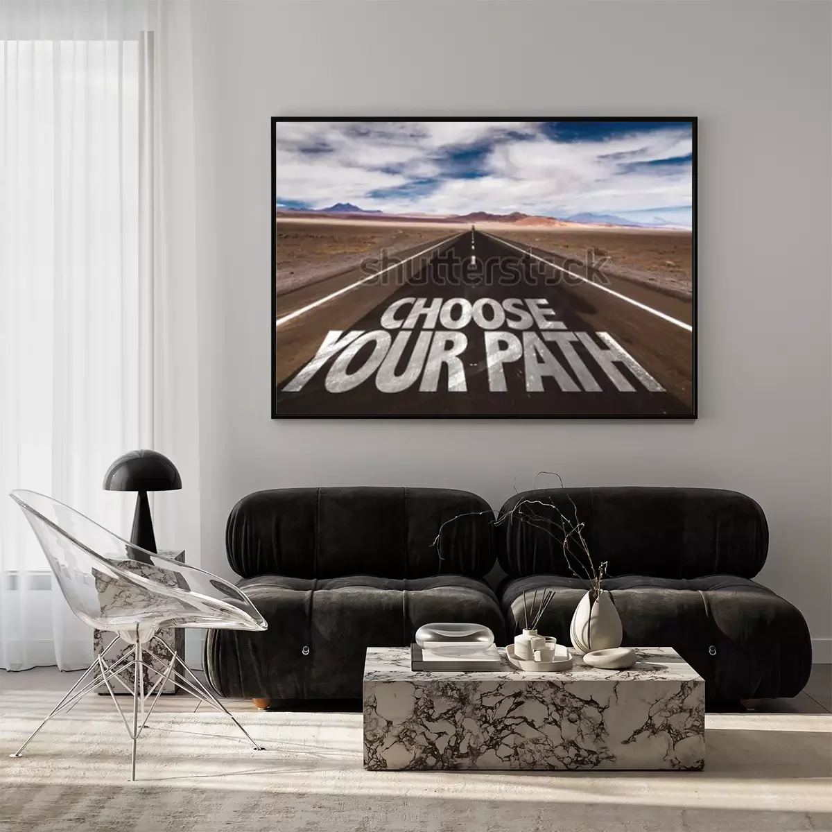 Poster: Kies je pad geschreven op woestijnweg