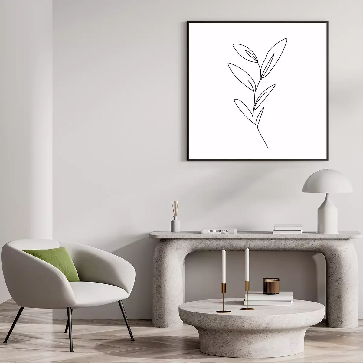 Poster: Kleine minimalistische illustratie van een plant in zwart-wit