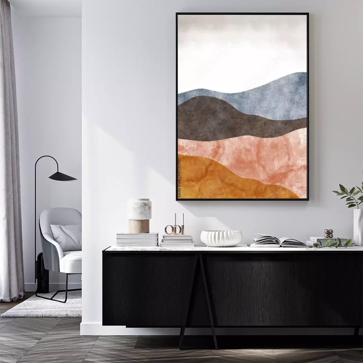 Abstract mountain landscape, Minimalist design. Abstract water color. vector background illustration.