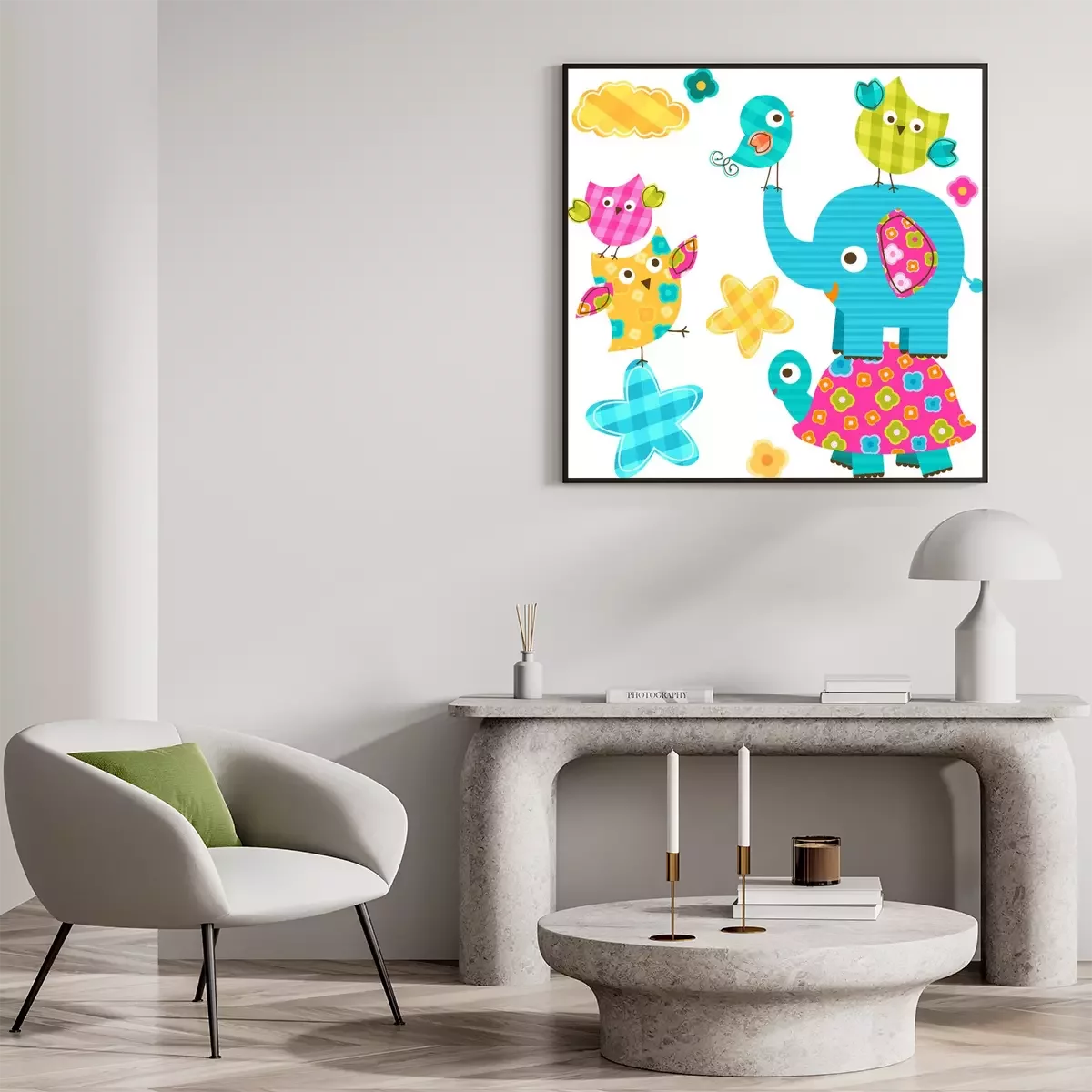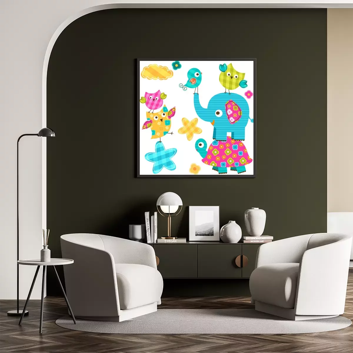 Poster: Kleurrijke dieren terwijl je samen plezier hebt