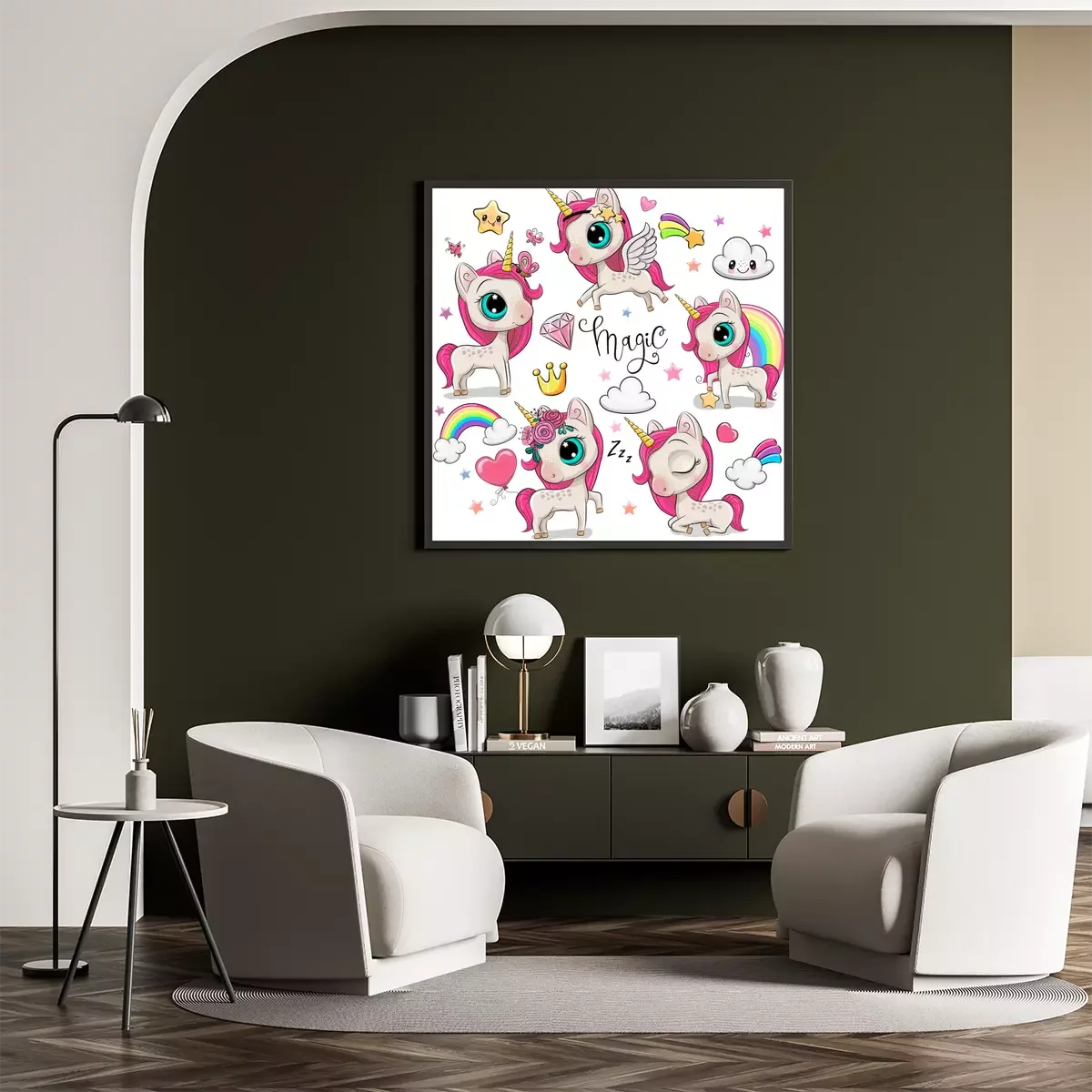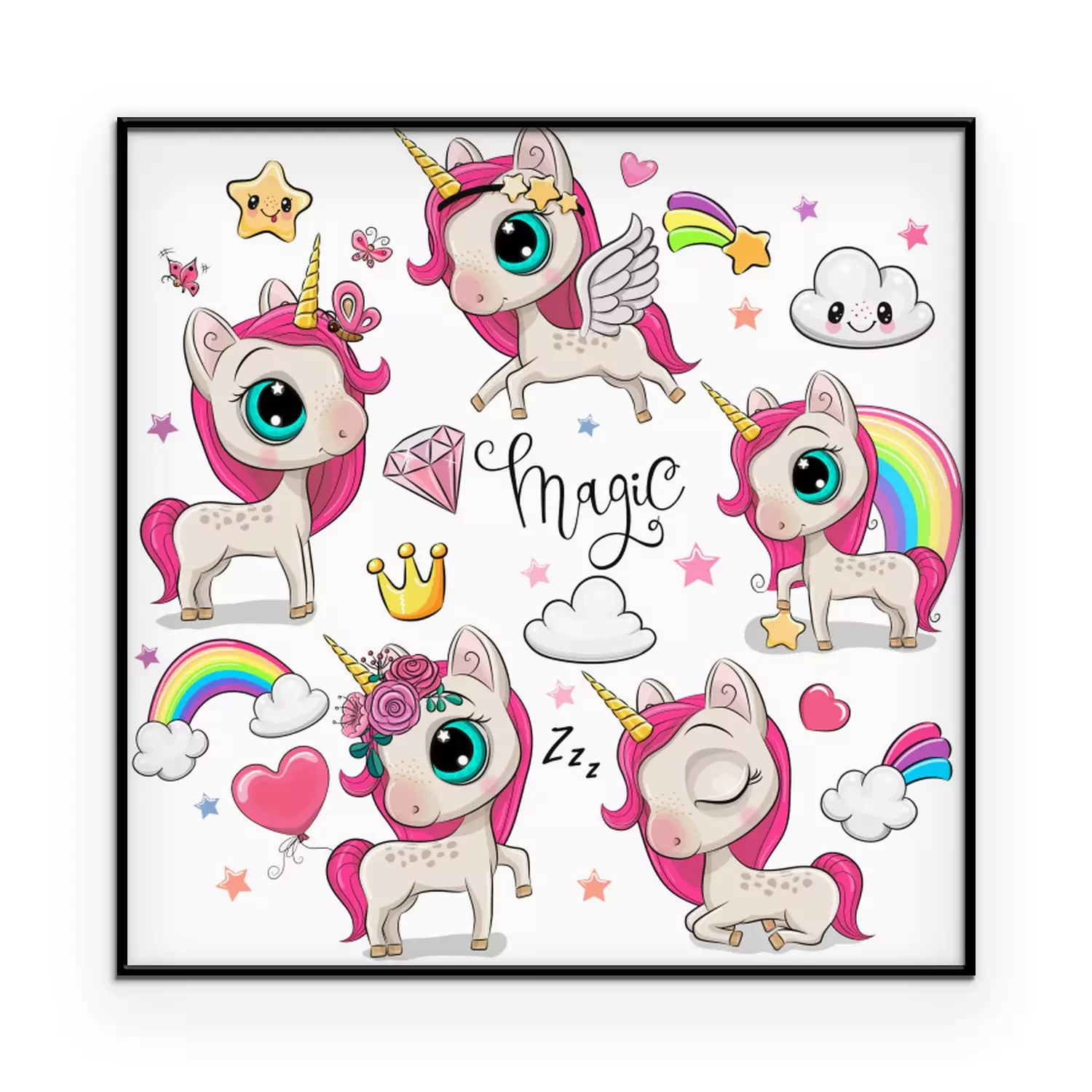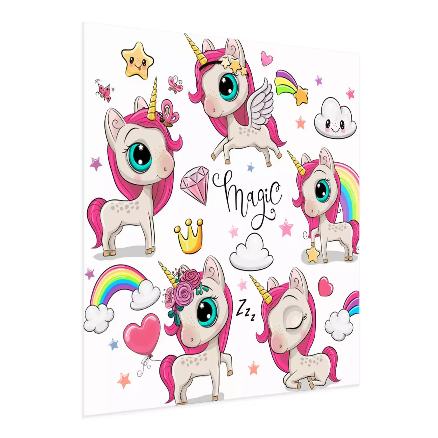 Poster: Kleurrijke eenhoorns en een lachende wolk