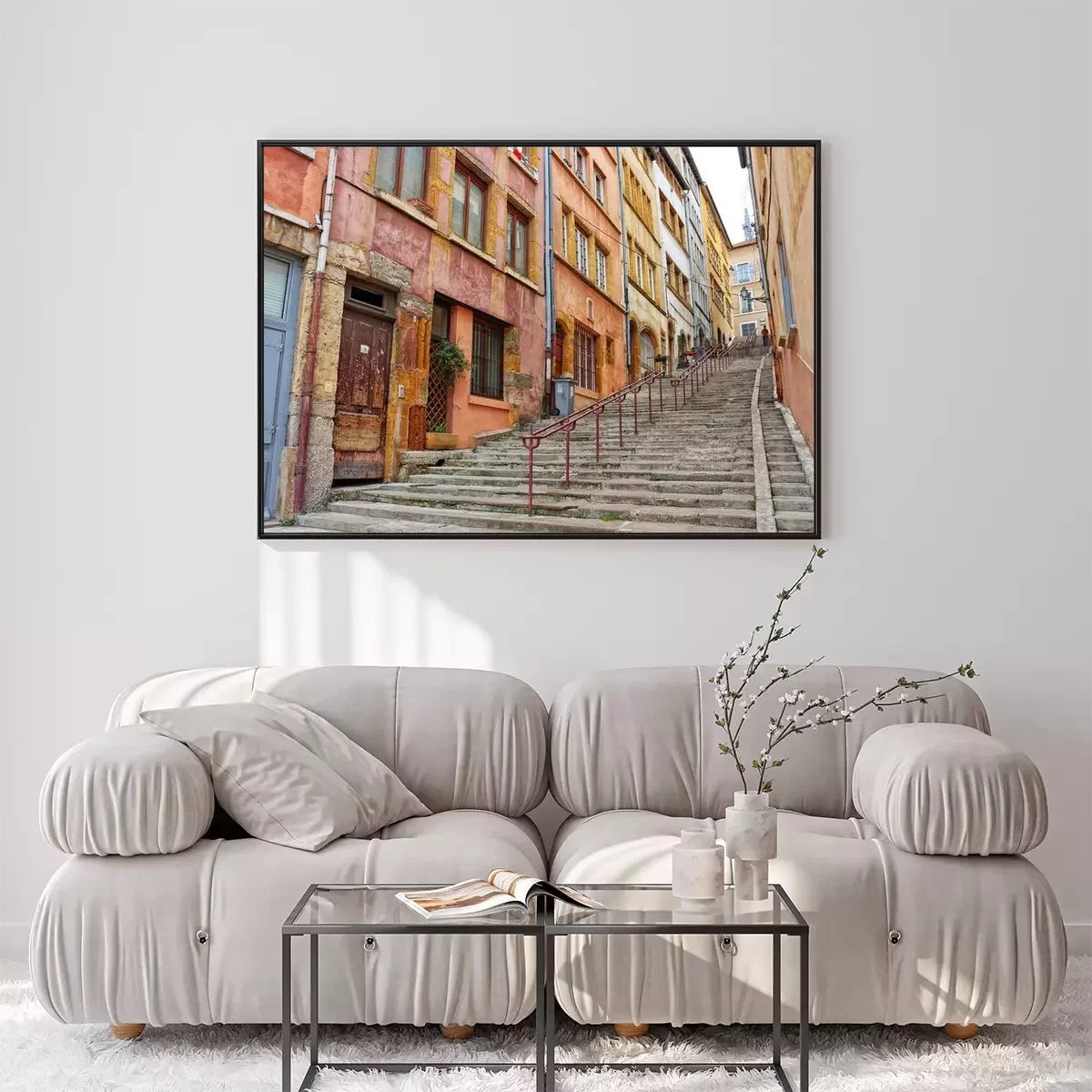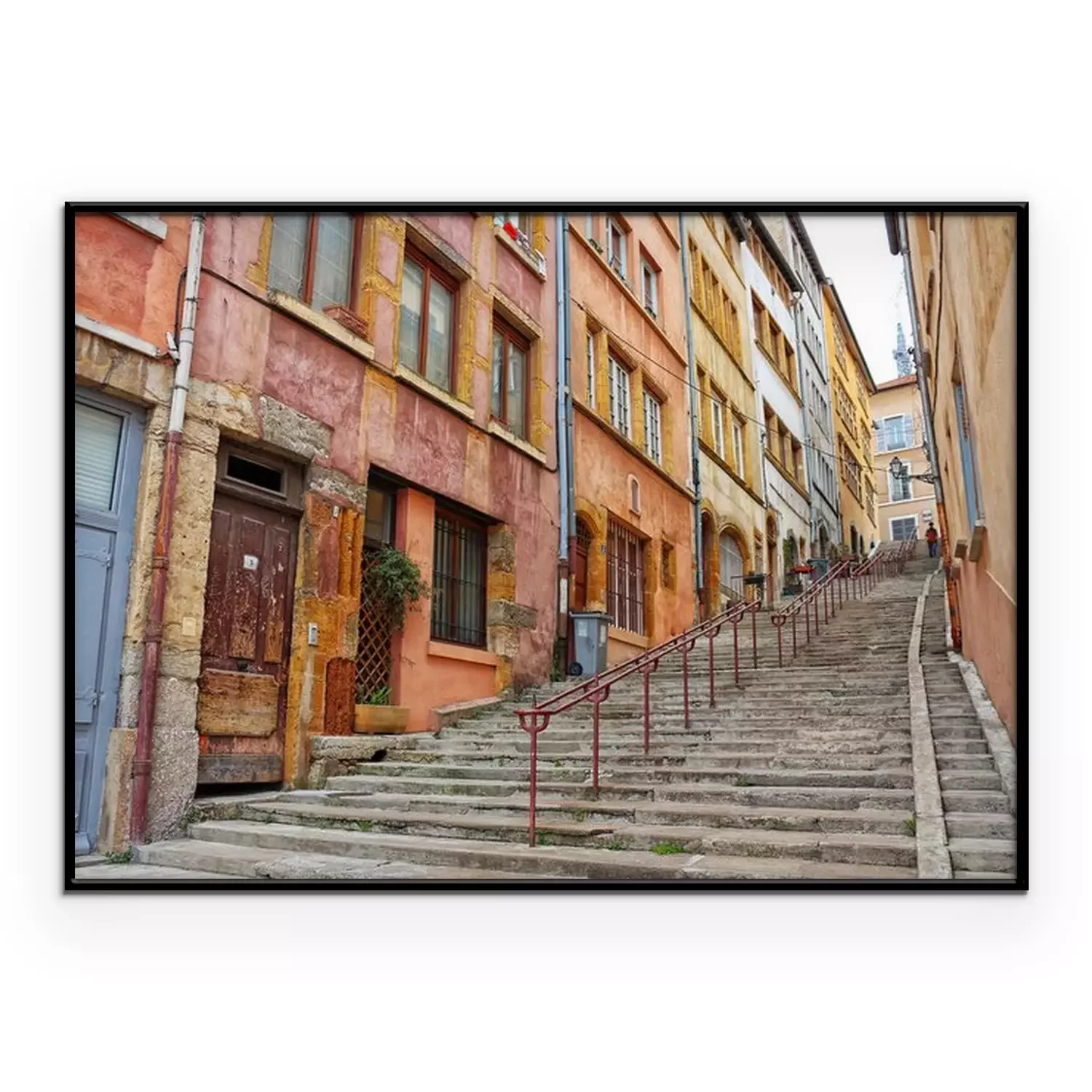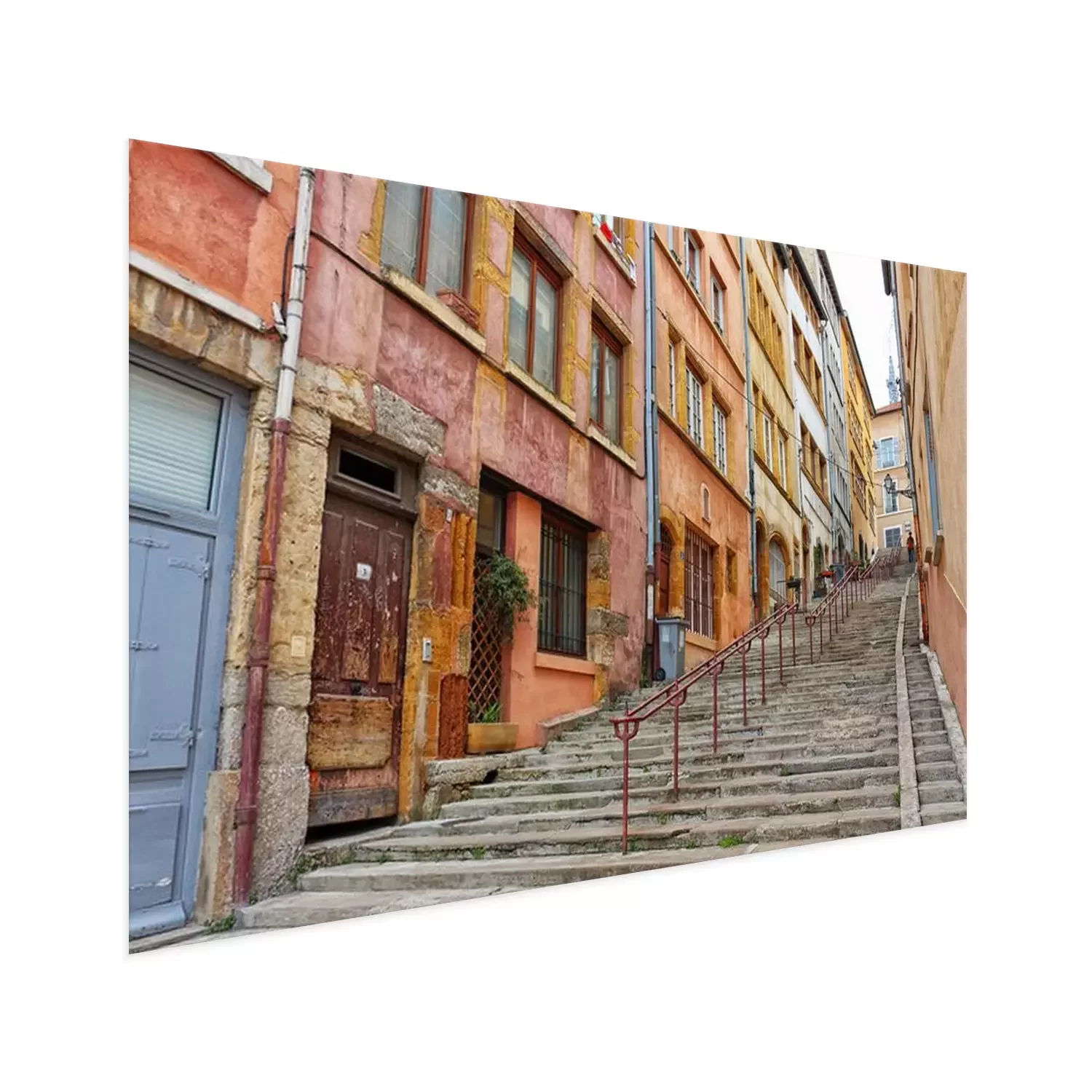 Poster: Kleurrijke gebouwen en trappen in Lyon
