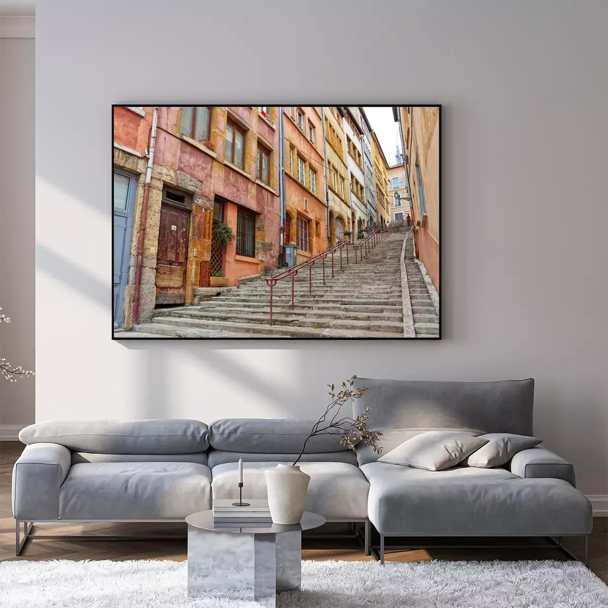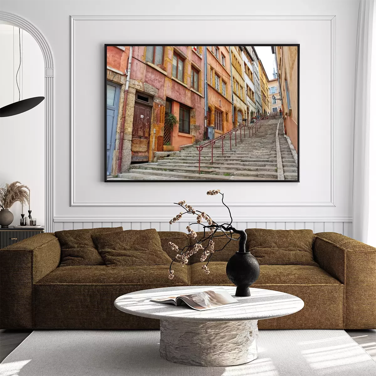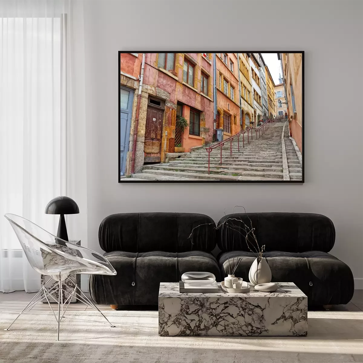Poster: Kleurrijke gebouwen en trappen in Lyon