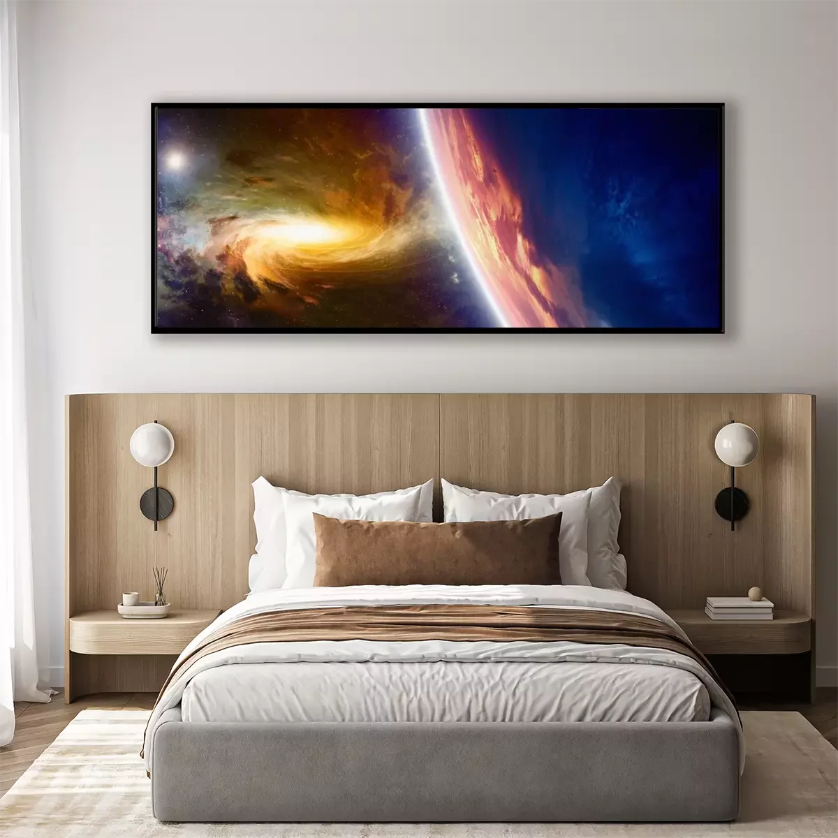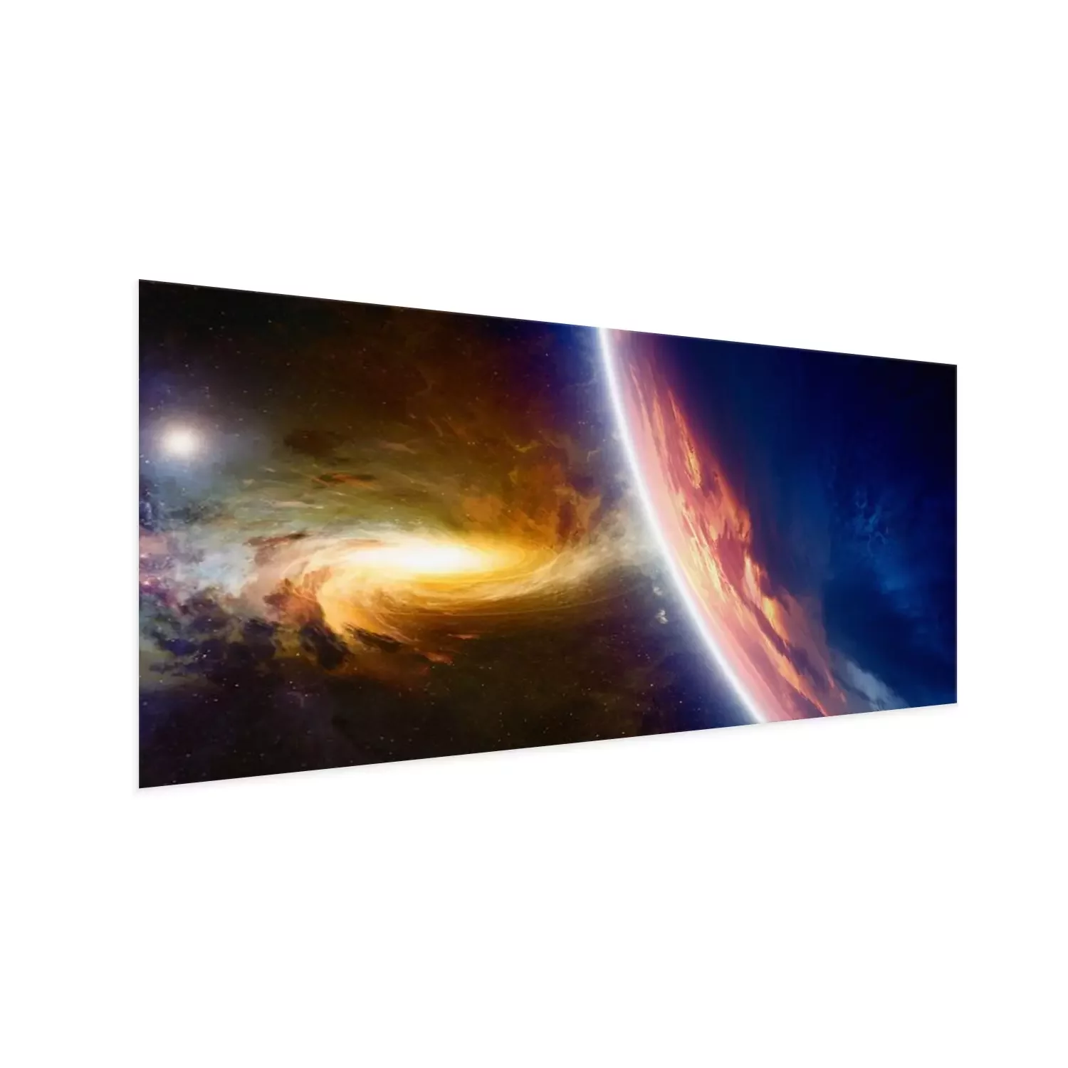 Poster: Kleurrijke kosmos met kleurrijke melkweg en planeet