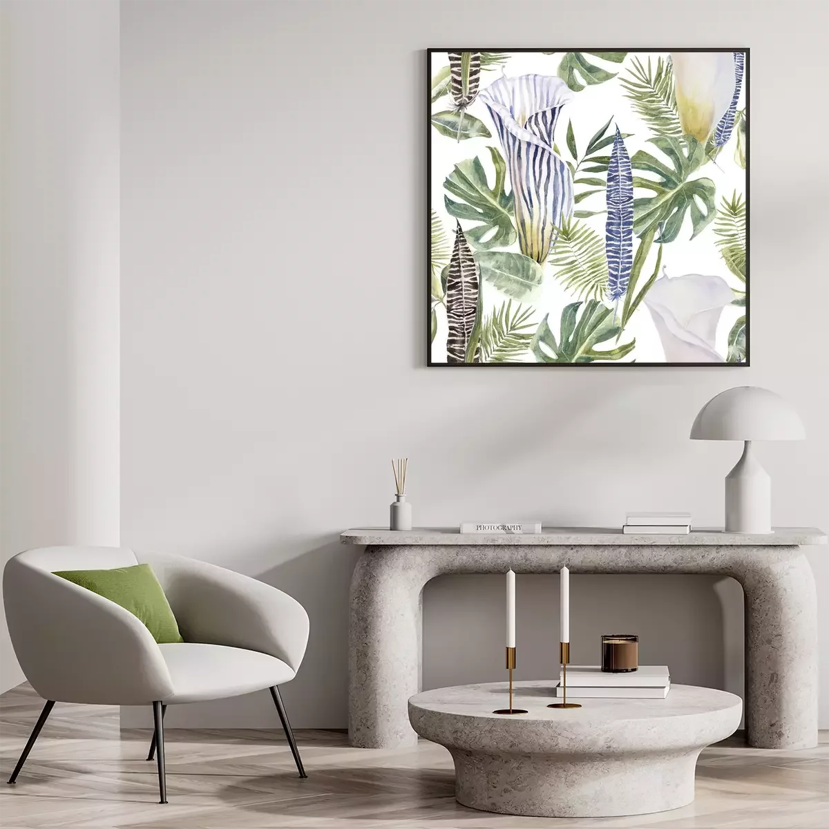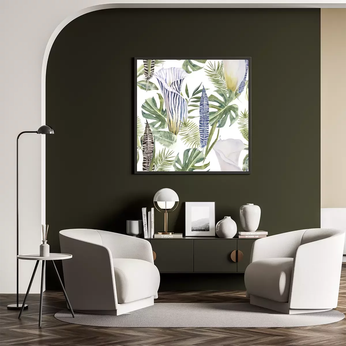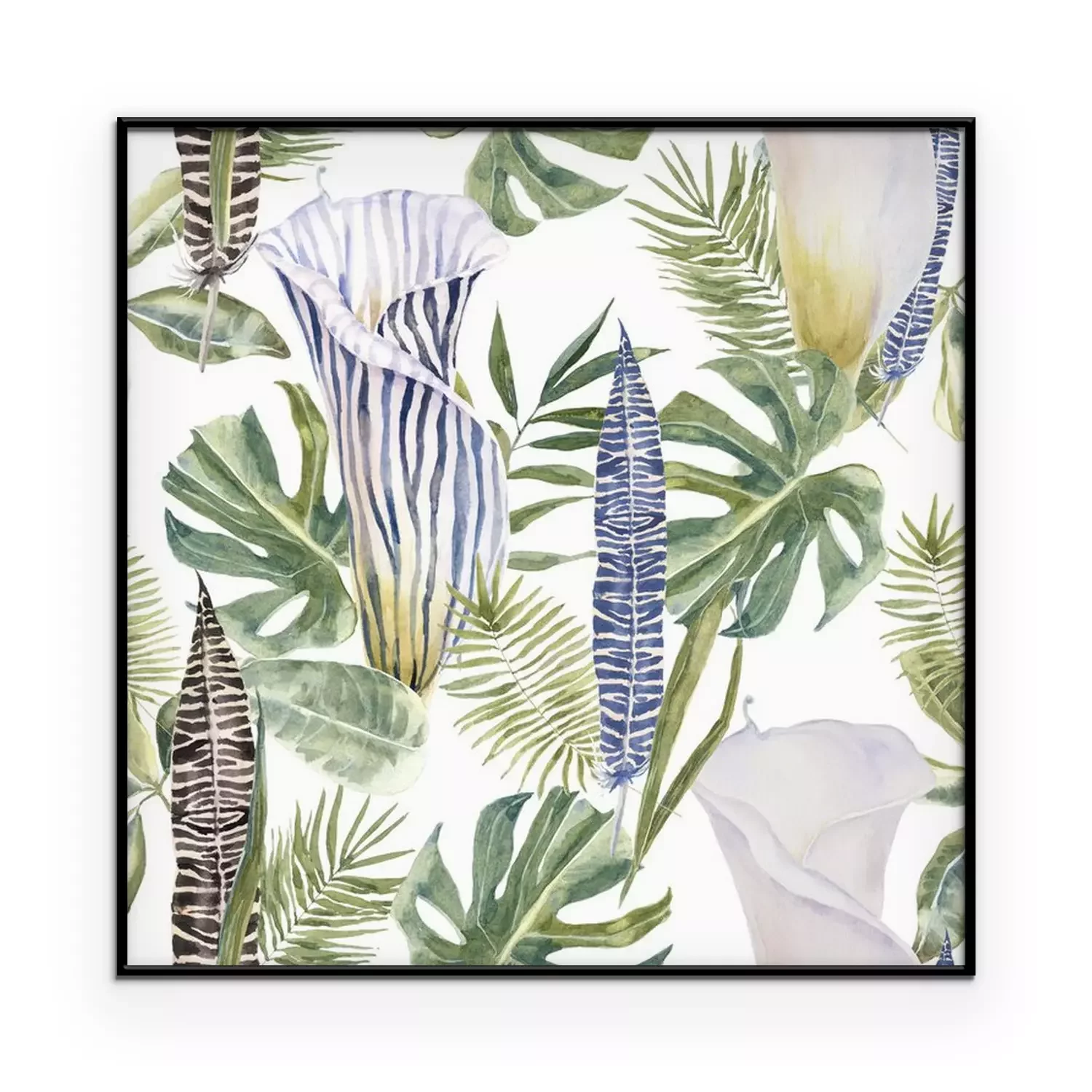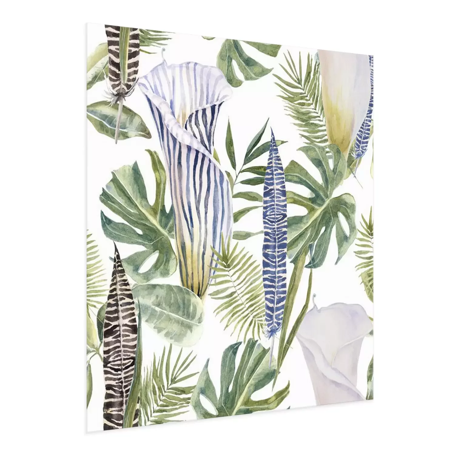 Poster: Kleurrijke natuurbekers bloemen op monstera