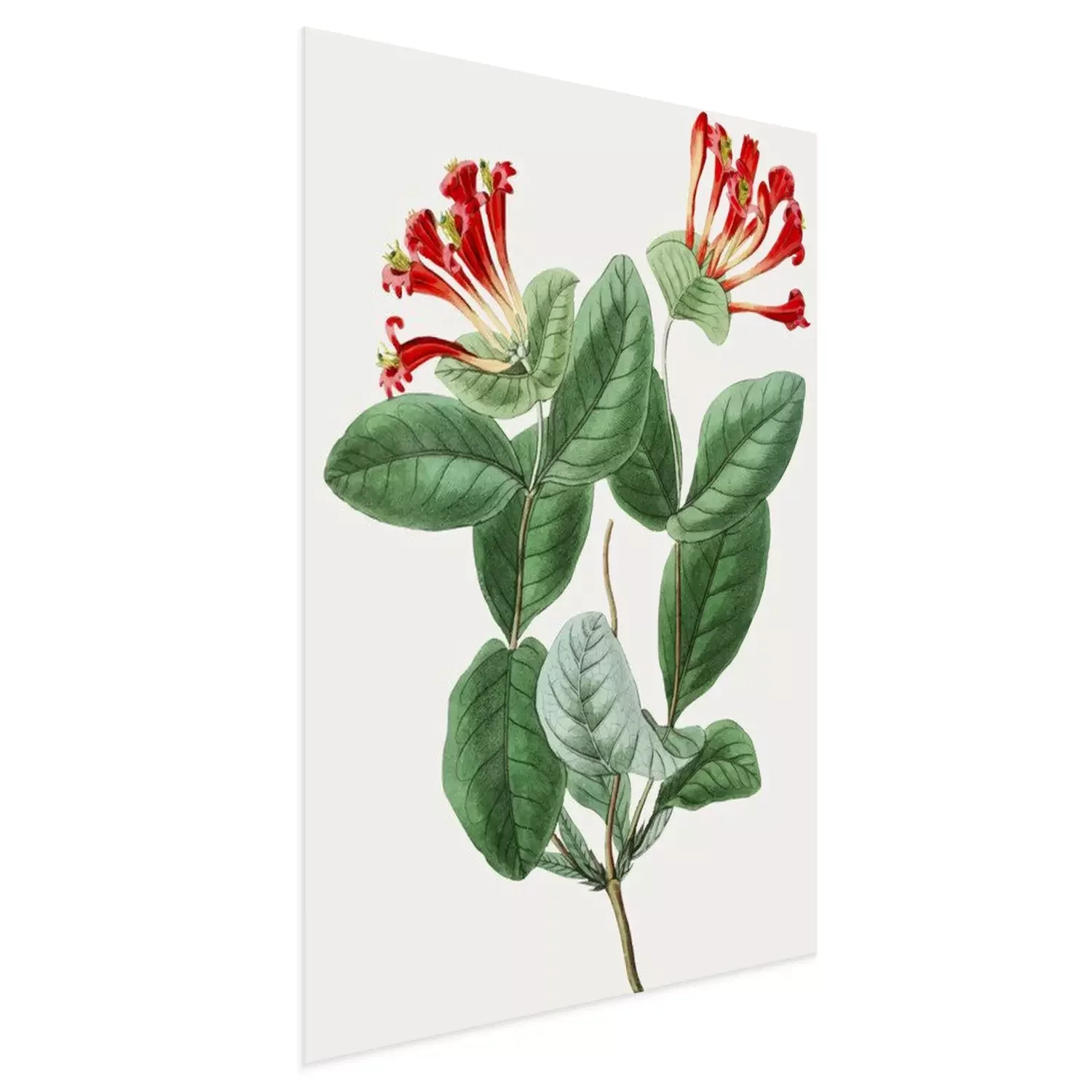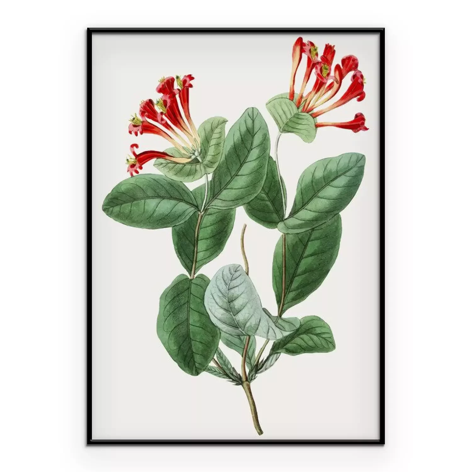 Poster: Kleurrijke tekening van donkere pruimen aan een tak