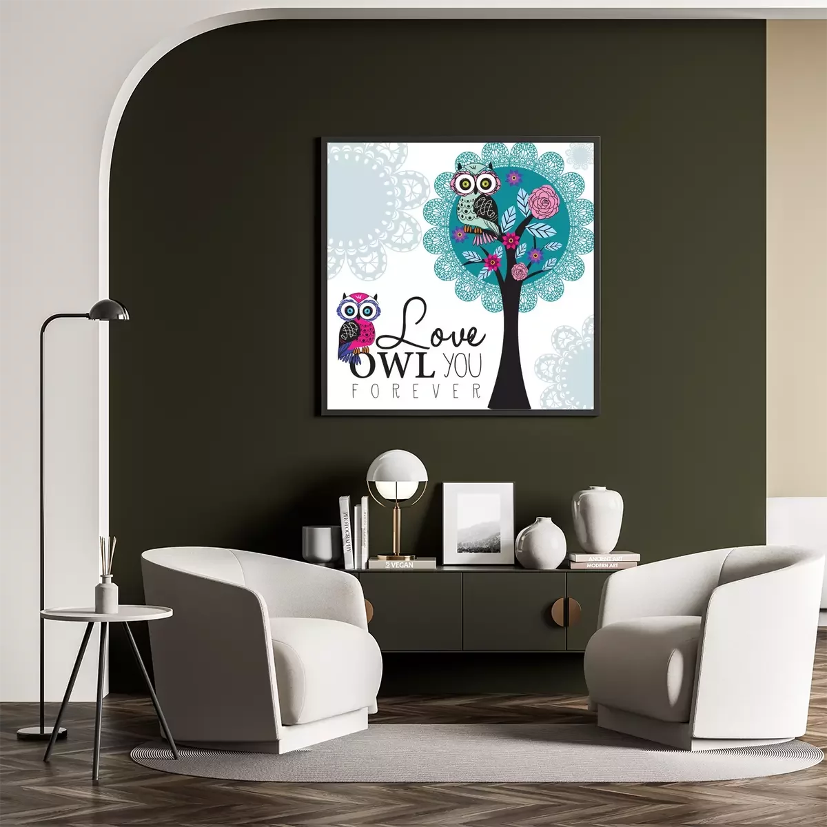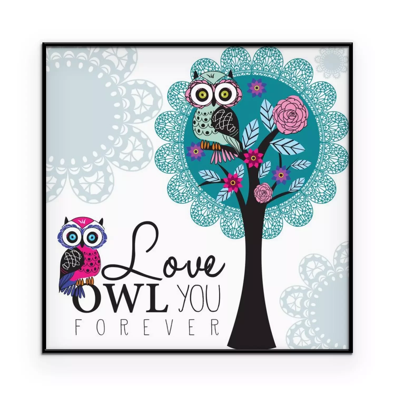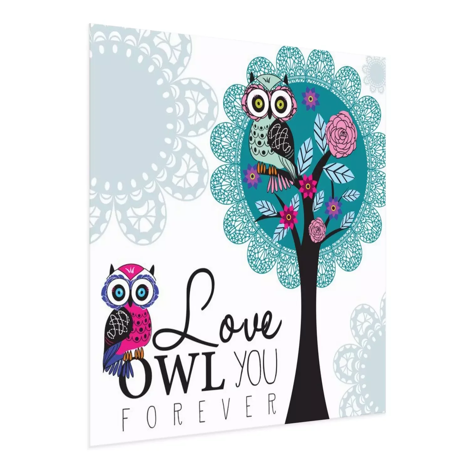 Poster: Kleurrijke uilen en kleurrijke bloemen