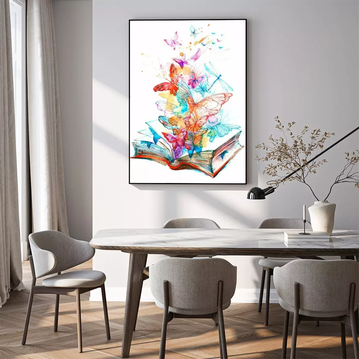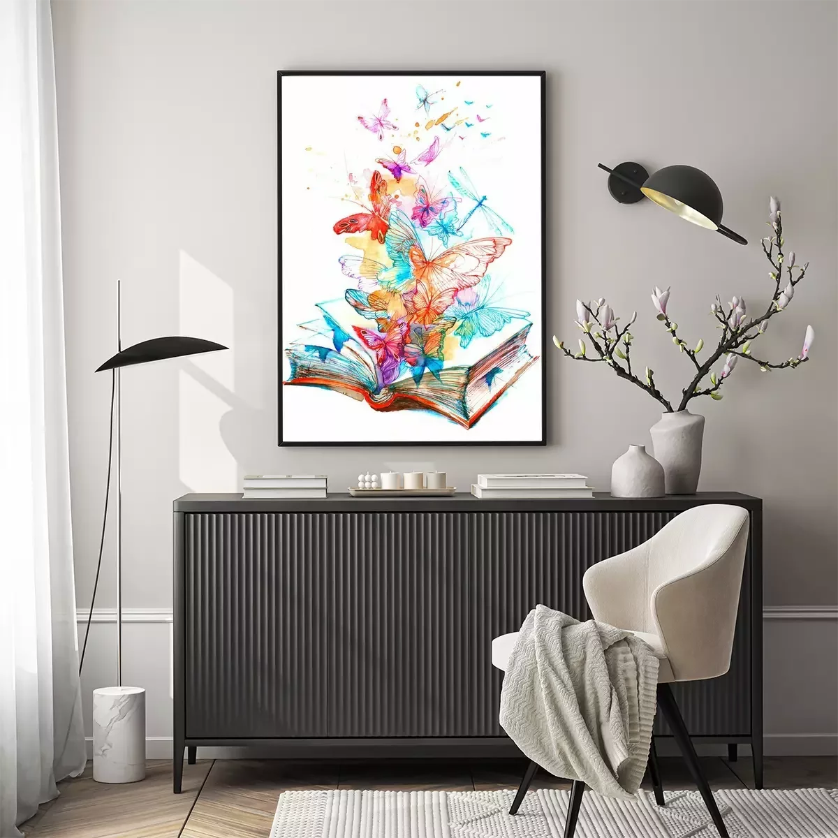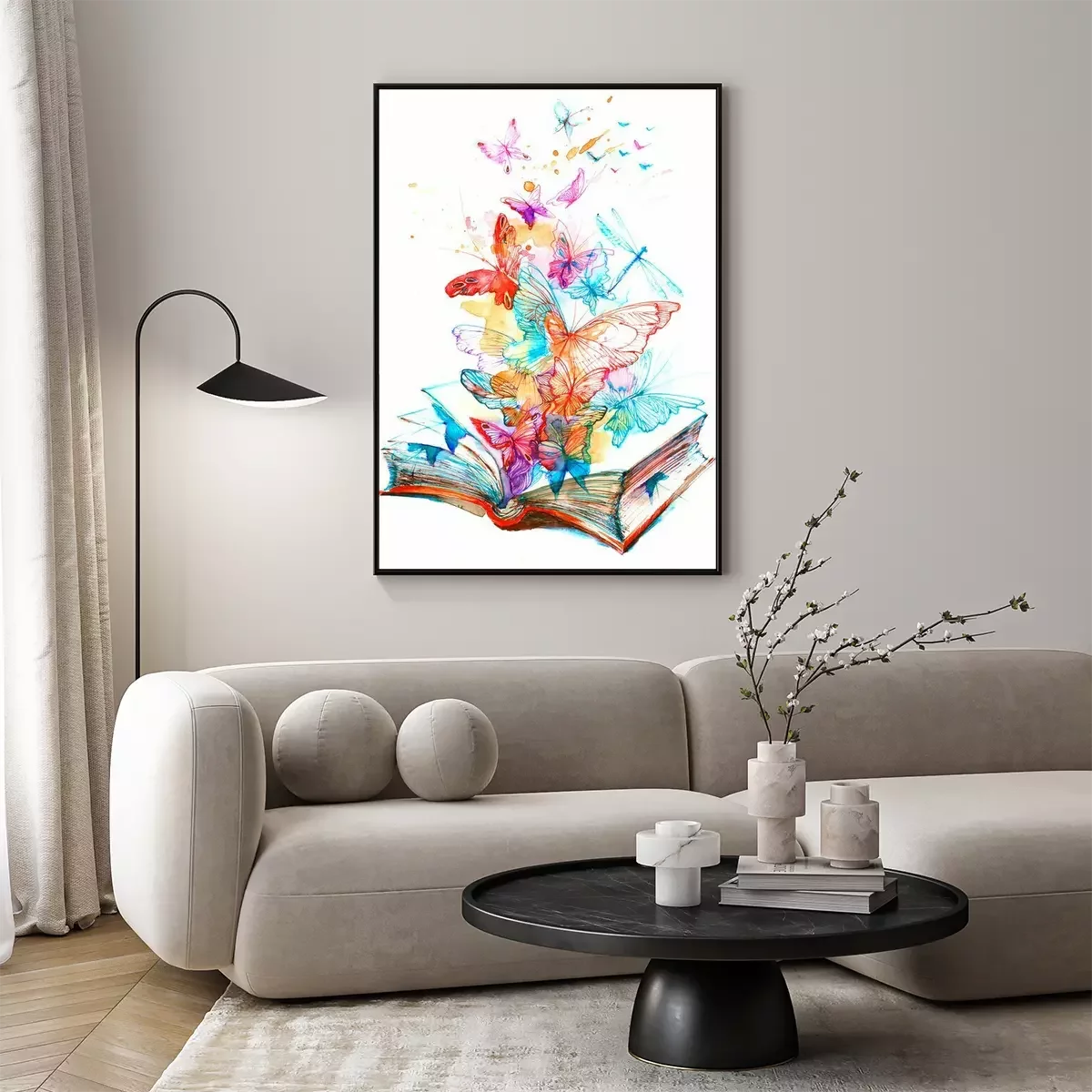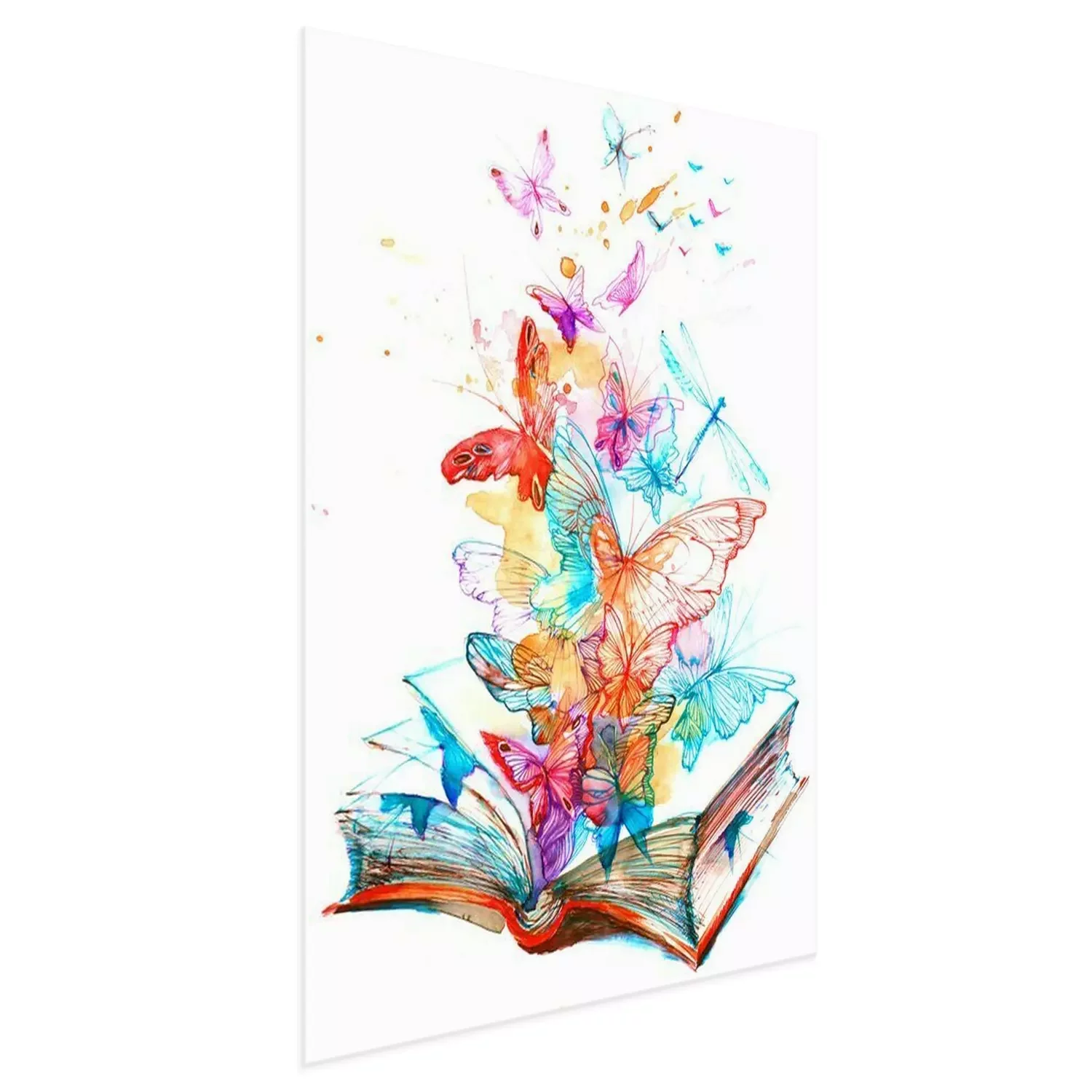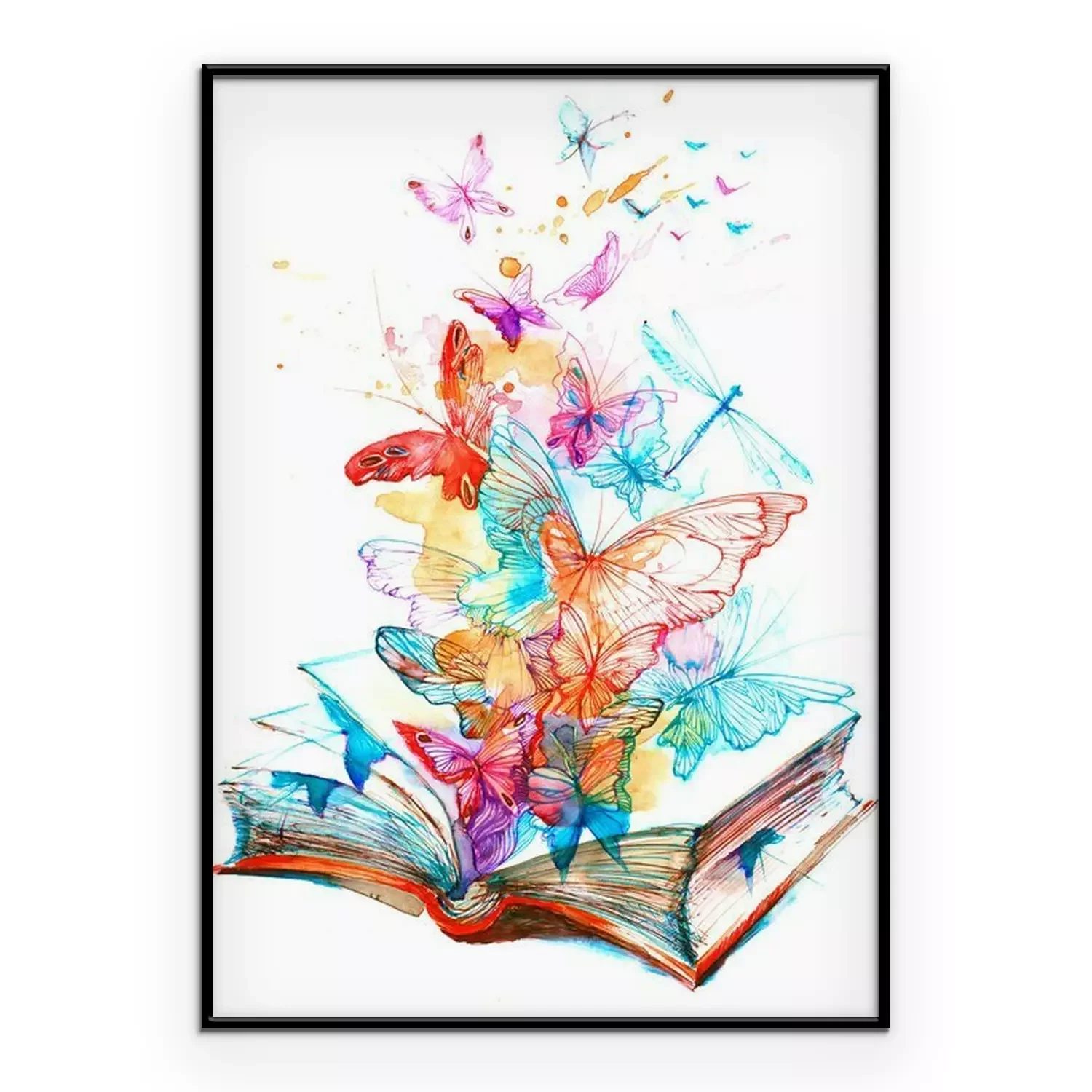 Poster: Kleurrijke vlinders die uit het boek vliegen