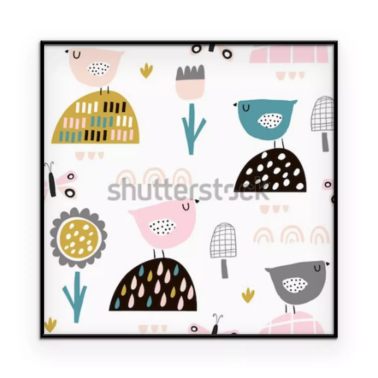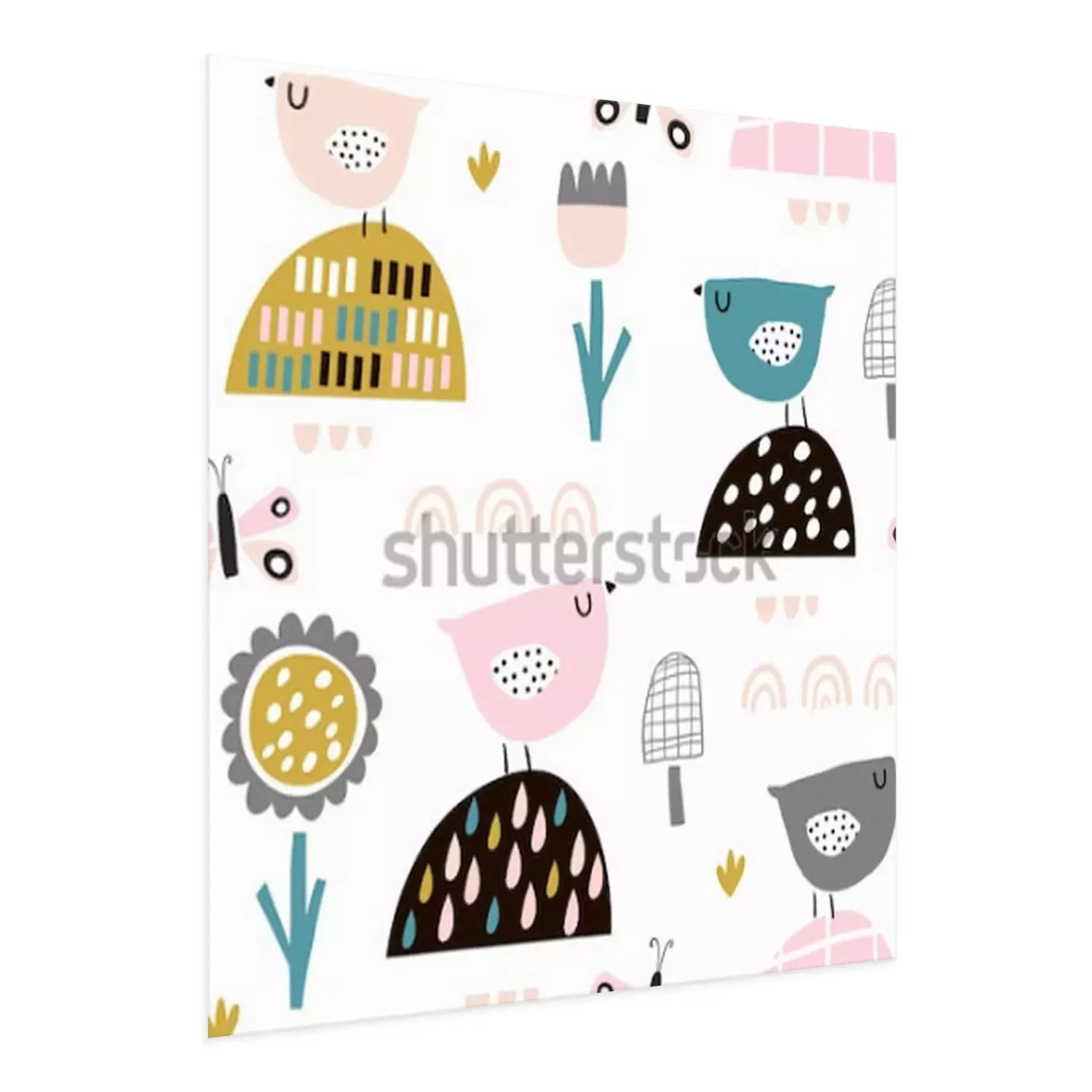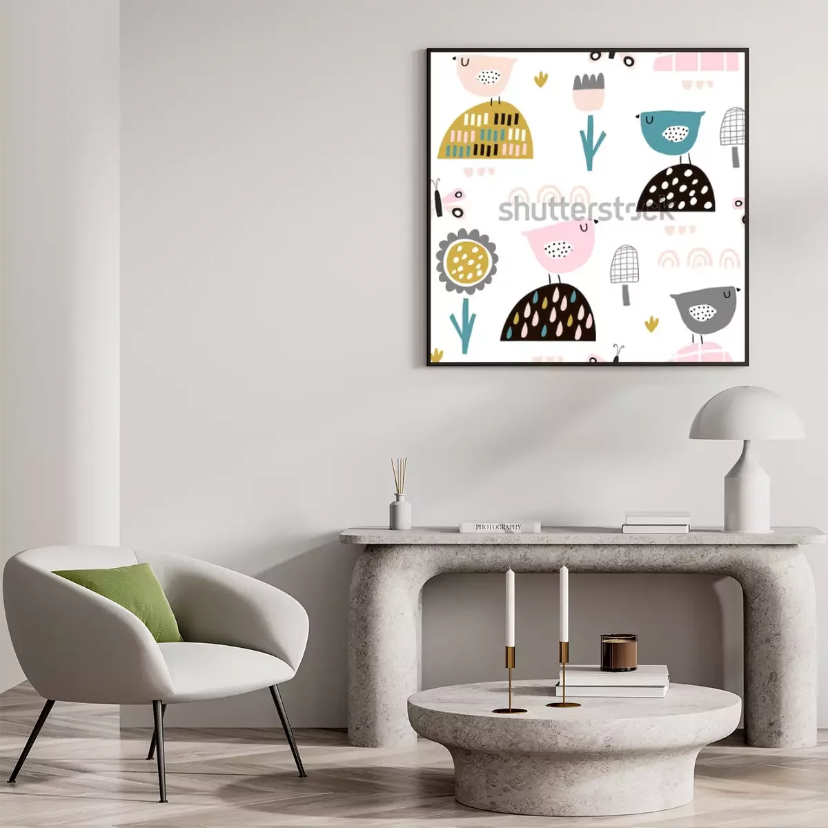Poster: Kleurrijke vogels die op gevormde halve cirkels zitten