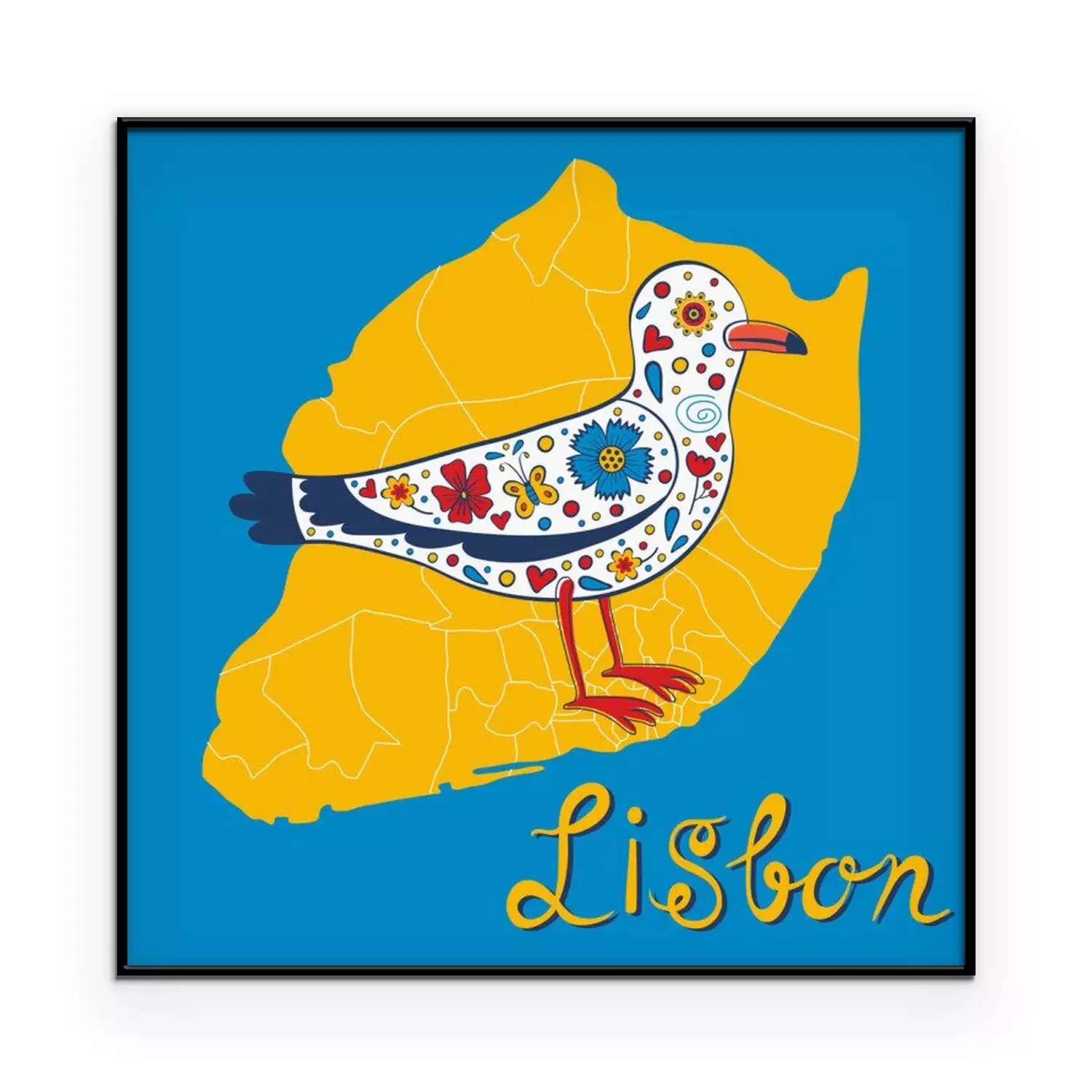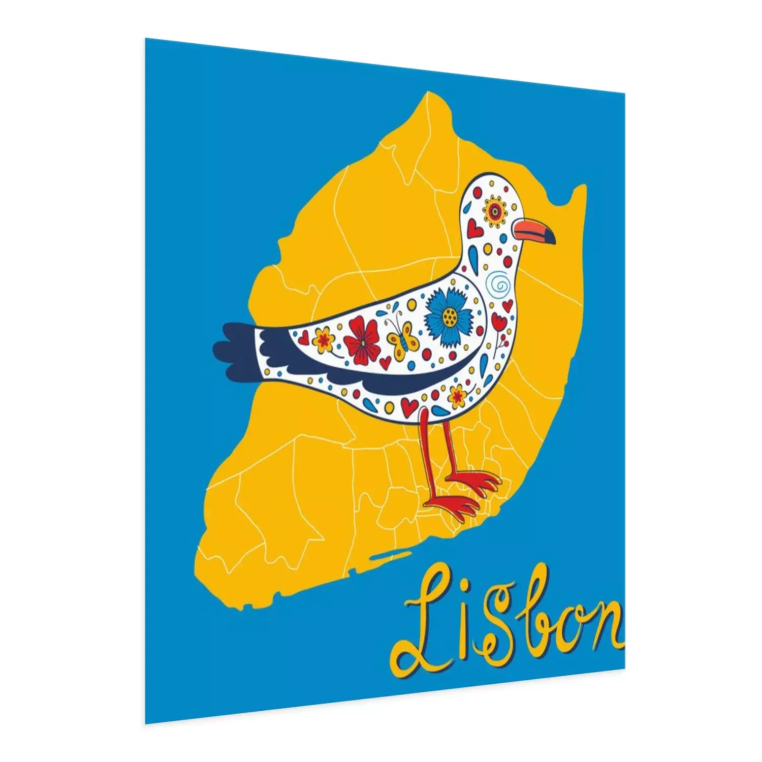 Poster: Kleurrijke zeemeeuw op de kaart van Portugal