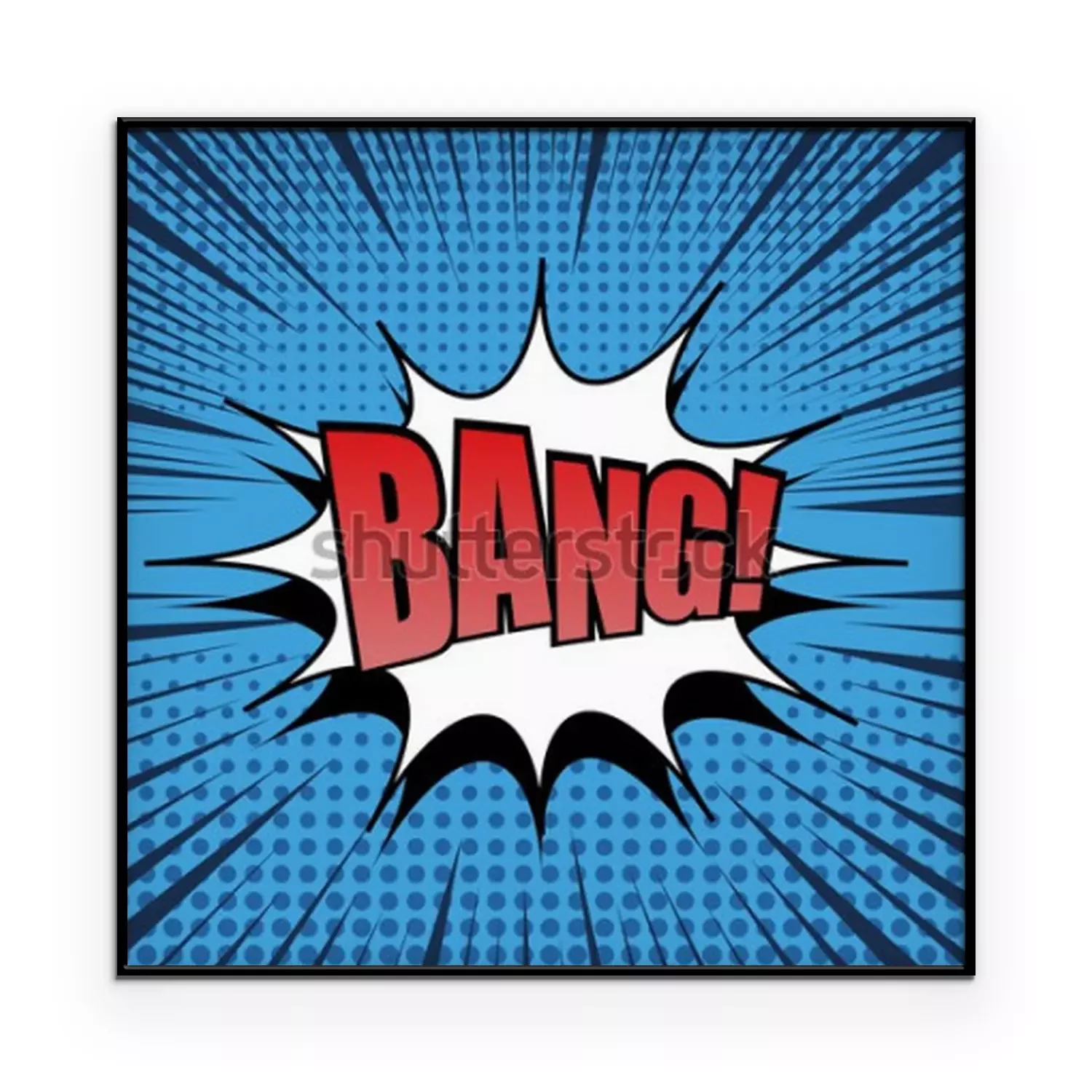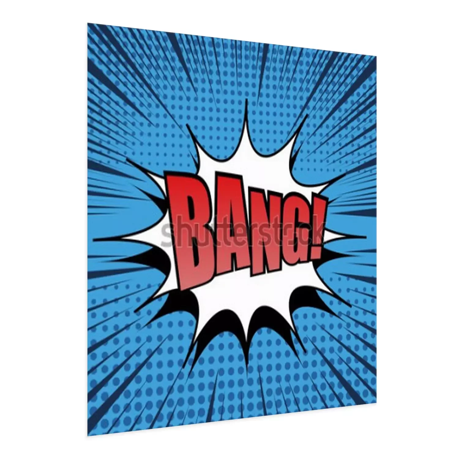 Poster: Knal Grappige bellentekst. Pop-art stijl. Radiale lijnen achtergrond. Explosie vector illustratie. Halftooneffect