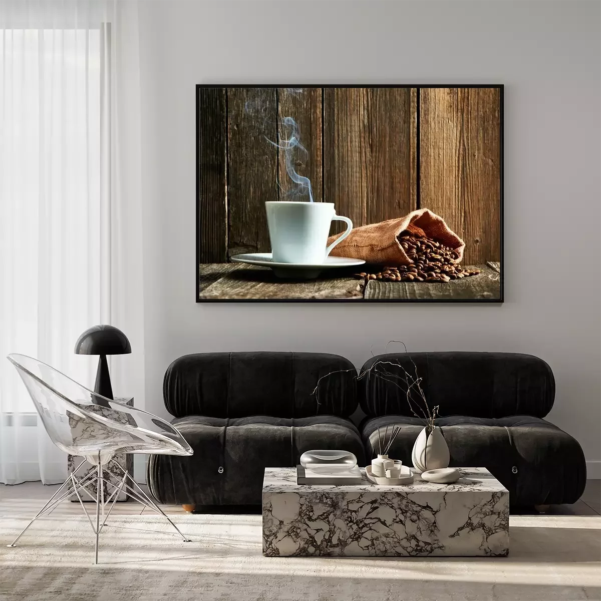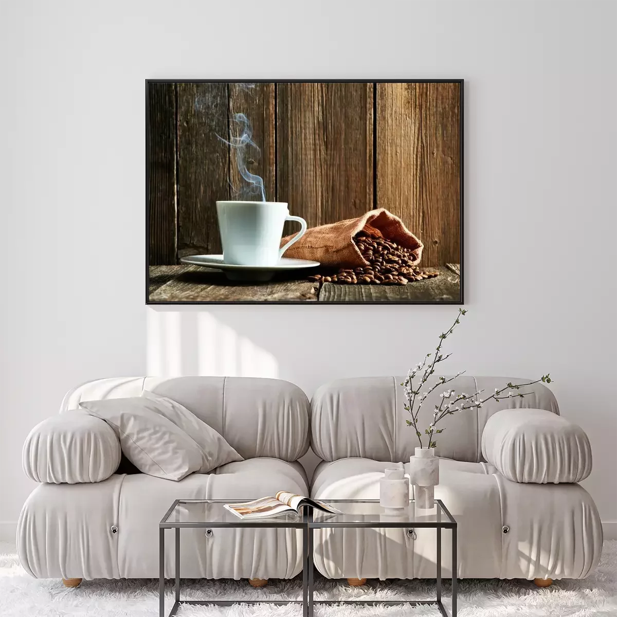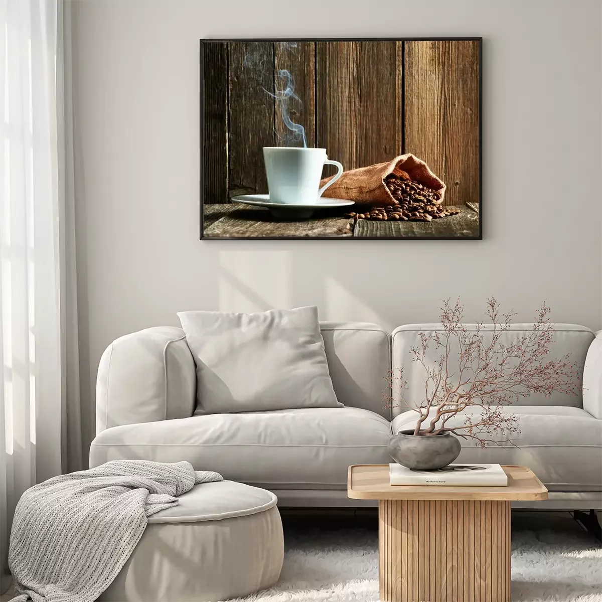 Poster: Kopje koffie en koffiebonen