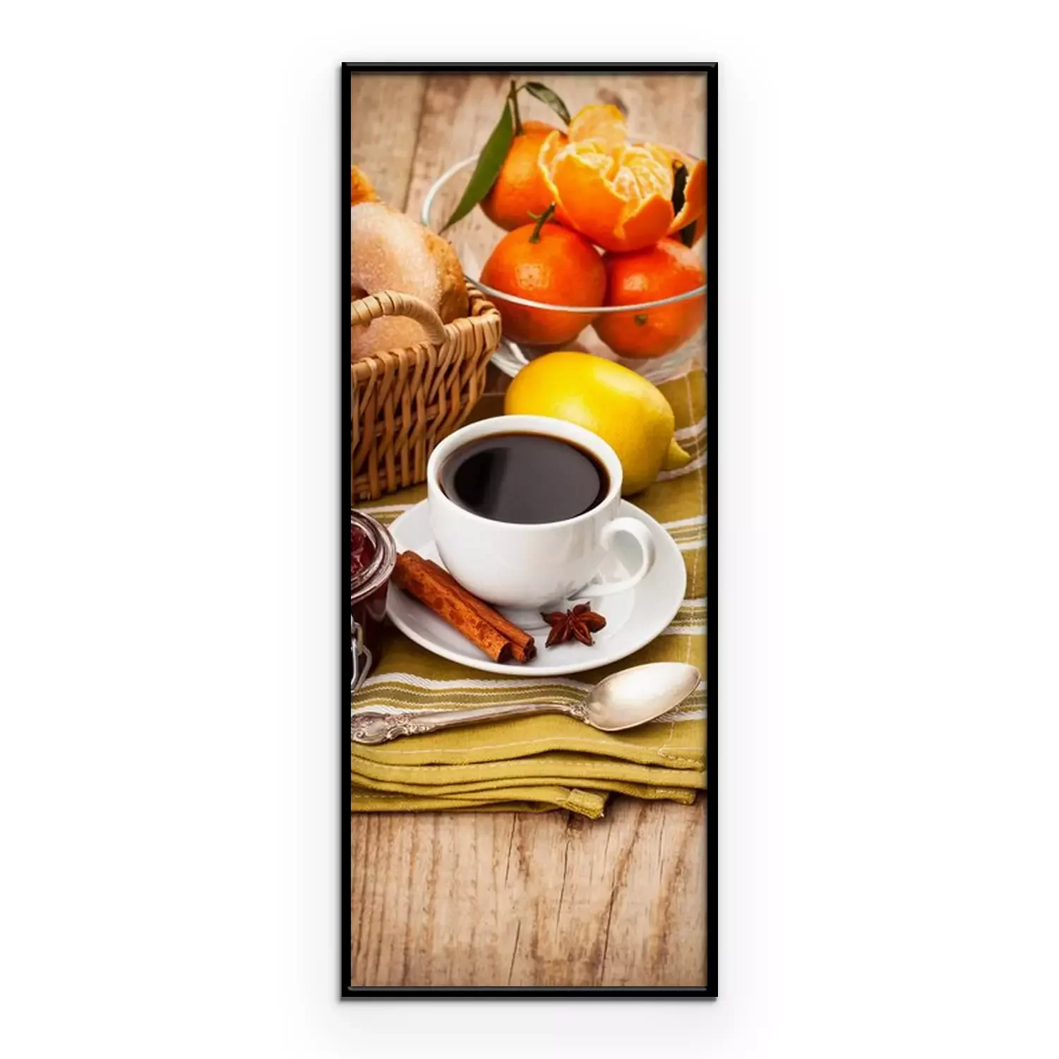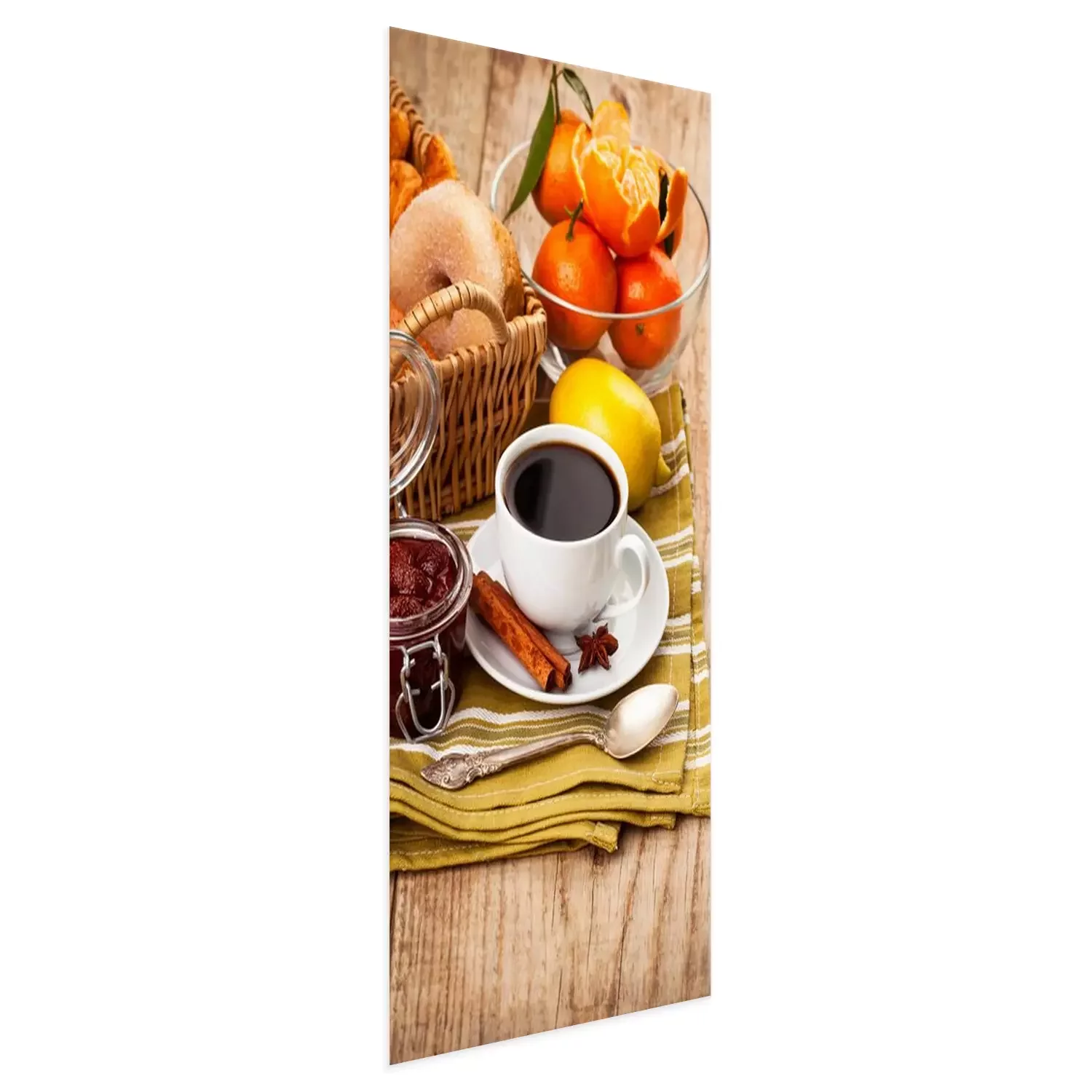 Poster: Kopje koffie ontbijt rustieke stijl op een houten bord
