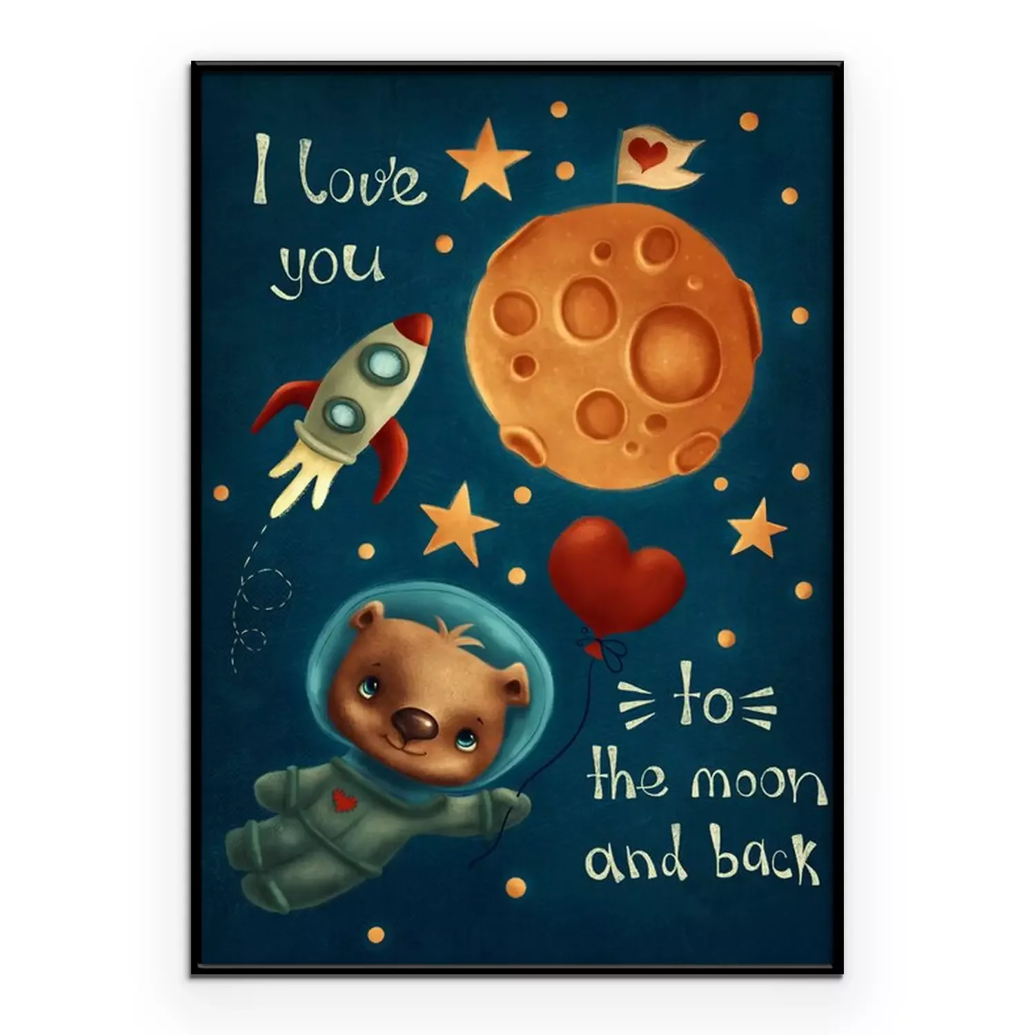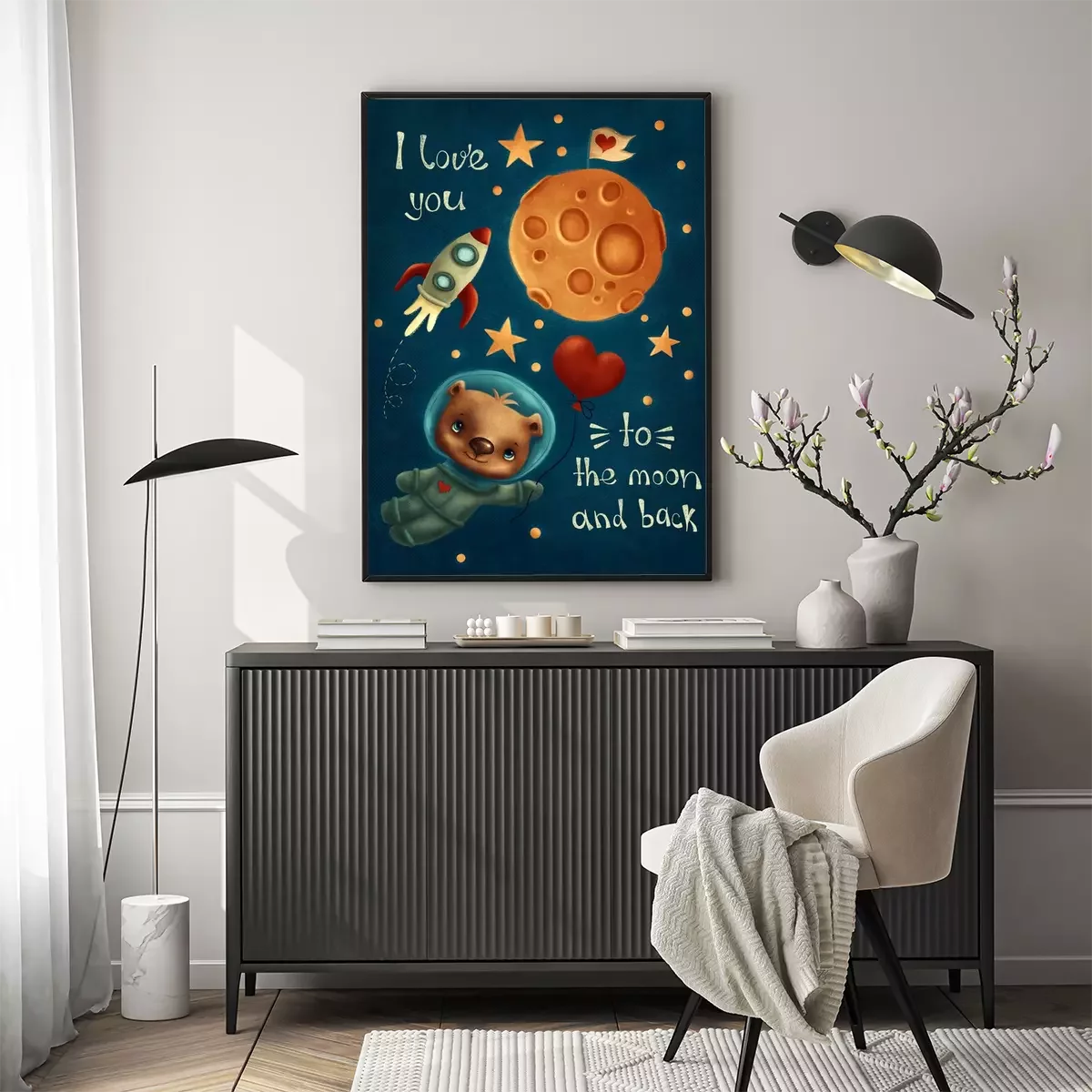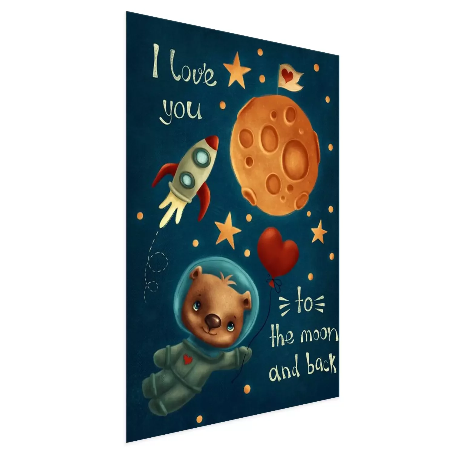 Poster: Kosmonaut beer in de ruimte met ballonhart