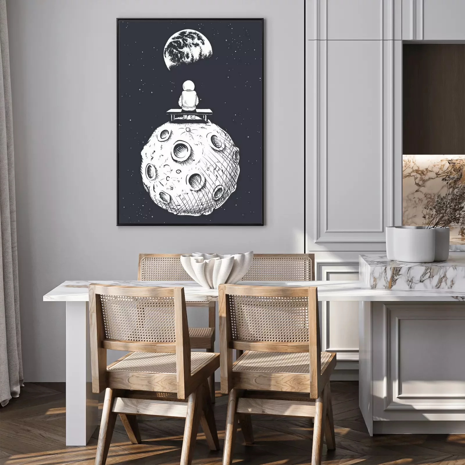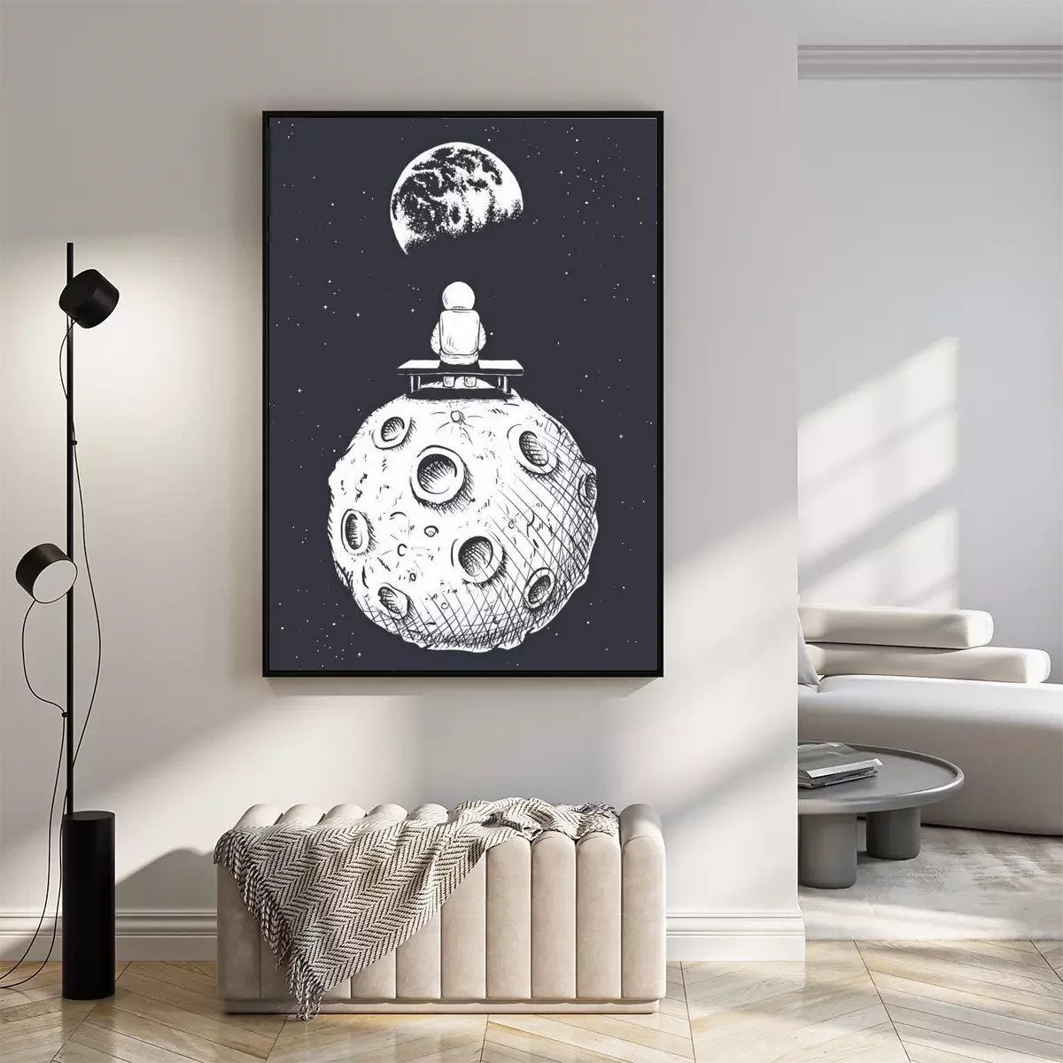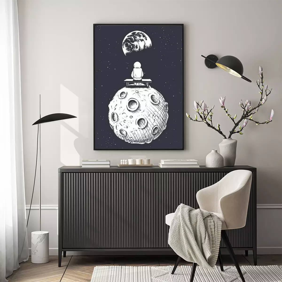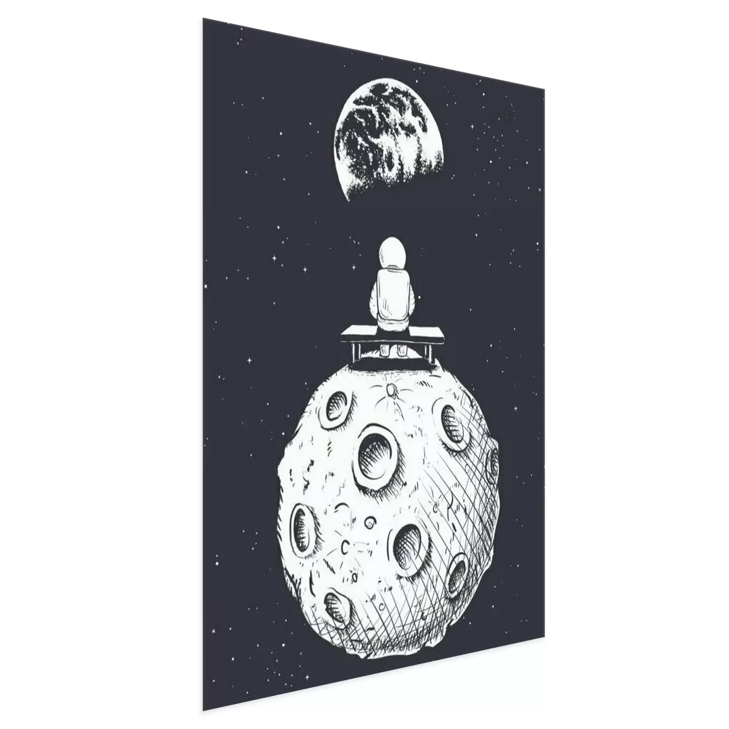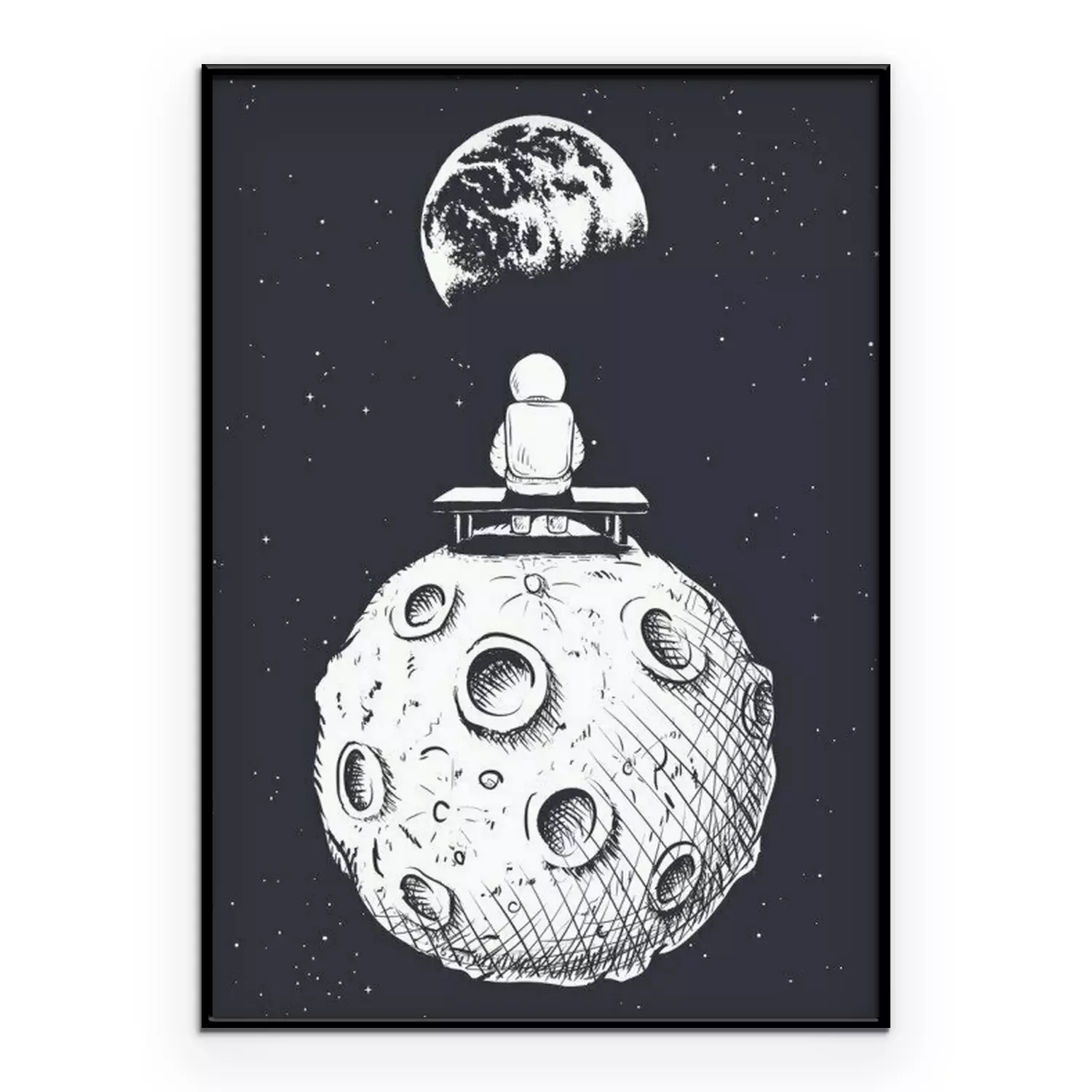 Poster: Kosmonaut zittend op een bankje op de maan kijkend naar de aarde