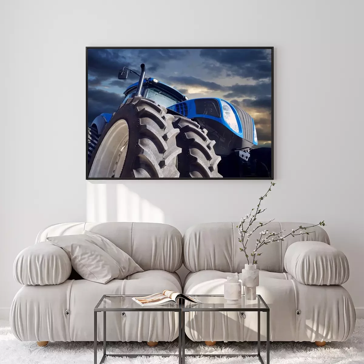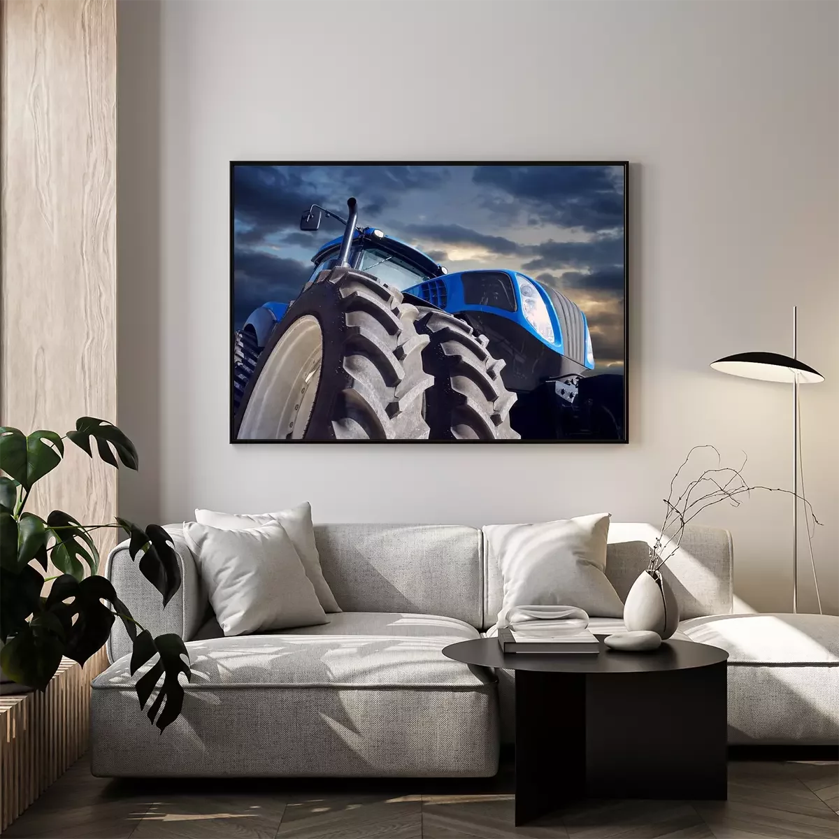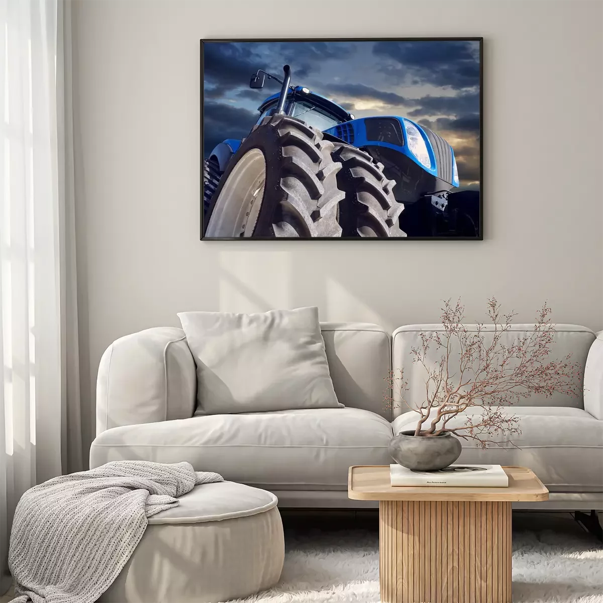 Poster: Krachtige tractor op zonsondergangachtergrond