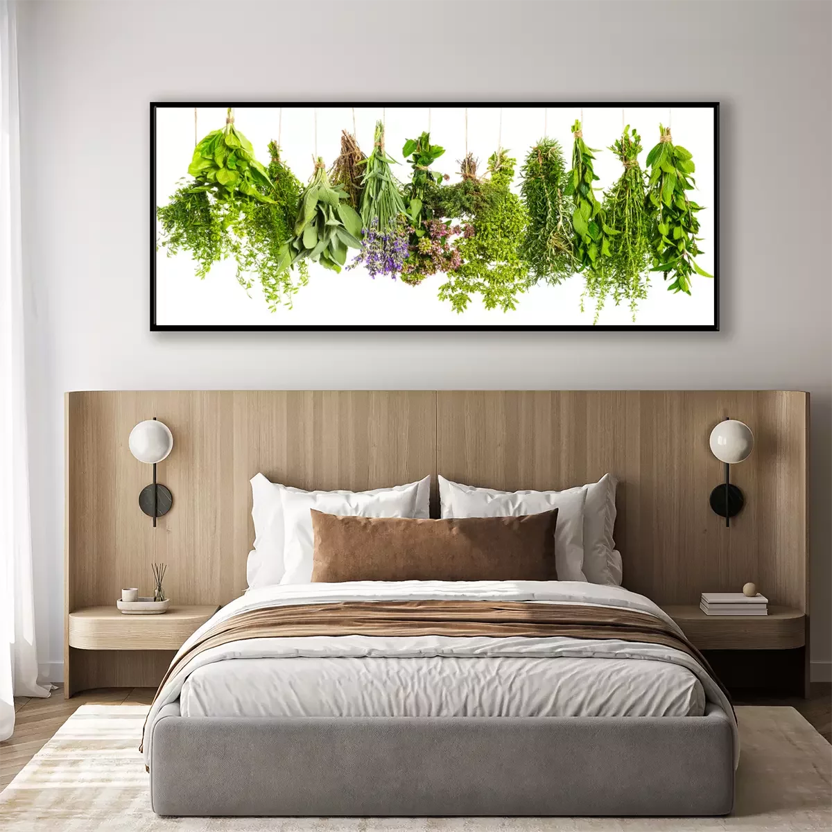 Poster: kruiden opknoping geïsoleerd op wit. voedselingrediënten