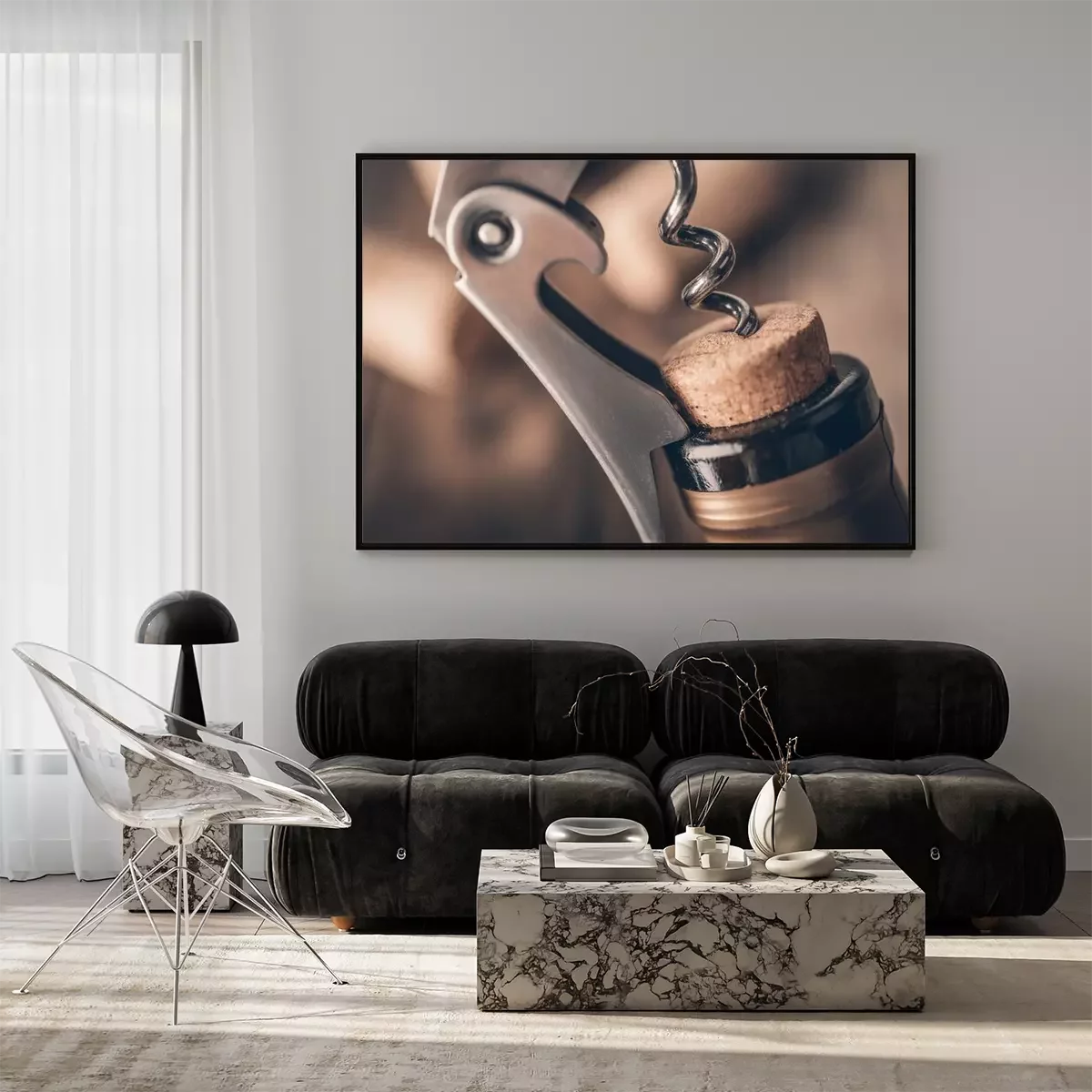 Poster: Kurkentrekker en wijn
