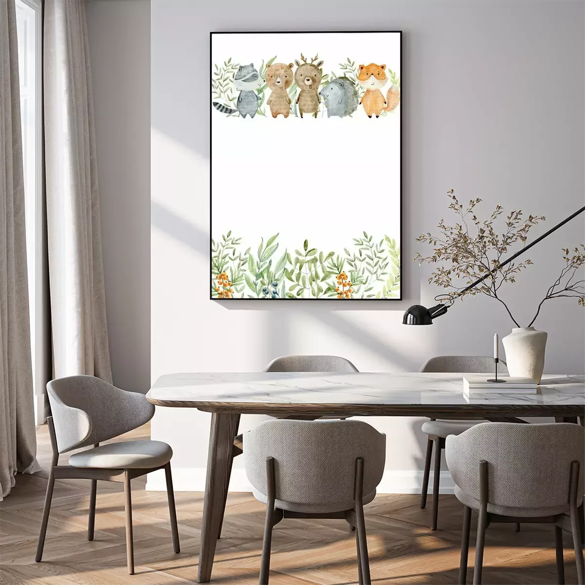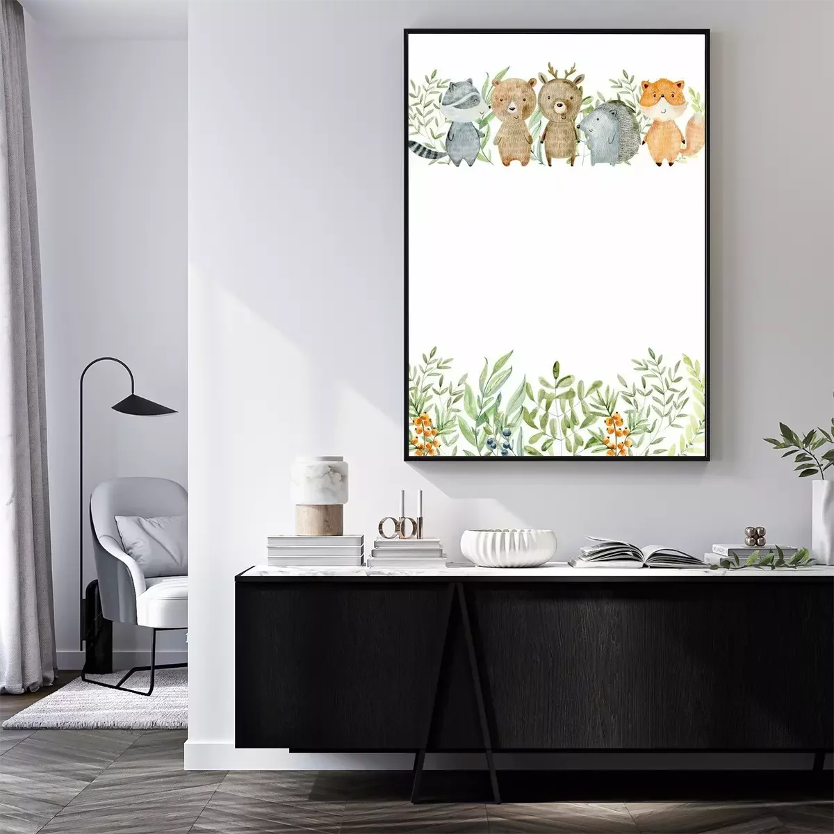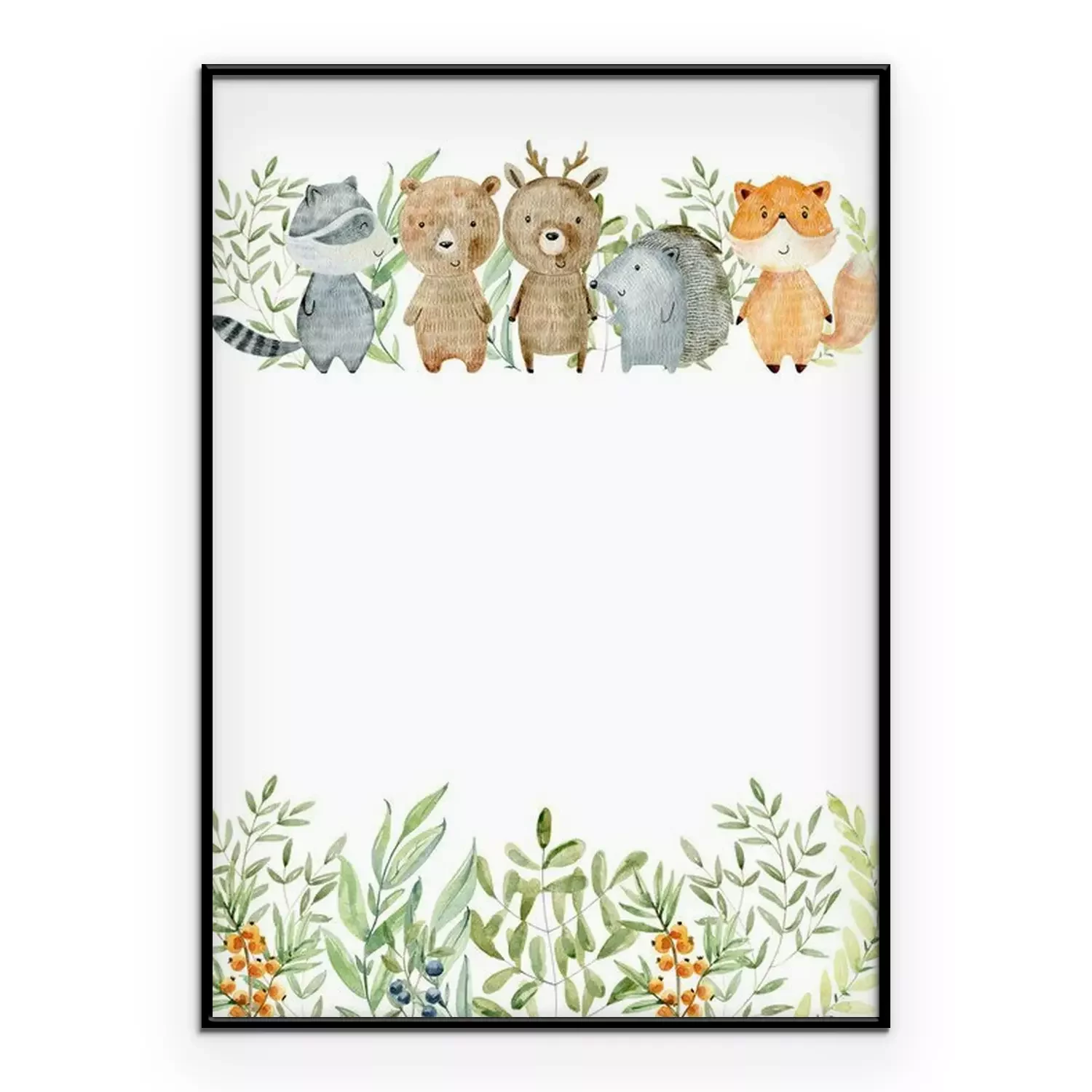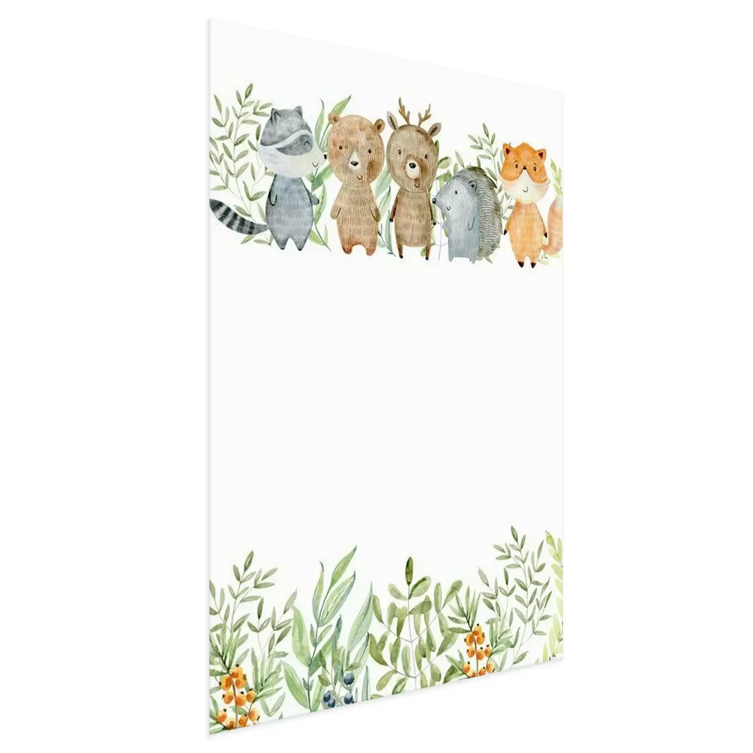 Poster: Lachende dieren uit het bos en het thema groene bladeren
