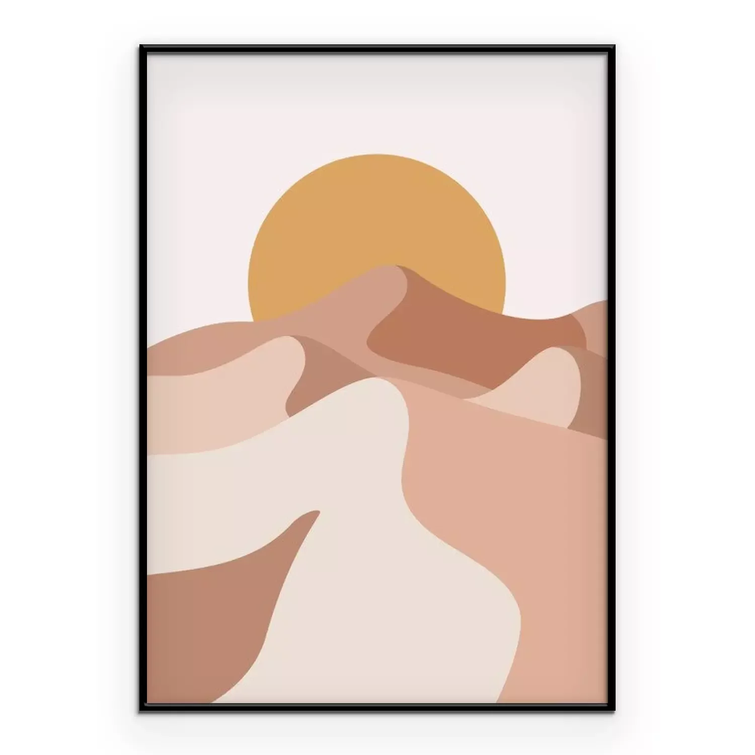 Poster Landscape design with desert hills. Sunset in mountains. Abstract wavy shapes in trendy style. Vector backdrop.