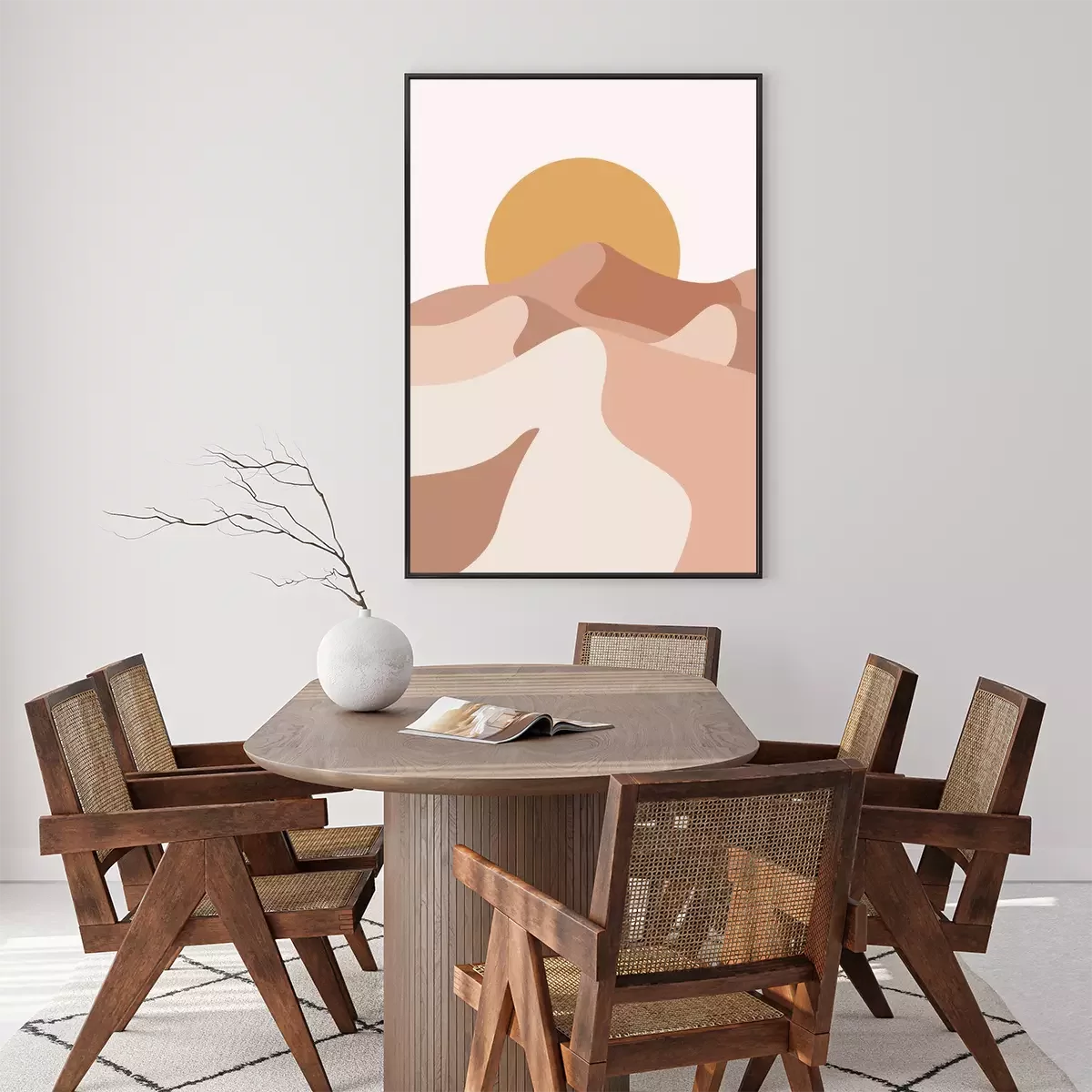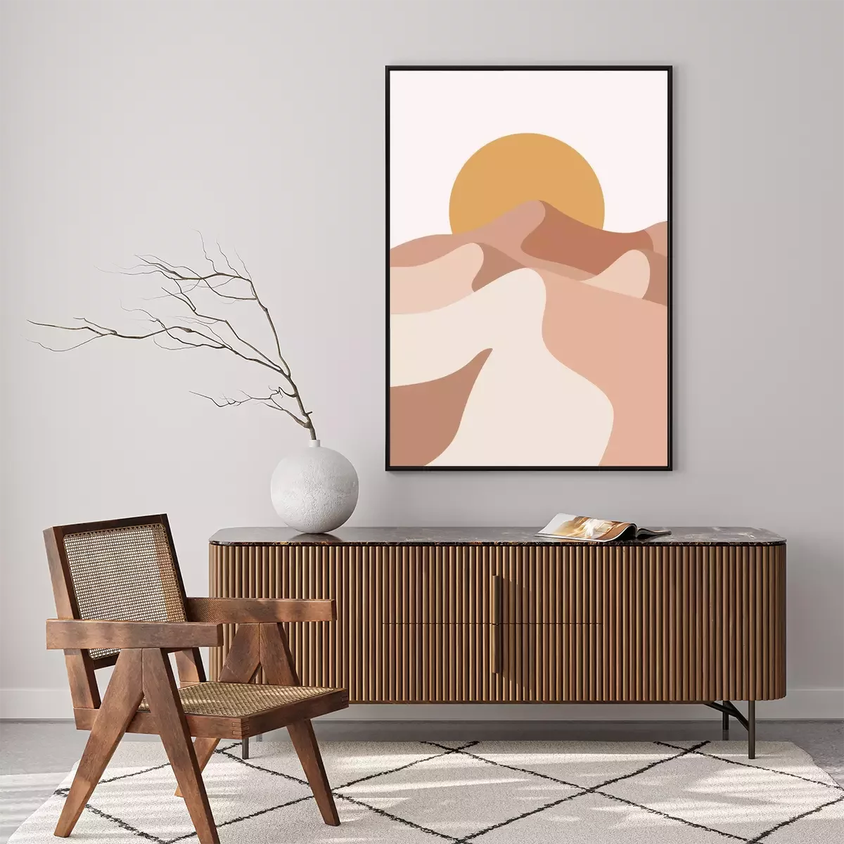 Landscape poster with desert sand hills. Nature abstract wavy shapes. Sunset backdrop. Vector illustration.