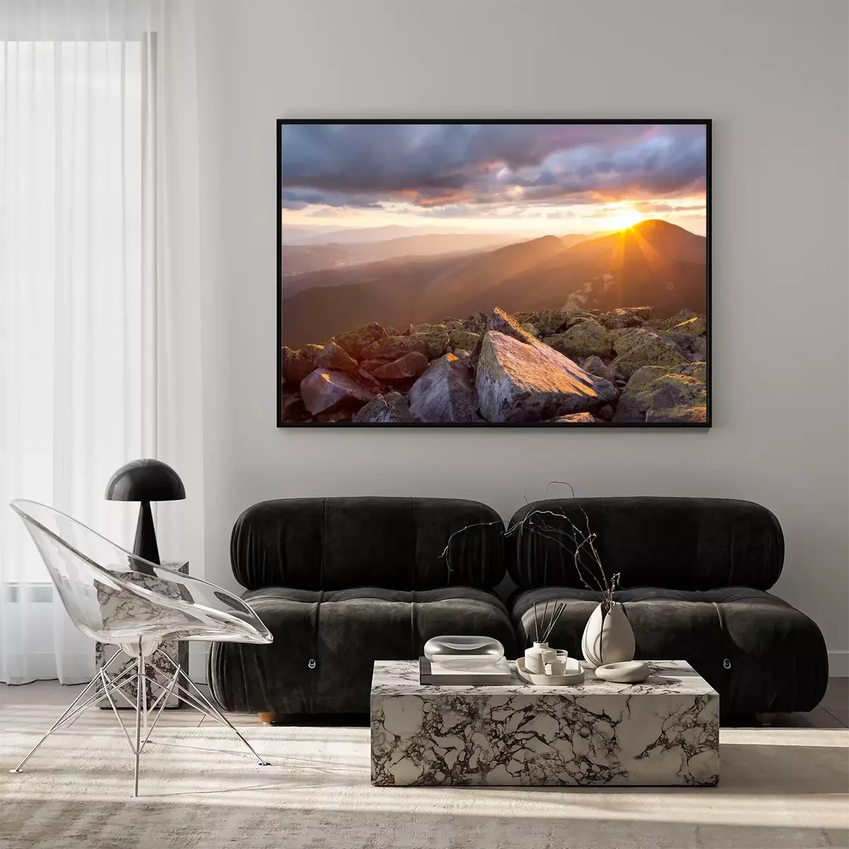 Poster Landschap met bergzonsondergang