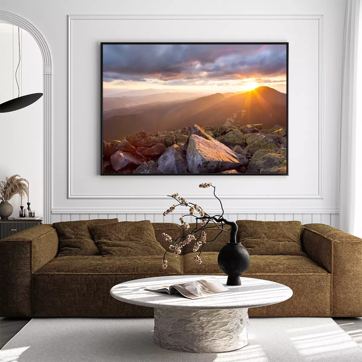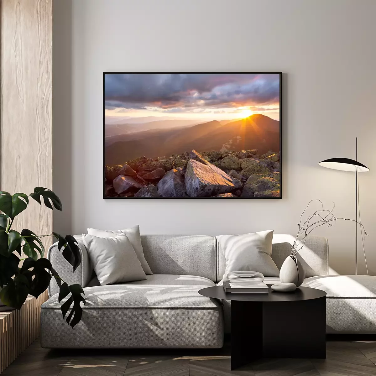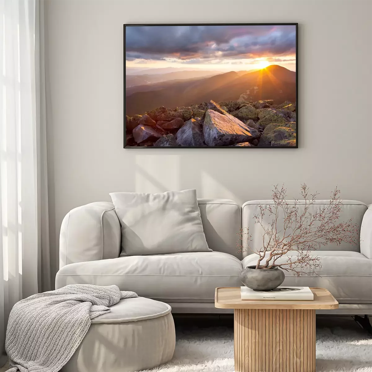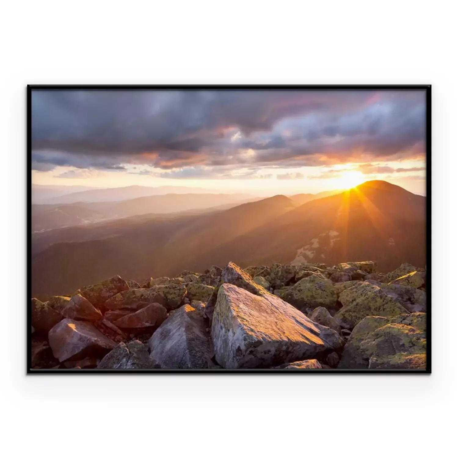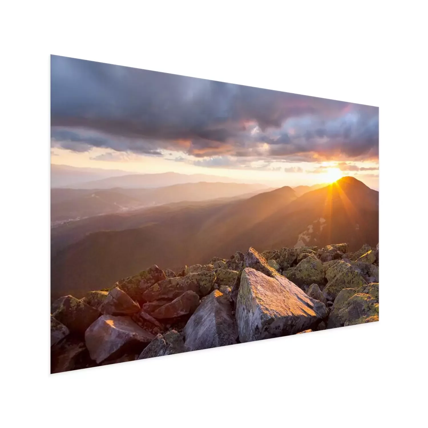 Poster: Landschap met bergzonsondergang