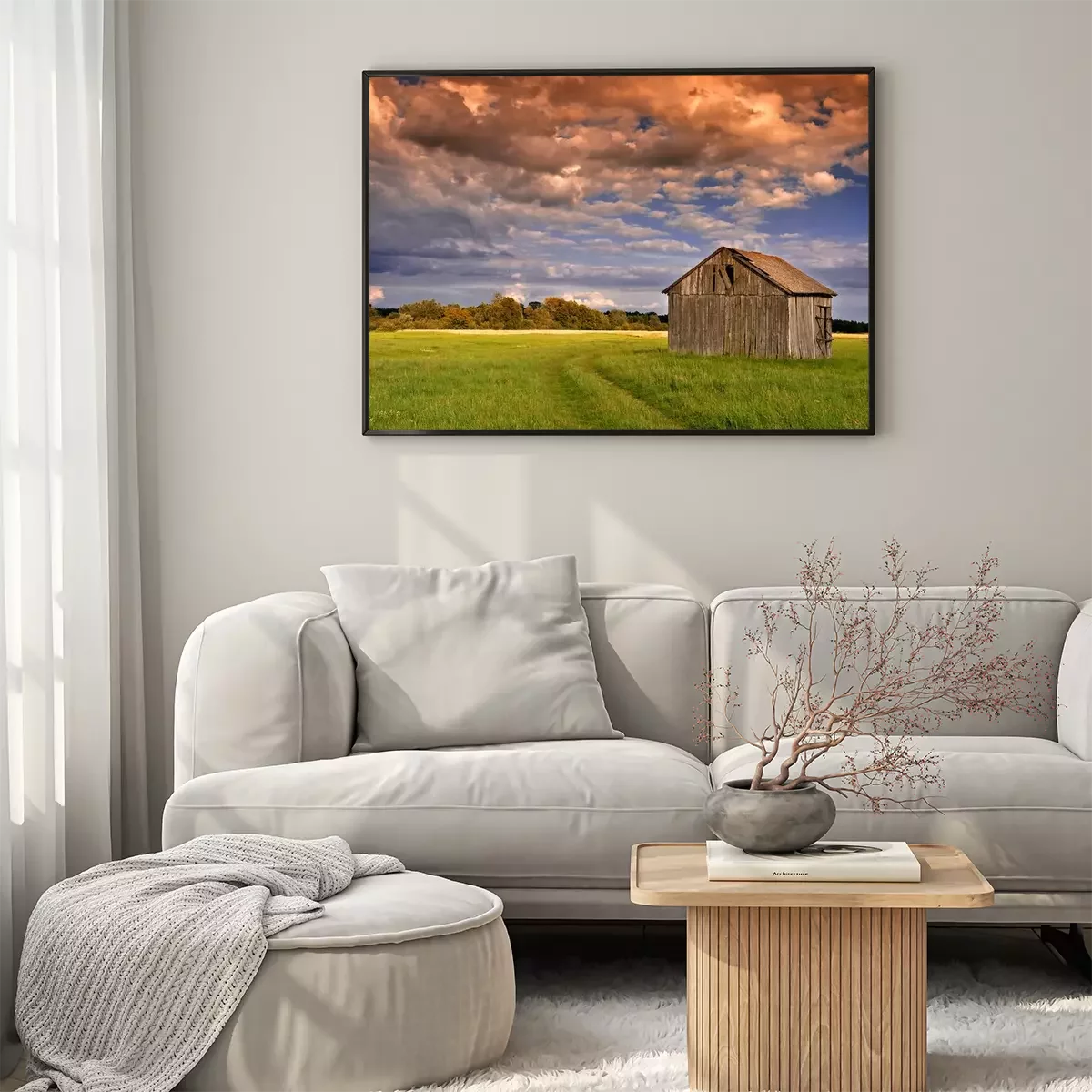 Poster: Landschap met een houten schuur