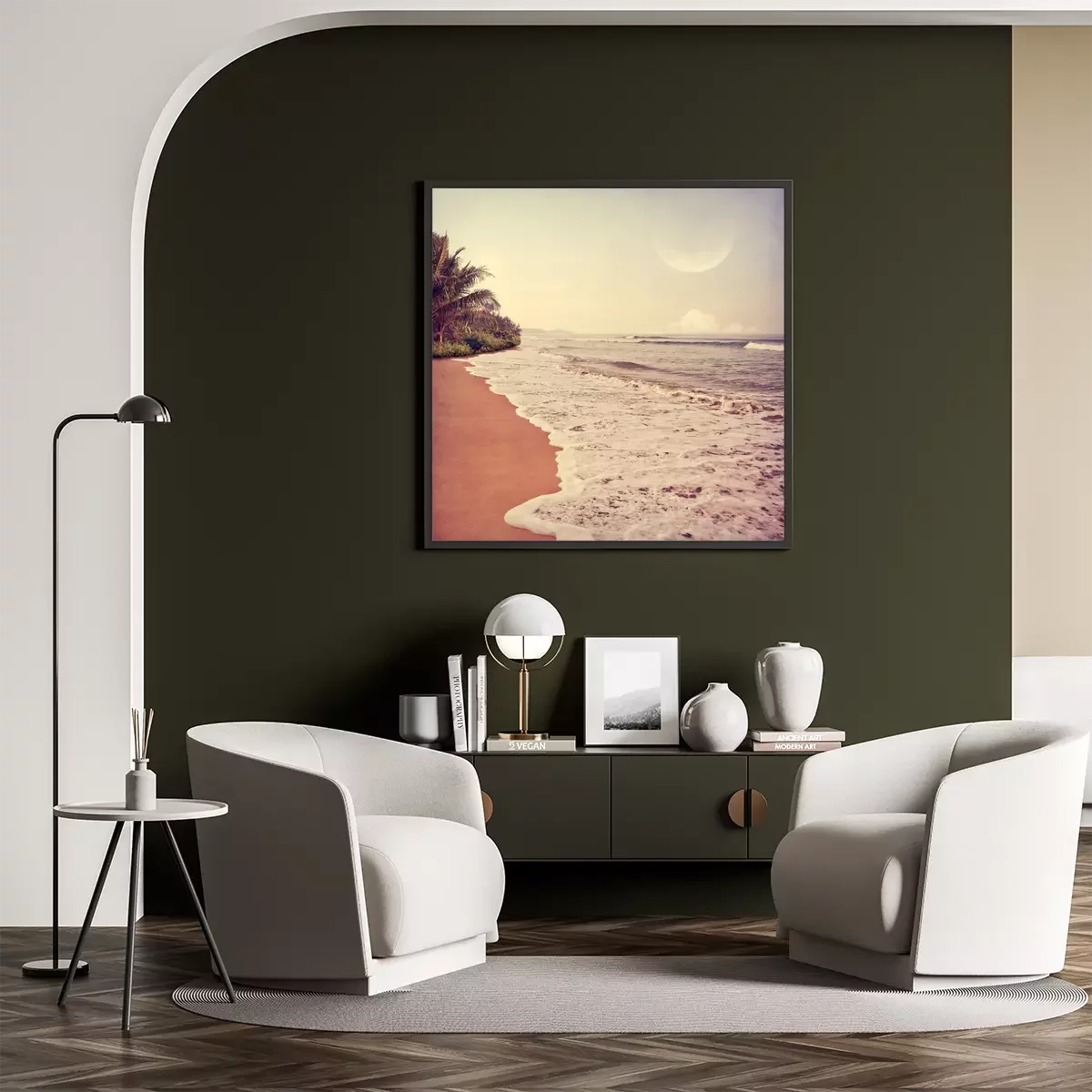 Poster: Landschap met een strand en de maan