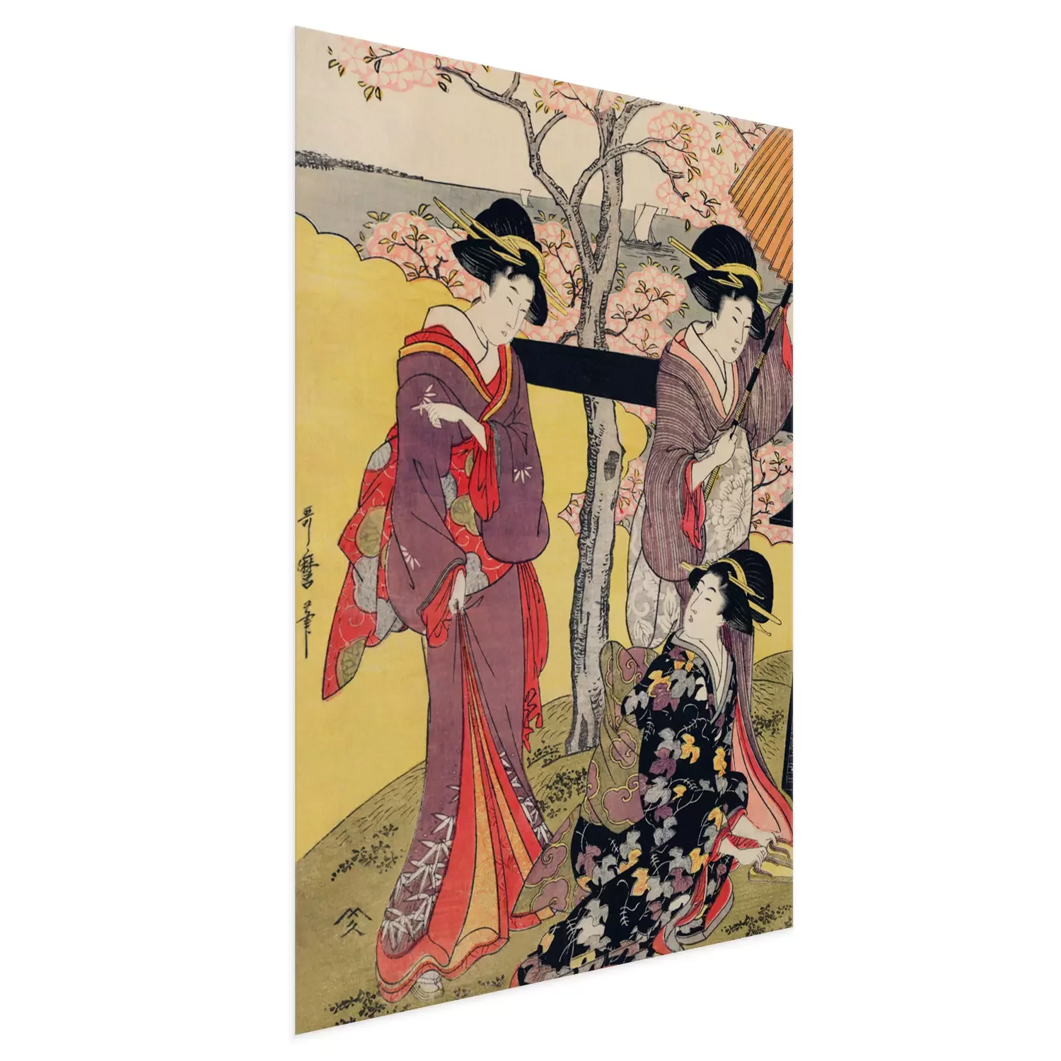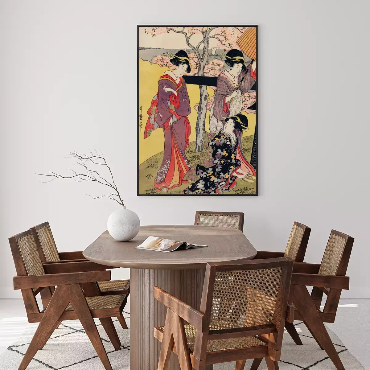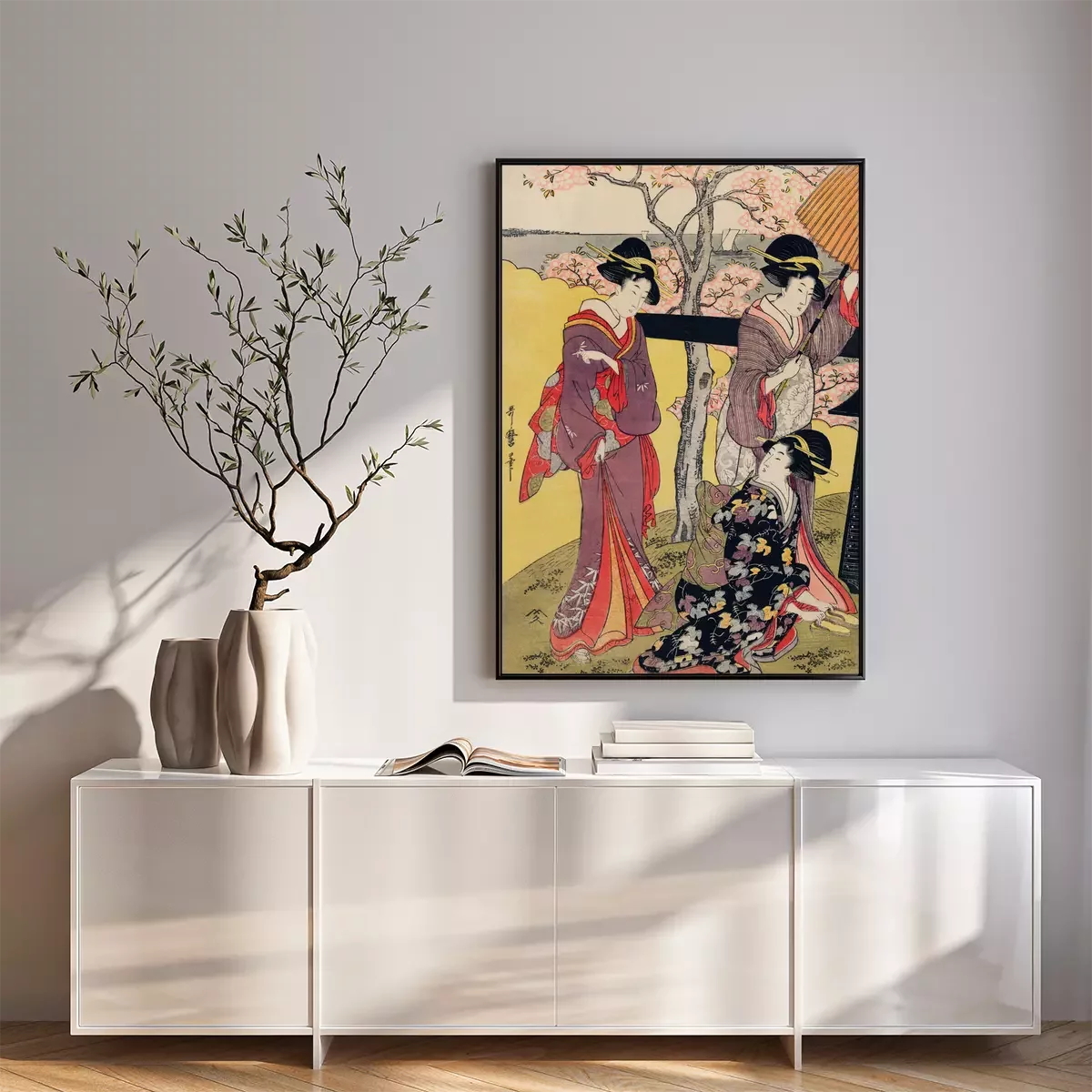 Poster: Landschap met Japanse kersenbloesem en vrouwen