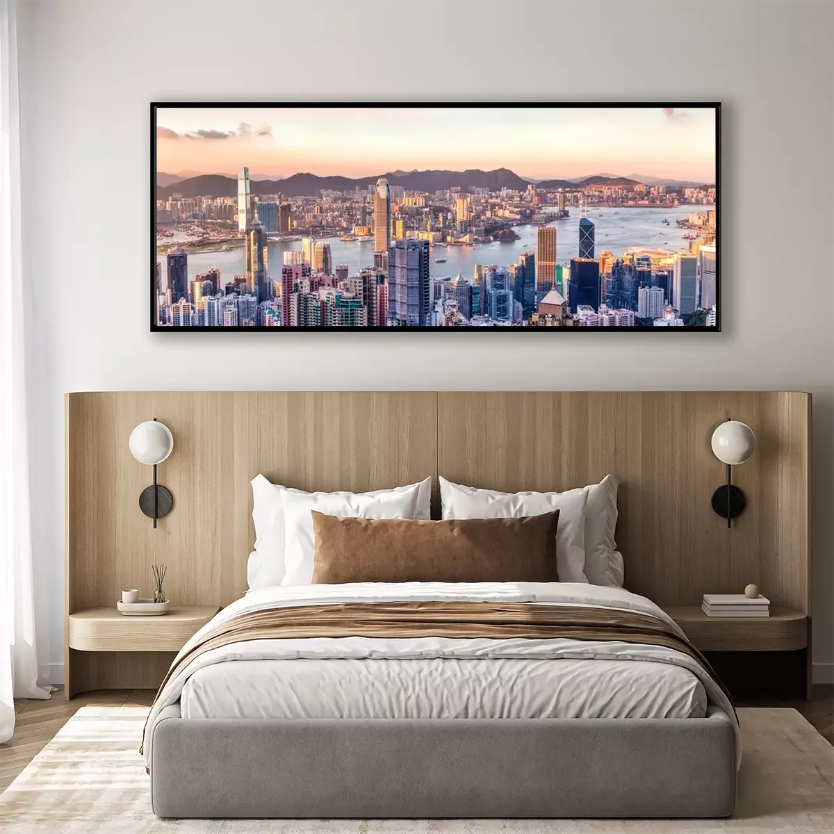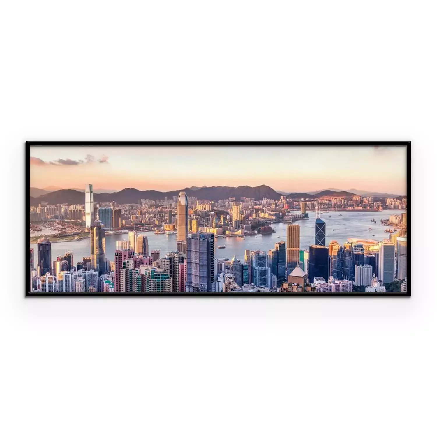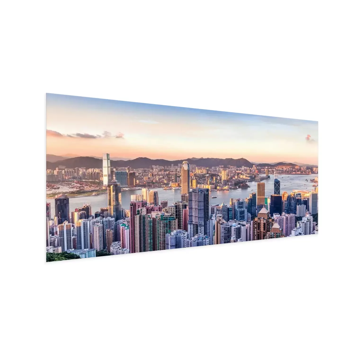 Poster: Landschap met zonsondergang en wolkenkrabbers