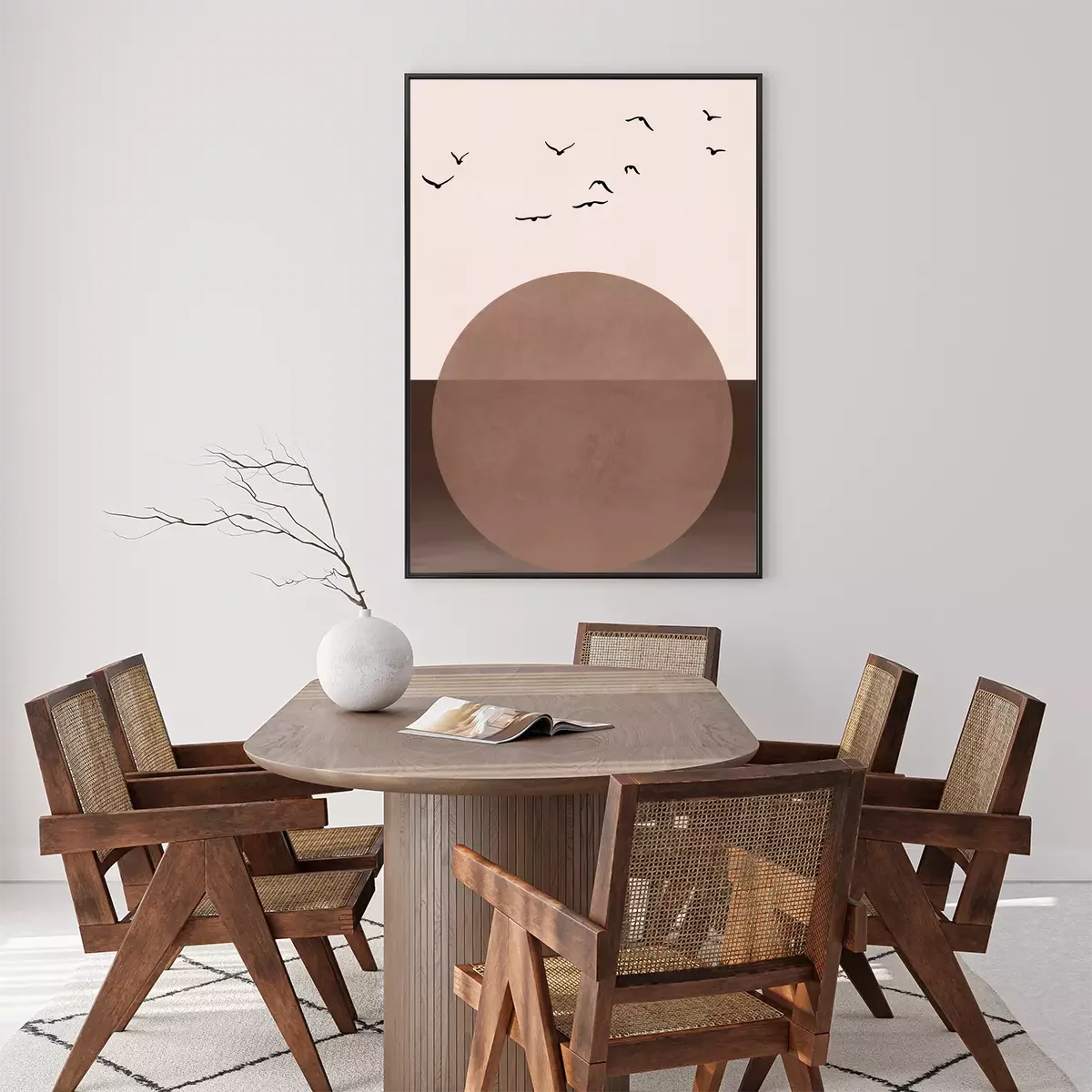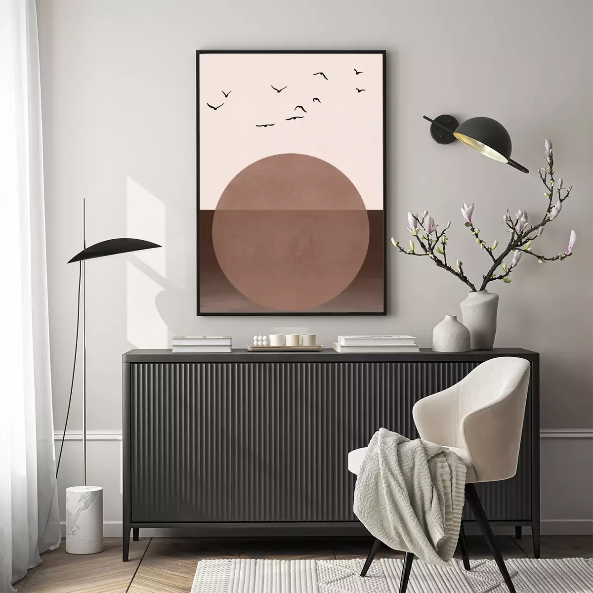Poster: Landschap met zonsondergang in mocha mousse kleuren