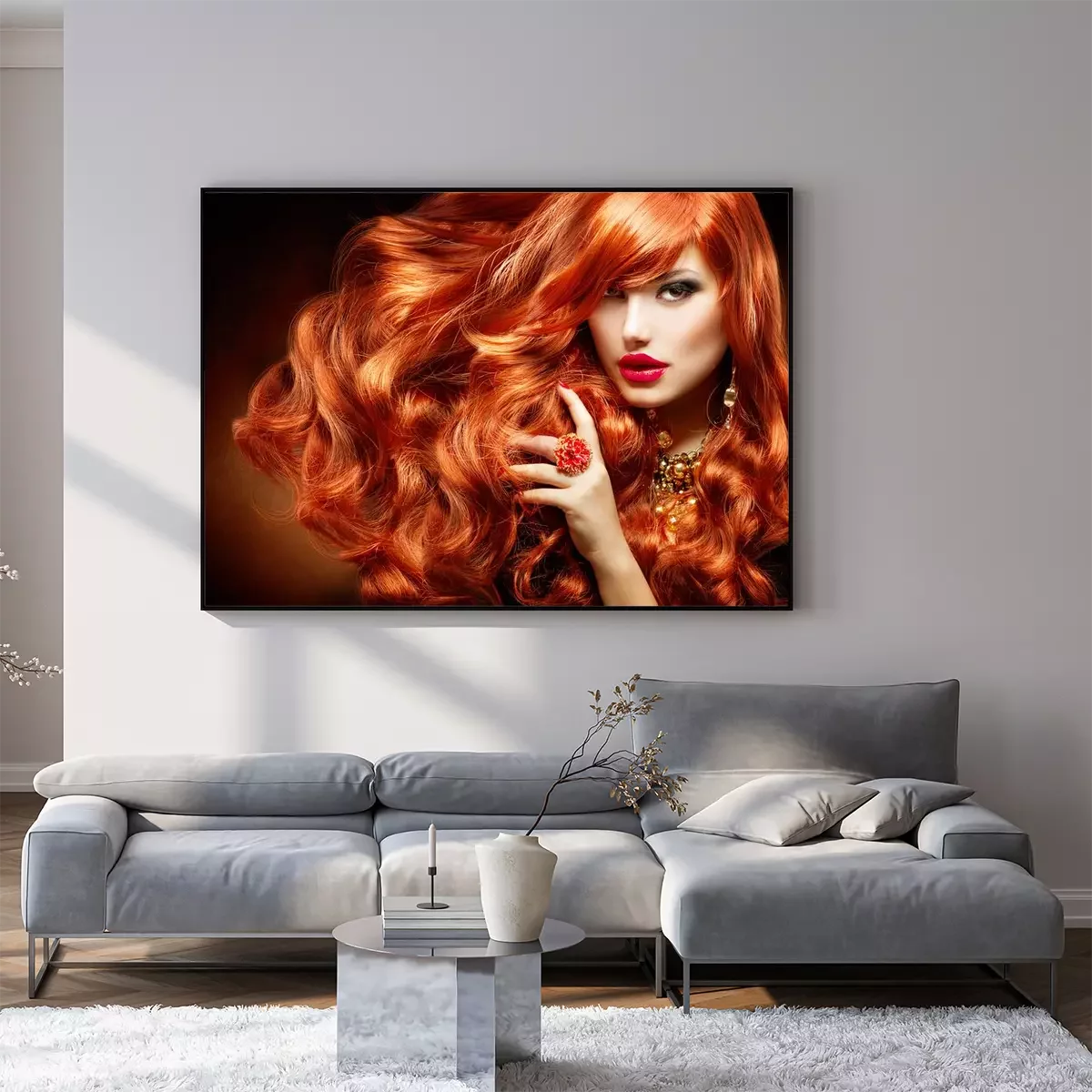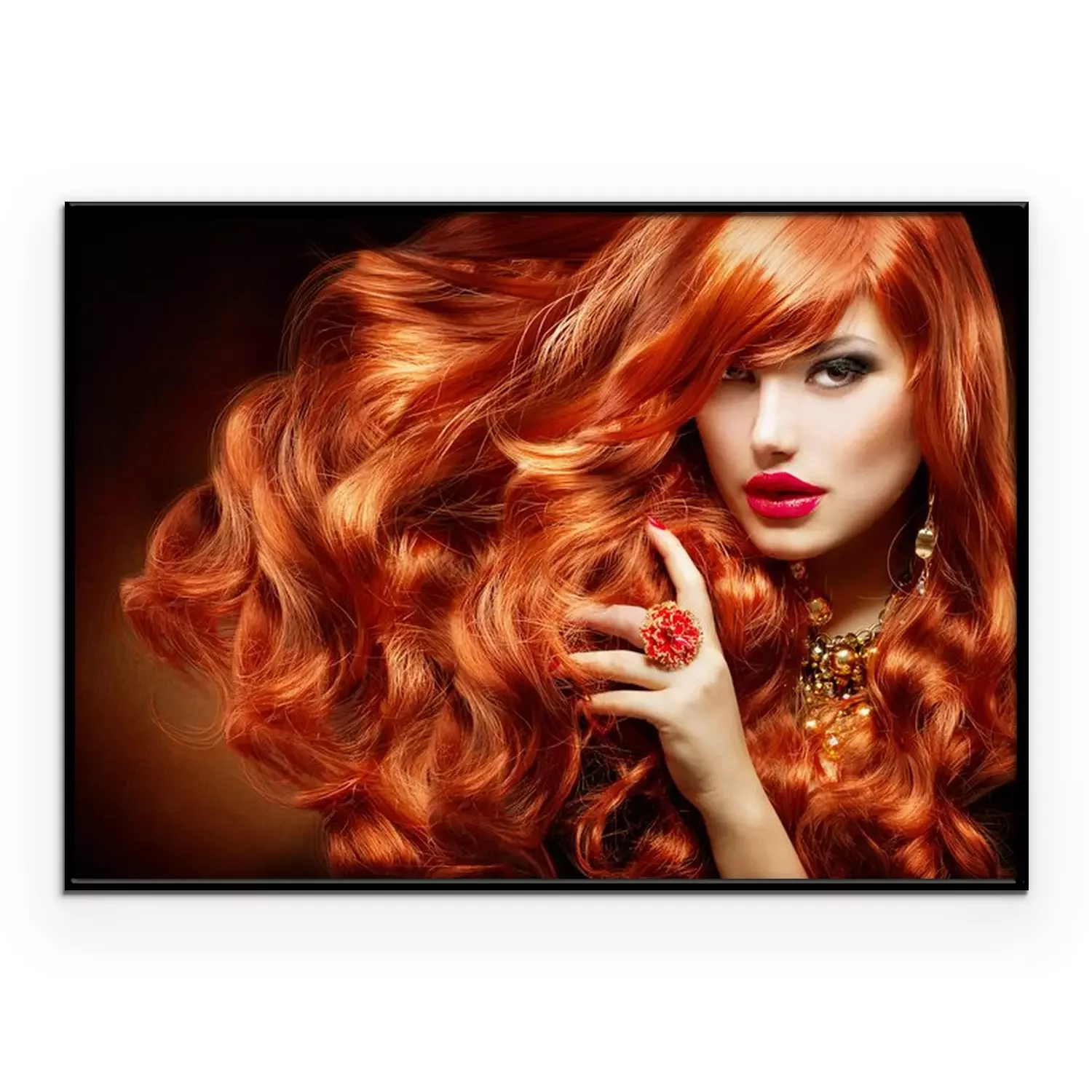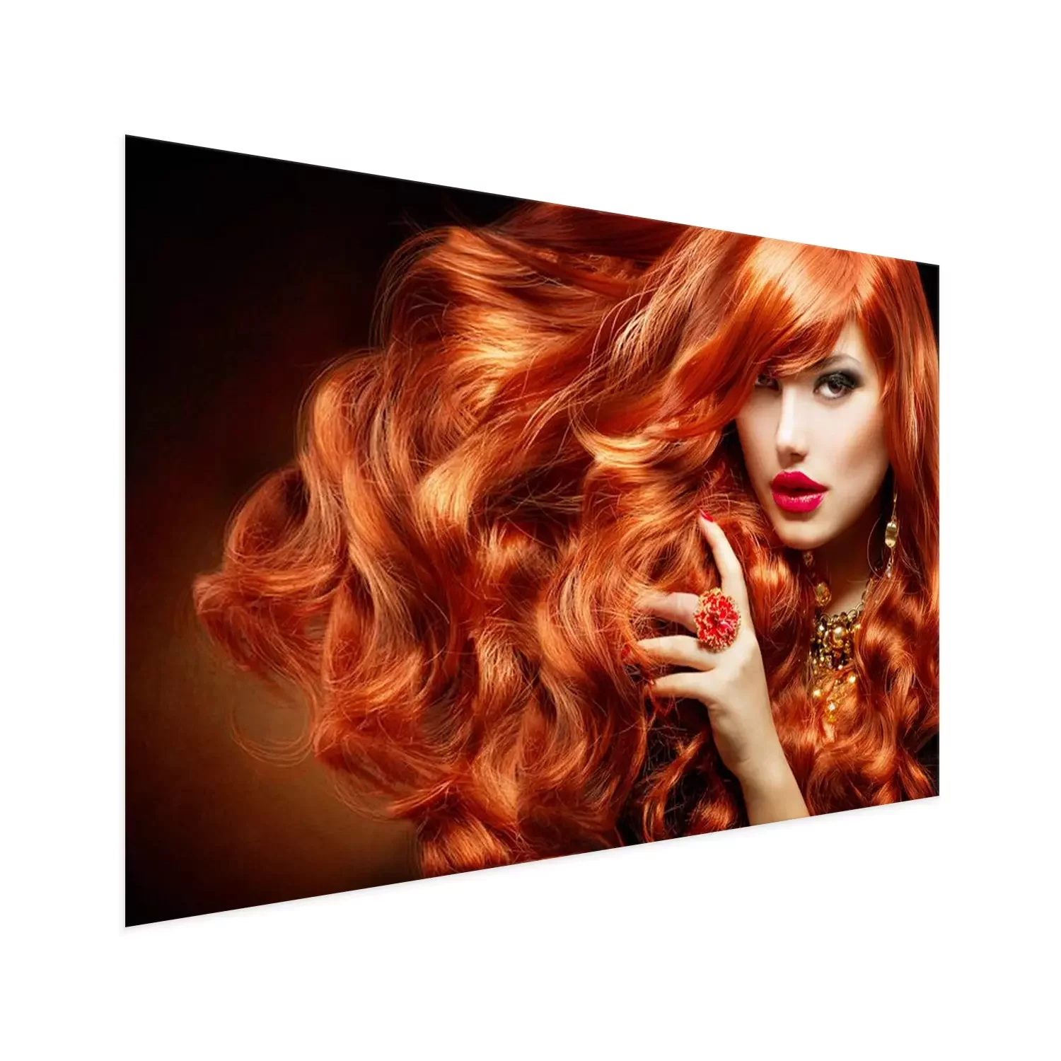 Poster: Lang krullend rood haar. Fashion Portret van de Vrouw