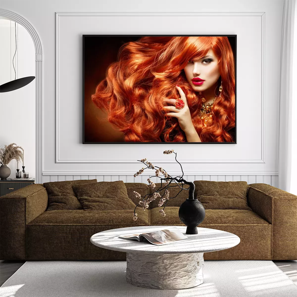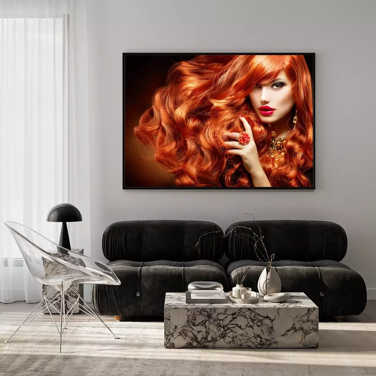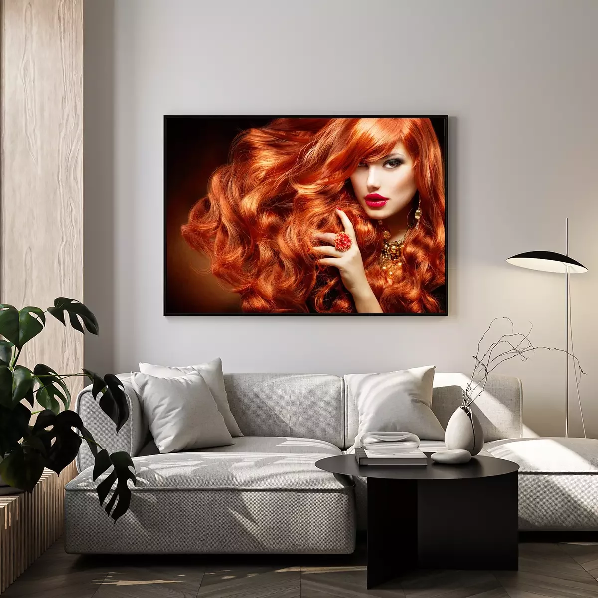 Poster: Lang krullend rood haar. Fashion Portret van de Vrouw