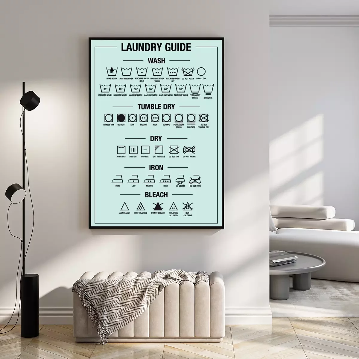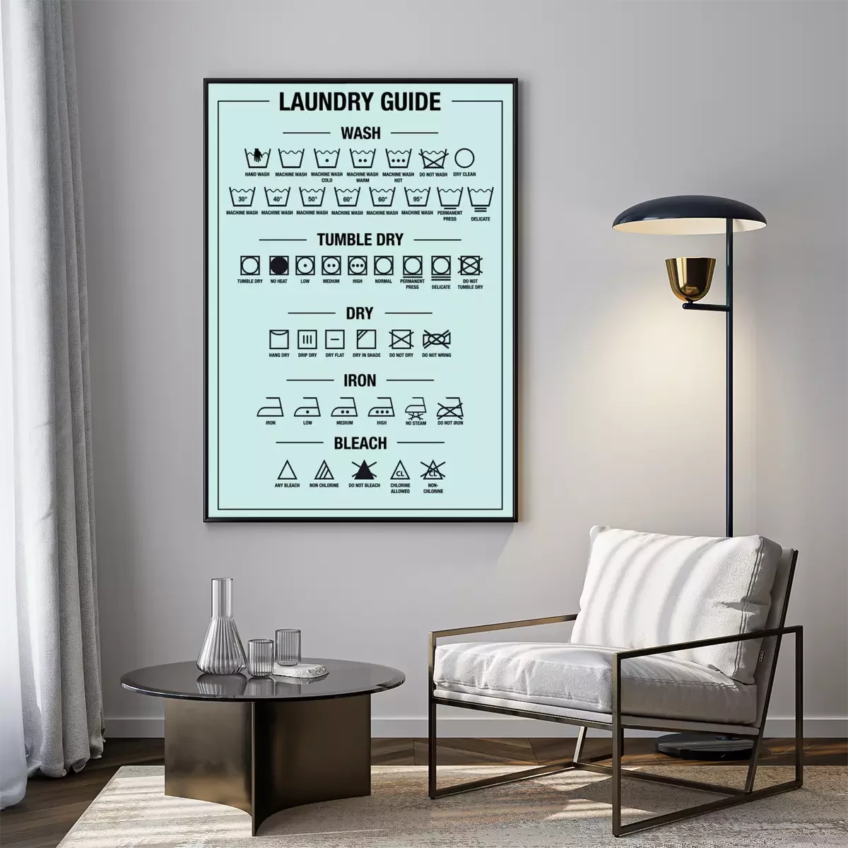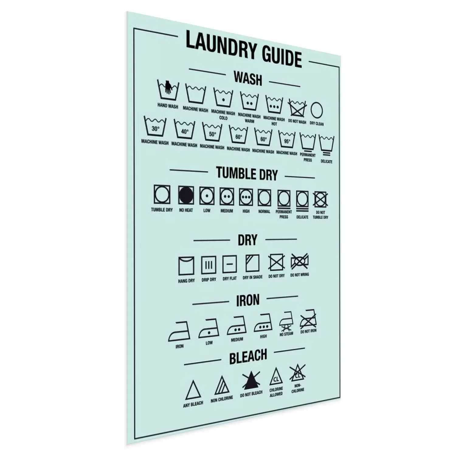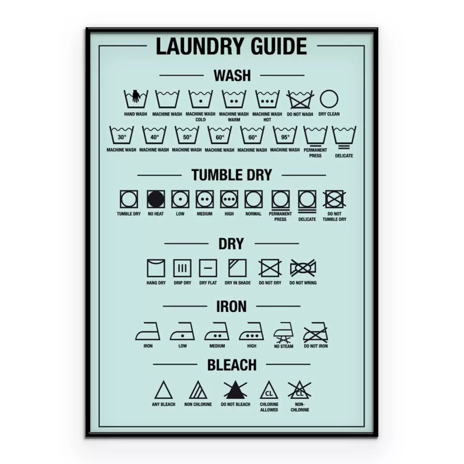 Poster: laundry guide, washing, care signs, textile symbols, vector graphic design elements