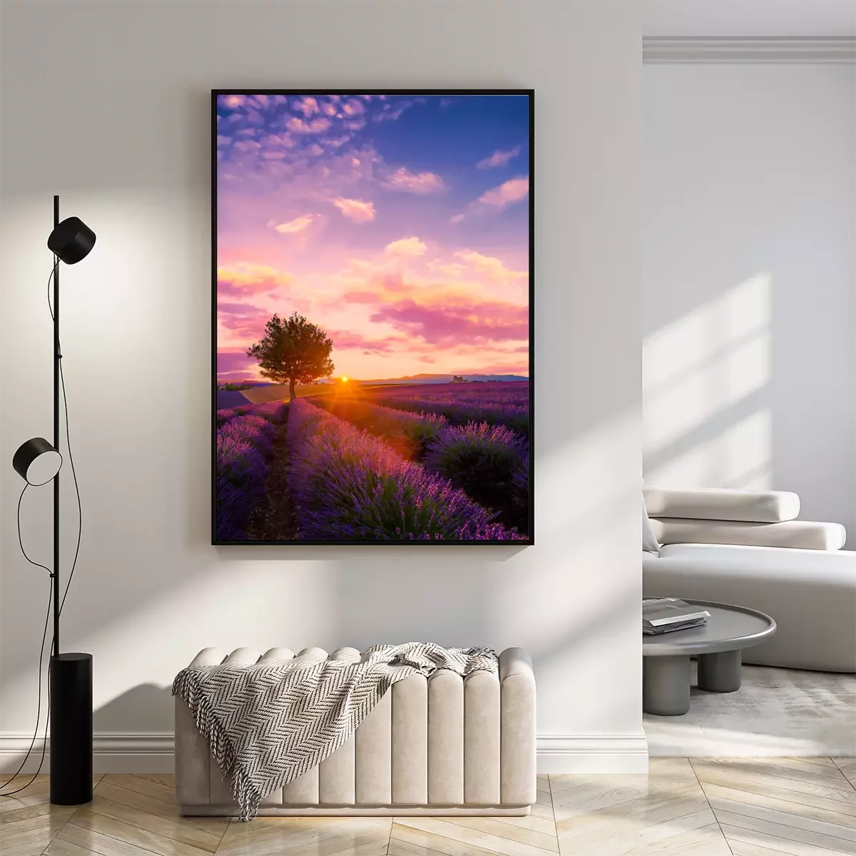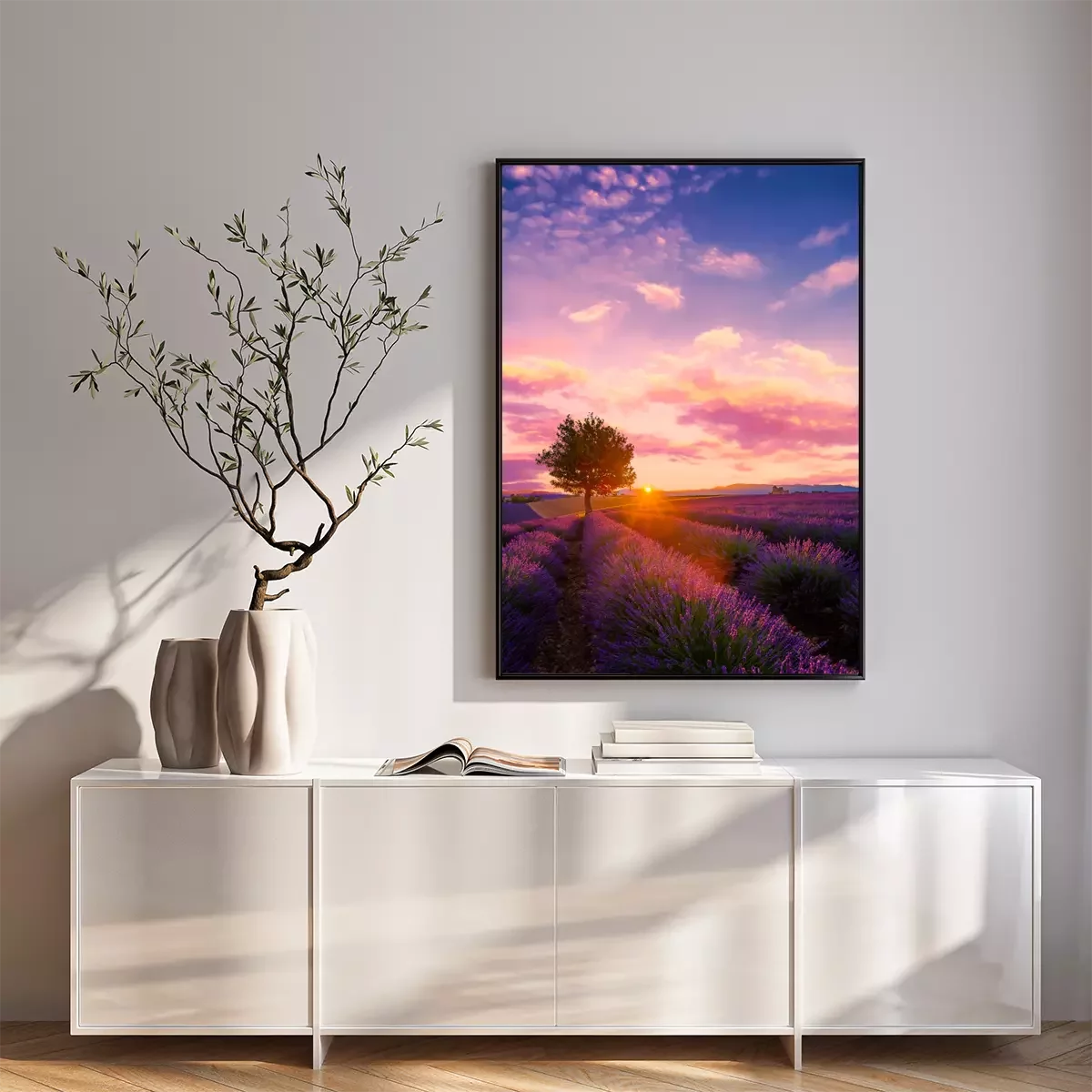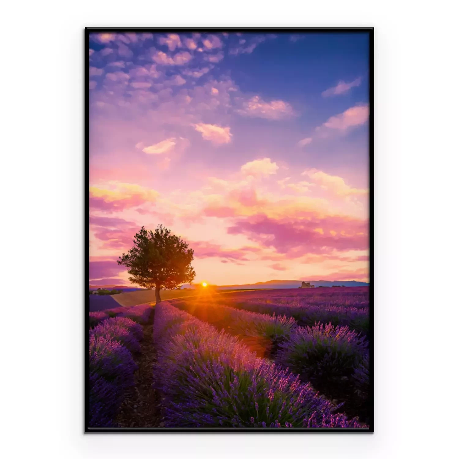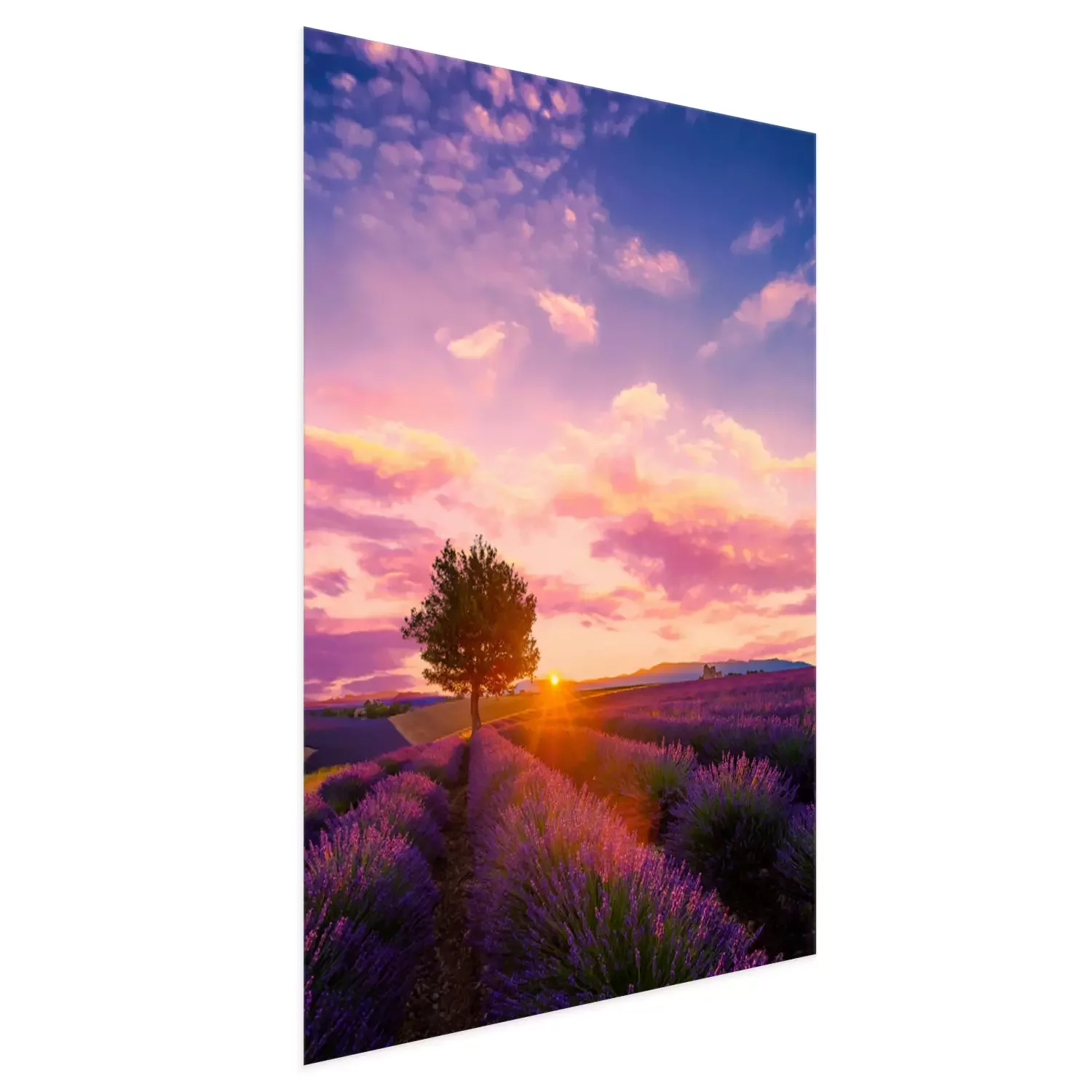 Poster: Lavendelveld en eenzame boom