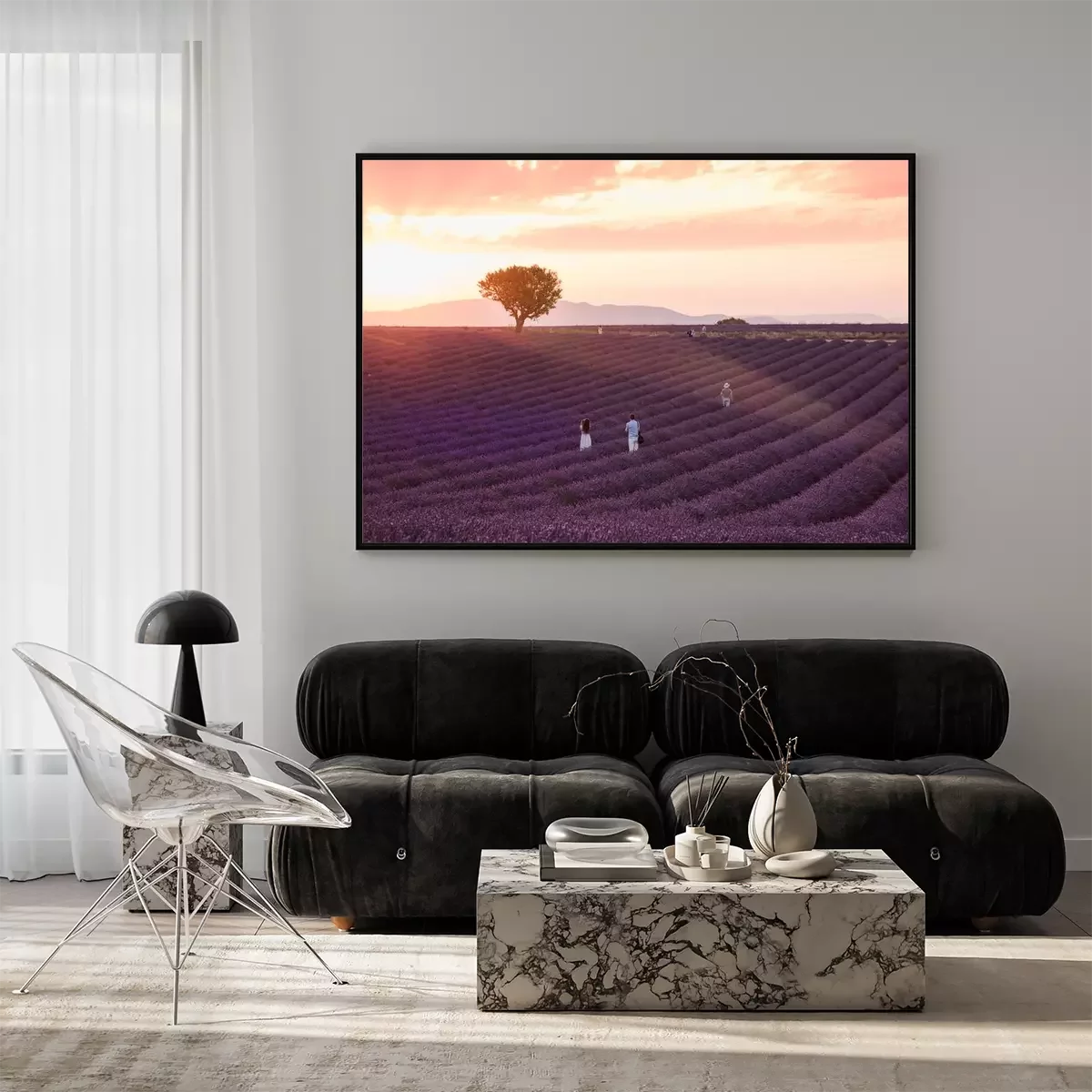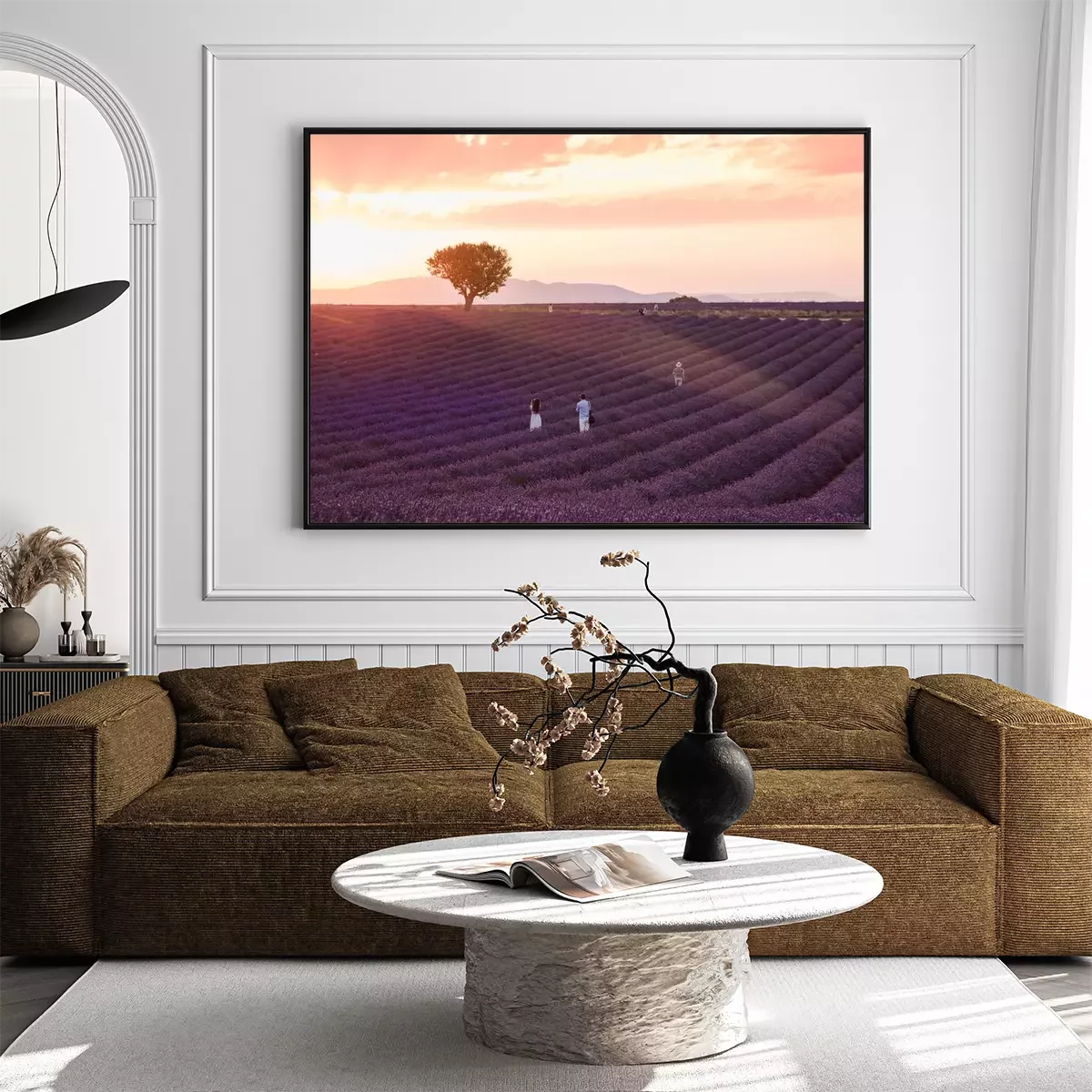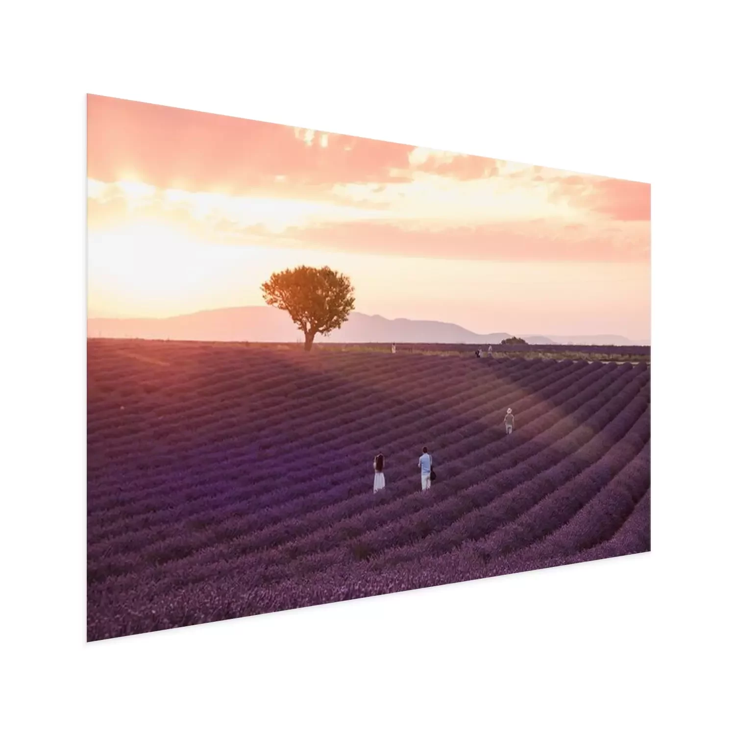 Poster Lavender rows lines at sunset, Provence fields landscape, France.