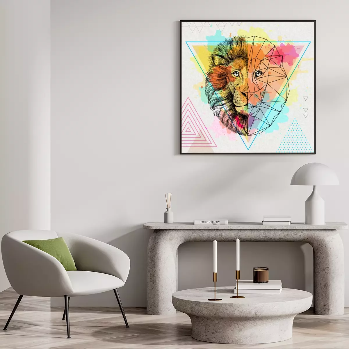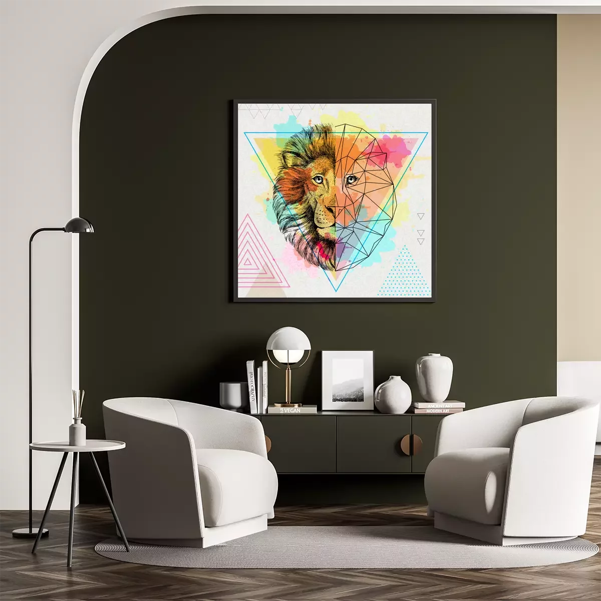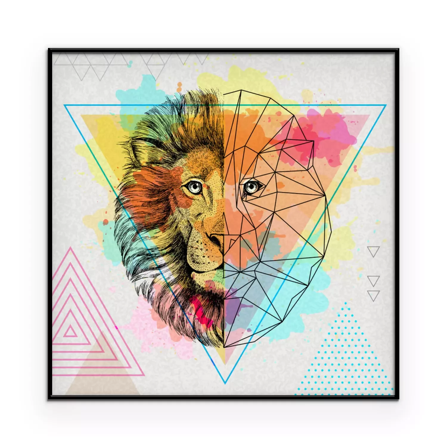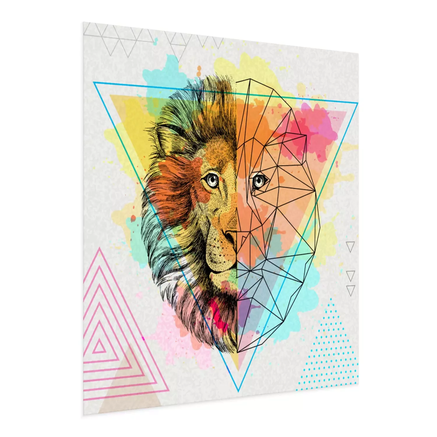 Poster: Leeuw en geometrisch patroon