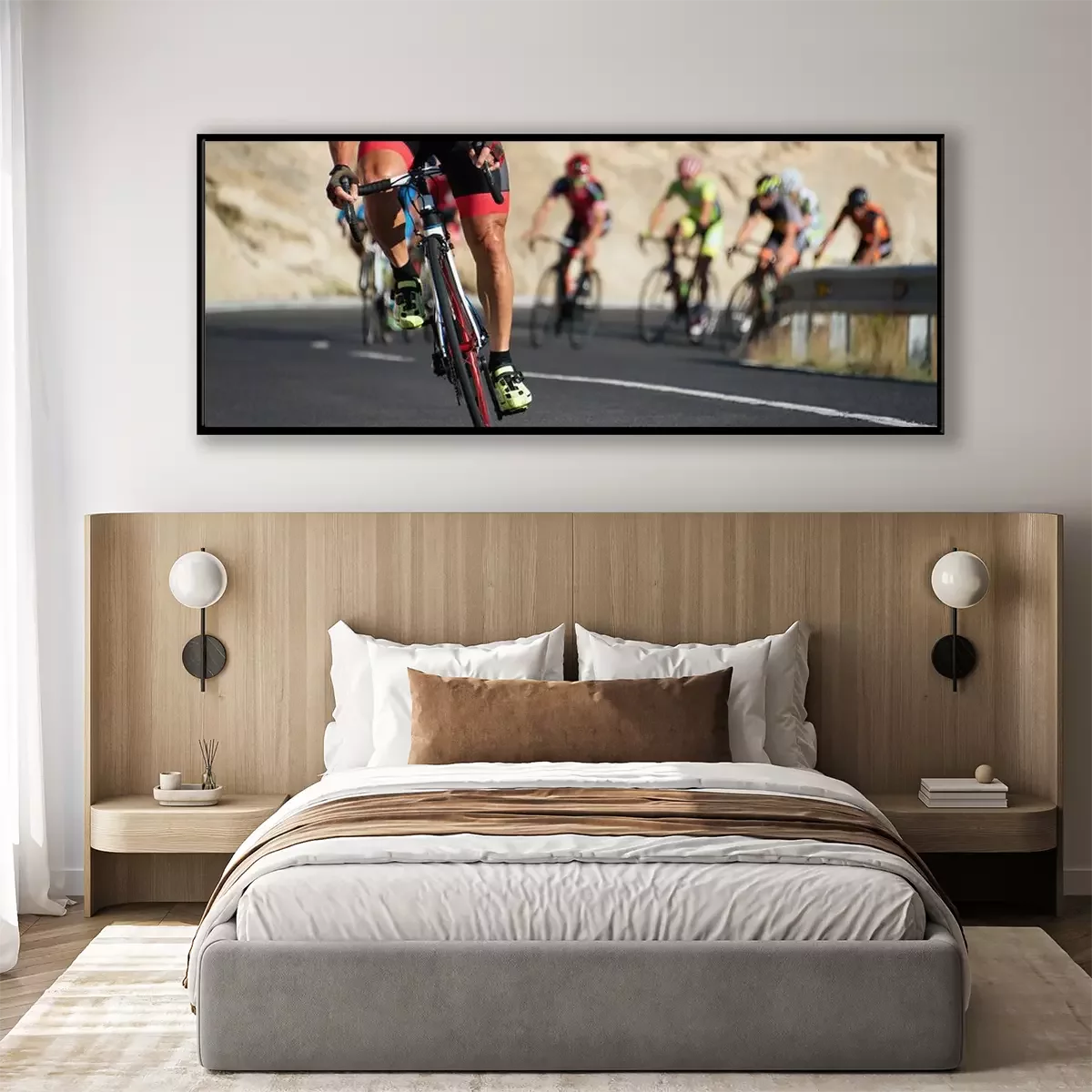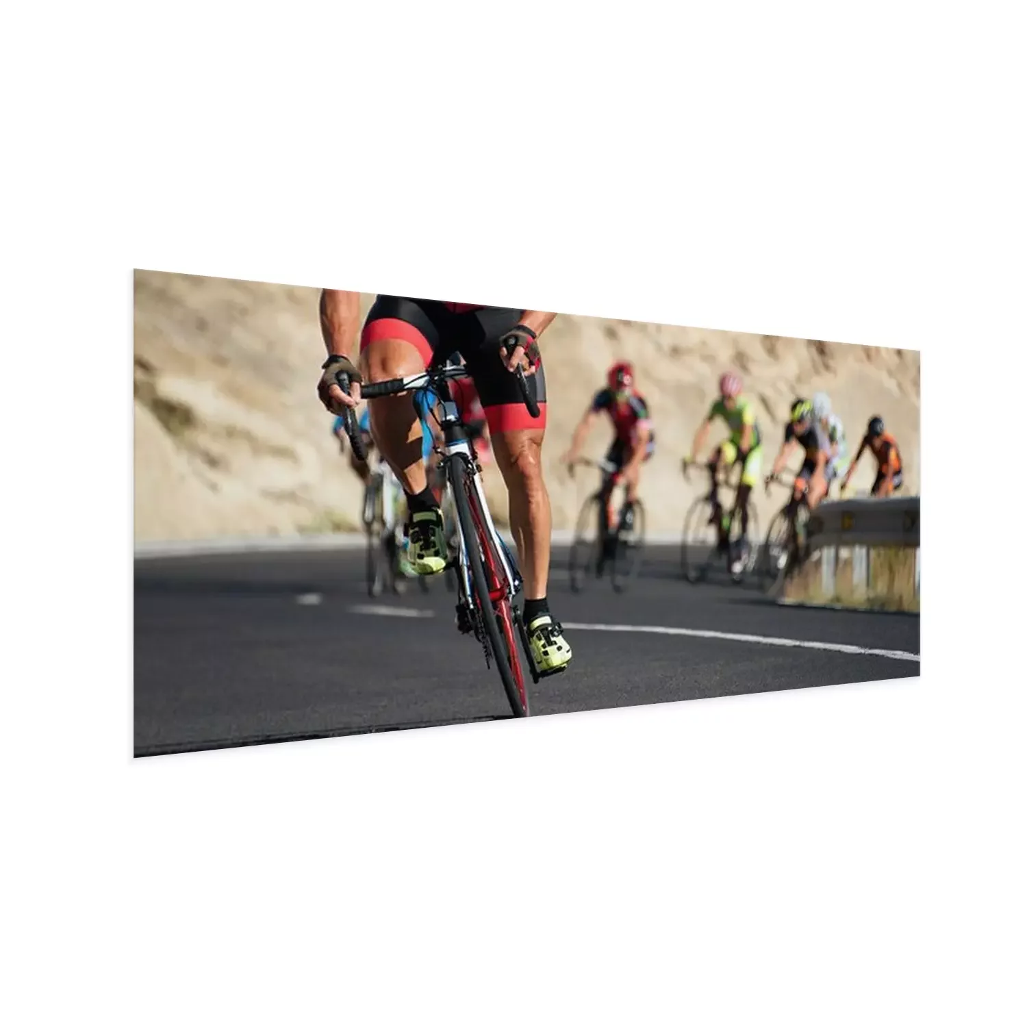 Fietscompetitie, fietsersporters die een race met hoge snelheid rennen