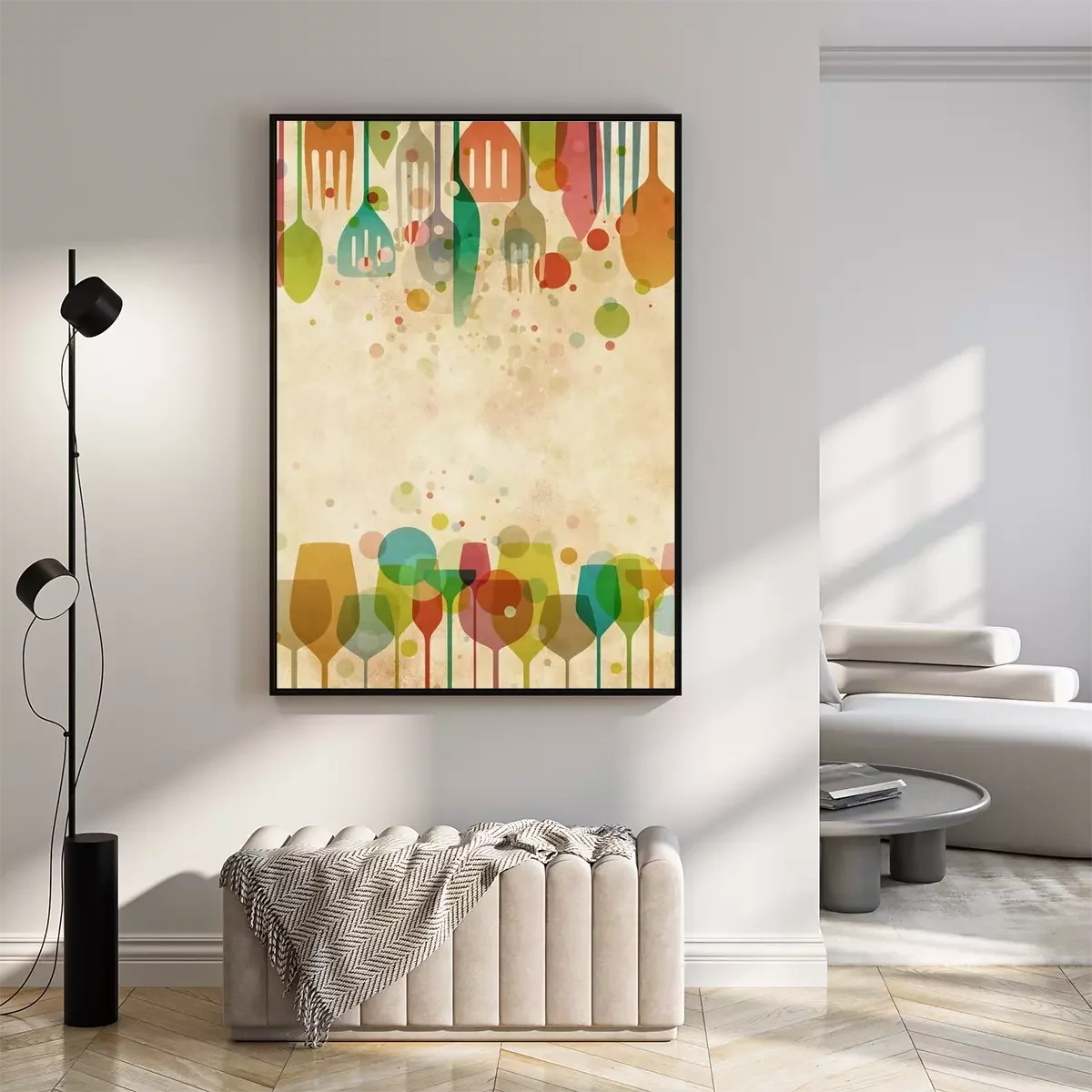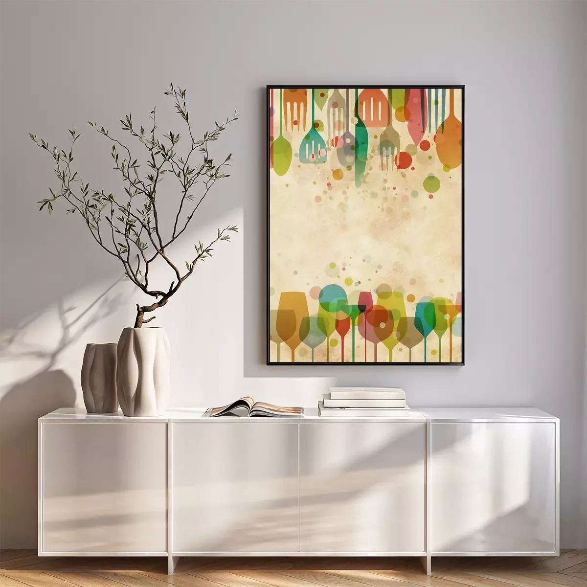 Grafische regenboog met keukenbestek