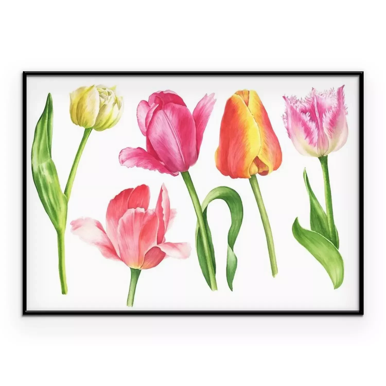 Poster: Lentetuin tulpen en papegaaien