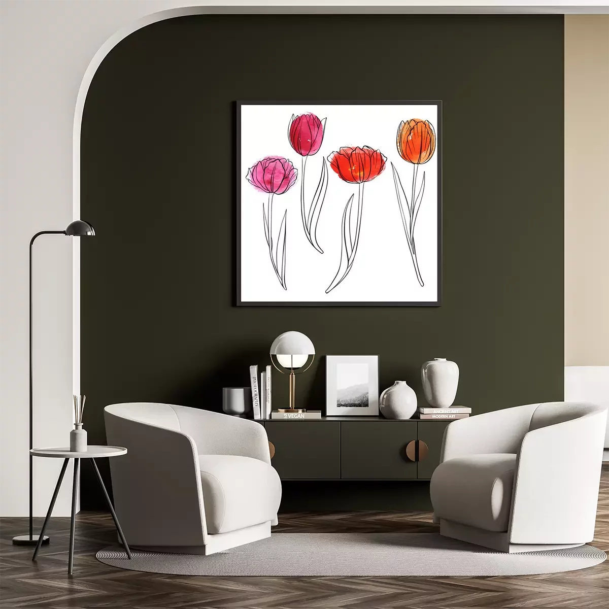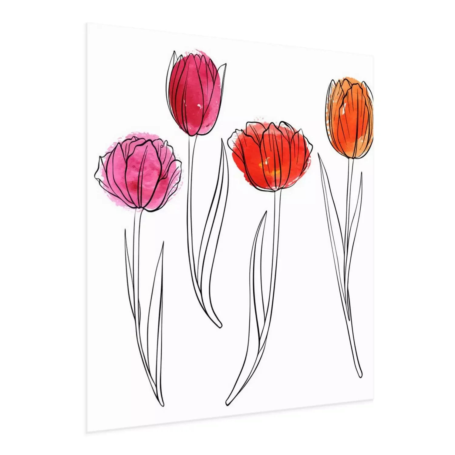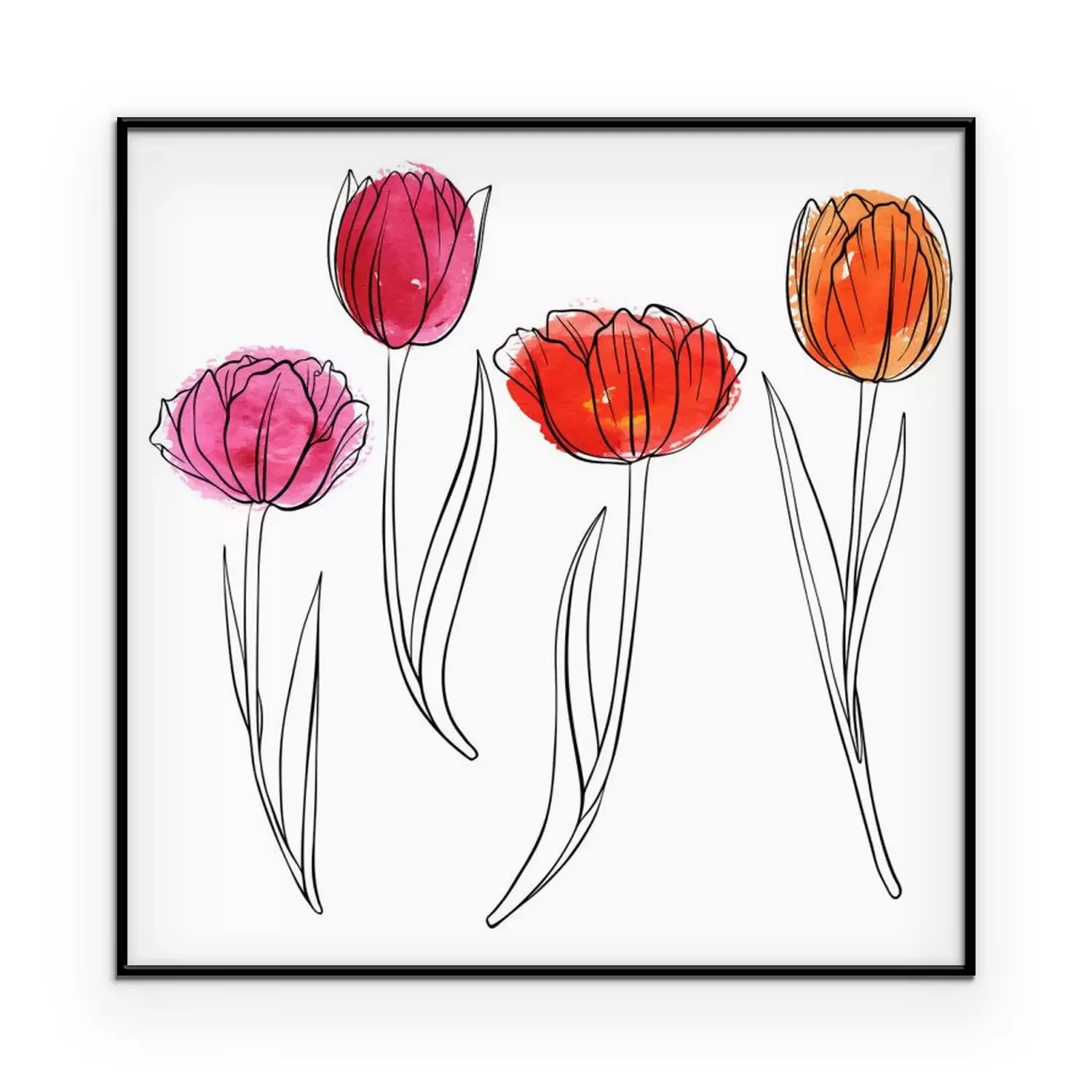 Poster: Lentetulpen geschilderd met een zwarte lijn