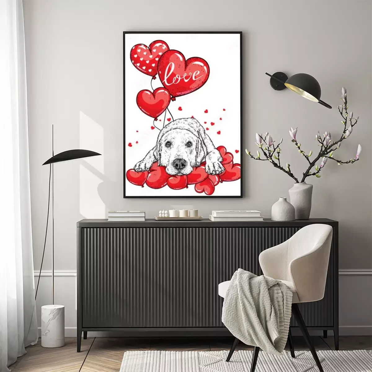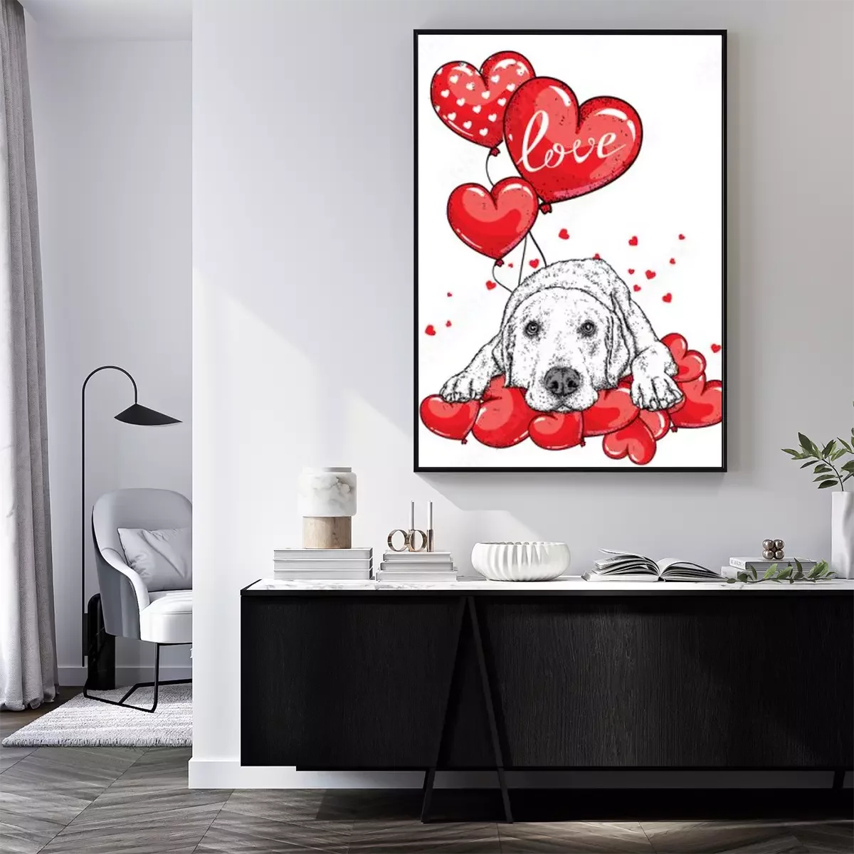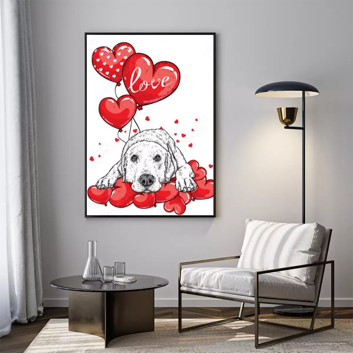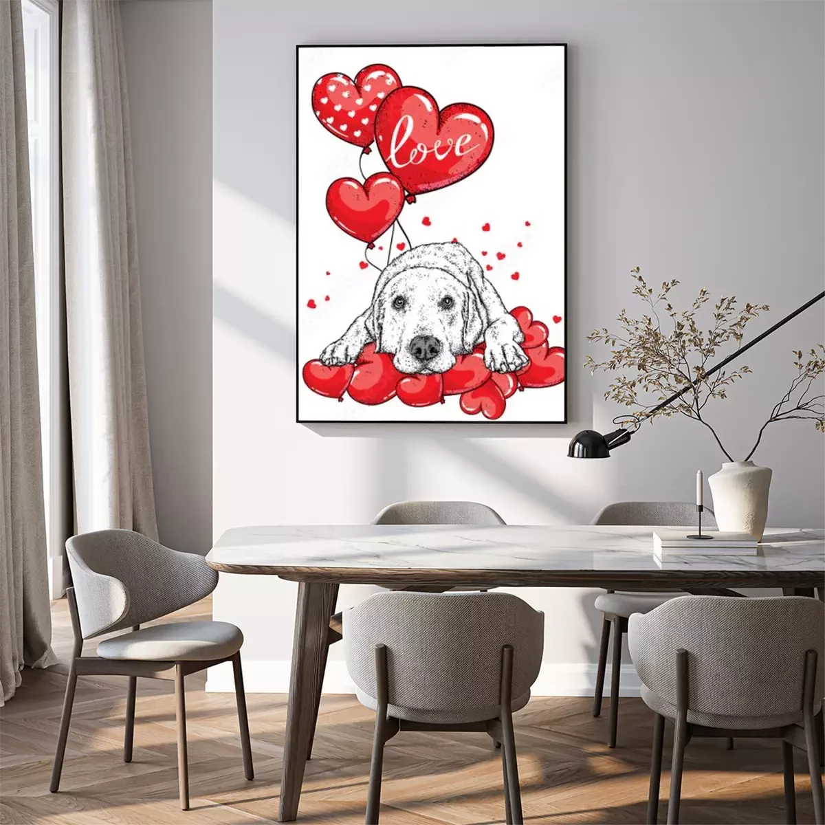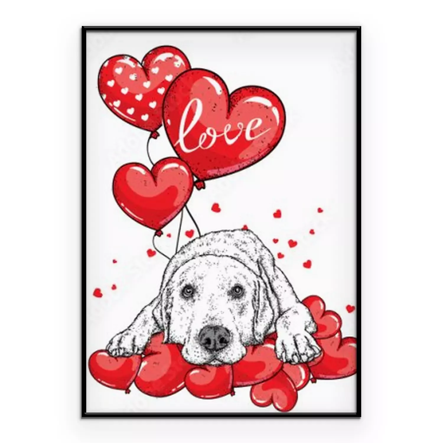 Poster Leuke hond met hartjes