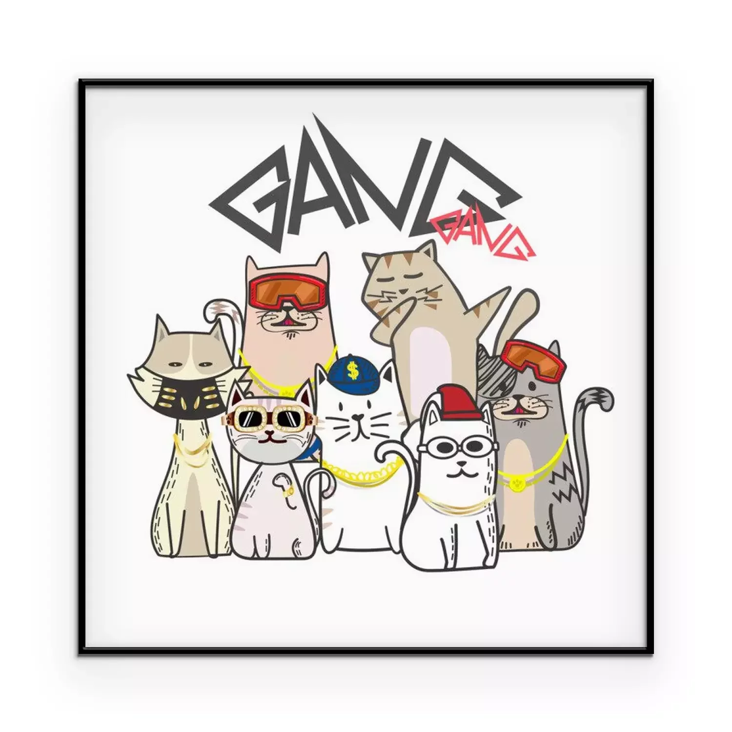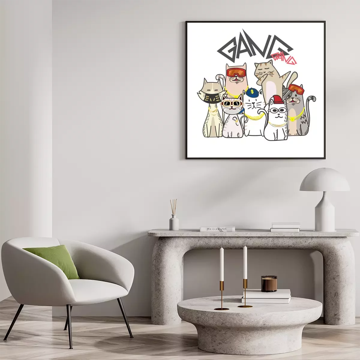 Poster: Leuke kattentroep met hand getrokken beeldverhaal. Hip Hop-stijl