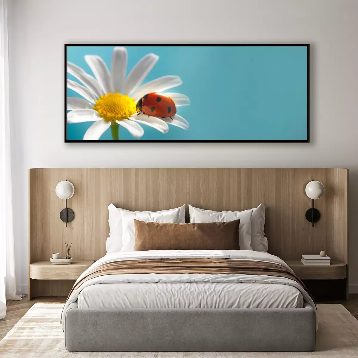 Poster: Lieveheersbeestje op kamilleblaadjes