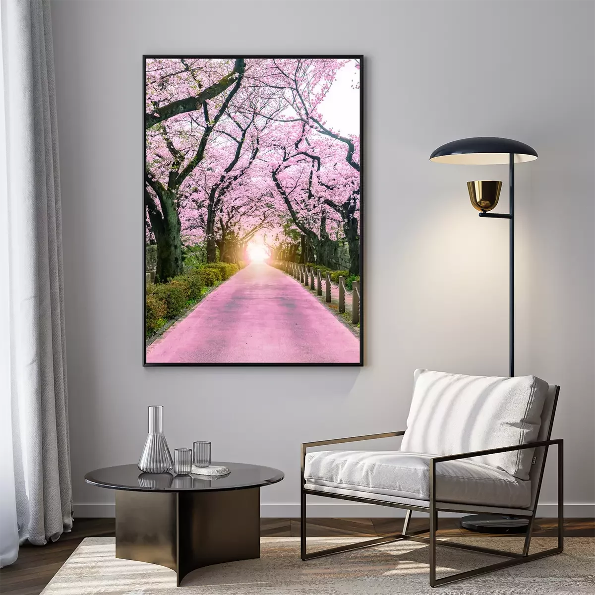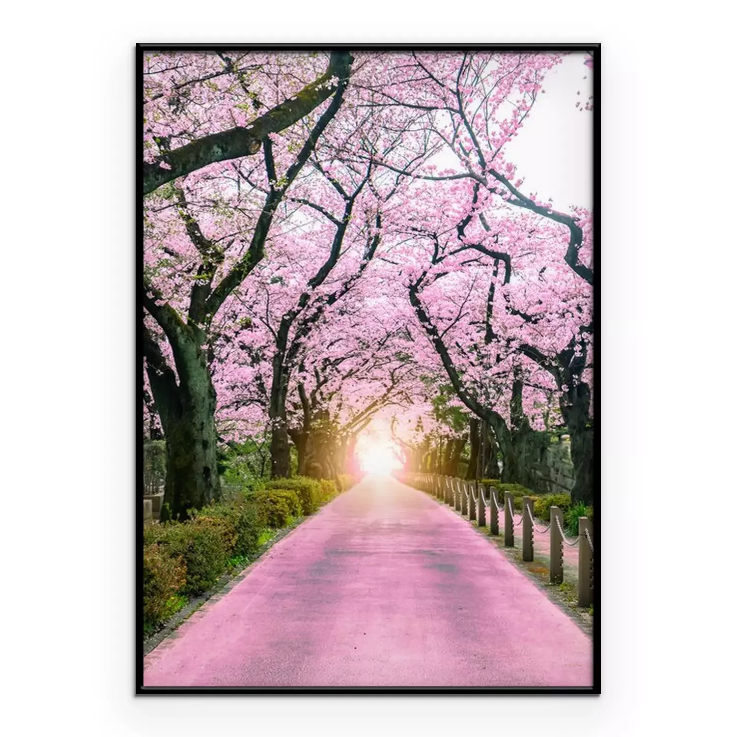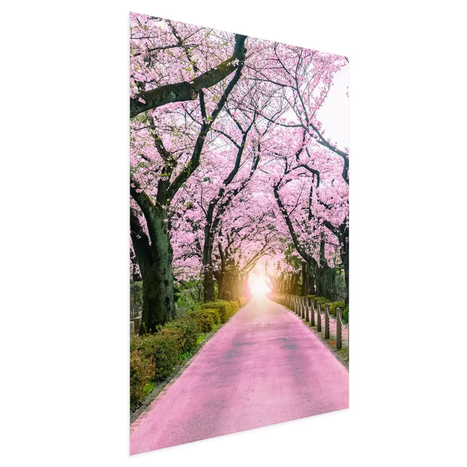 Poster: Lighting at the destination Walking path under the beautiful sakura tree or cherry tree tunnel in Tokyo, Japan