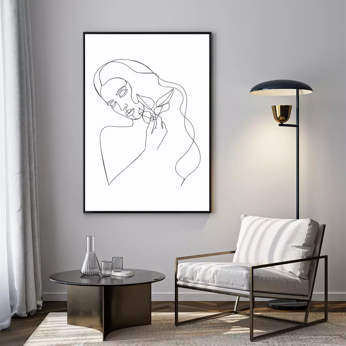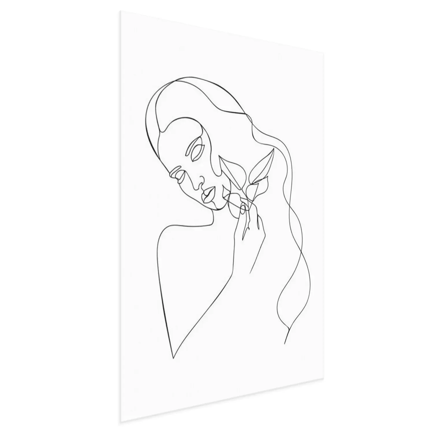 Poster Lijntekeningen van een vrouw die bladeren vasthoudt