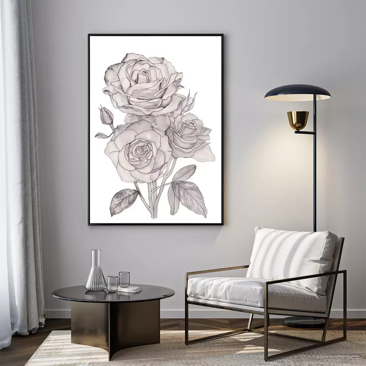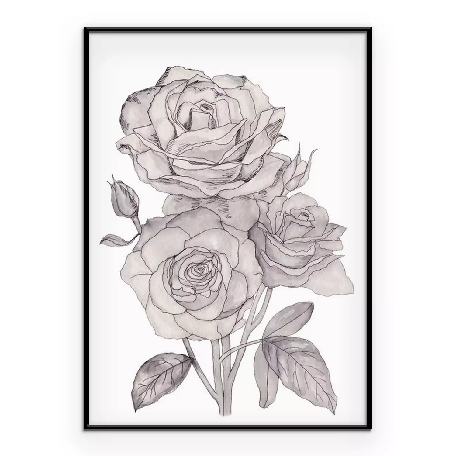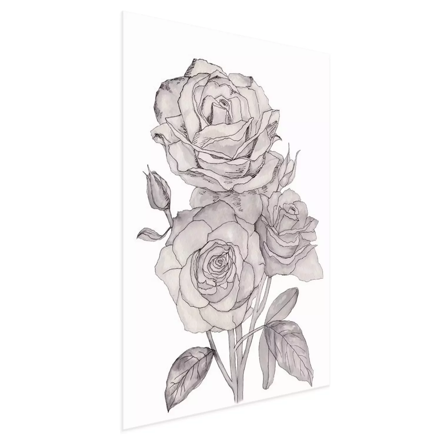 Poster: Line art rozen gevuld met grijs